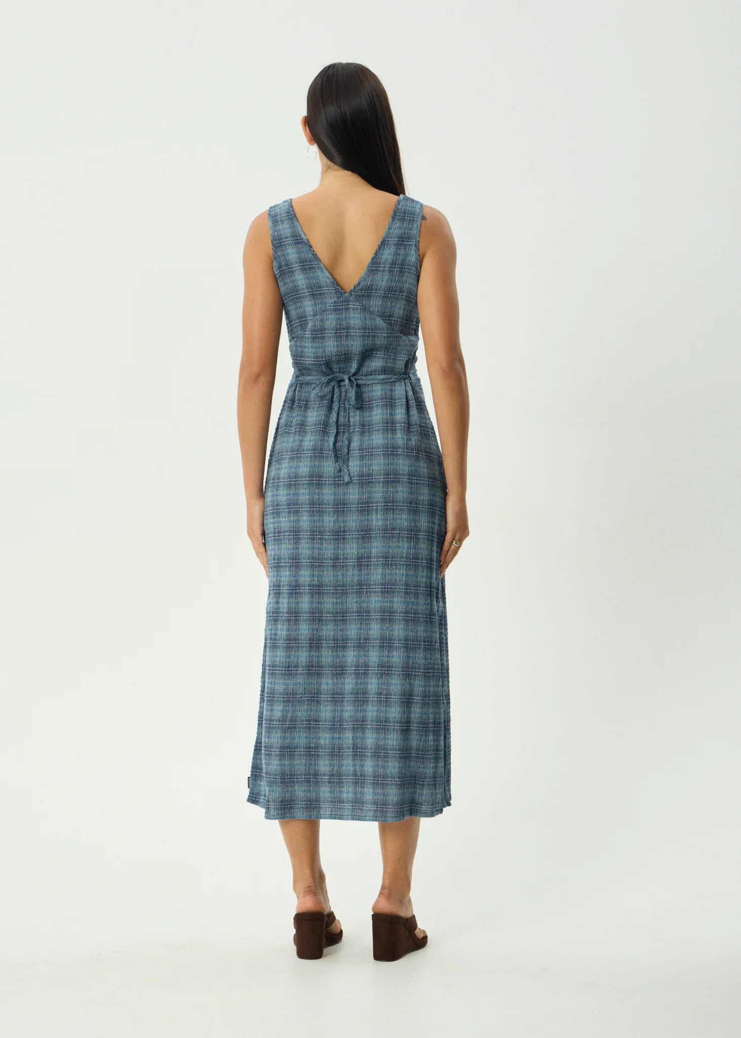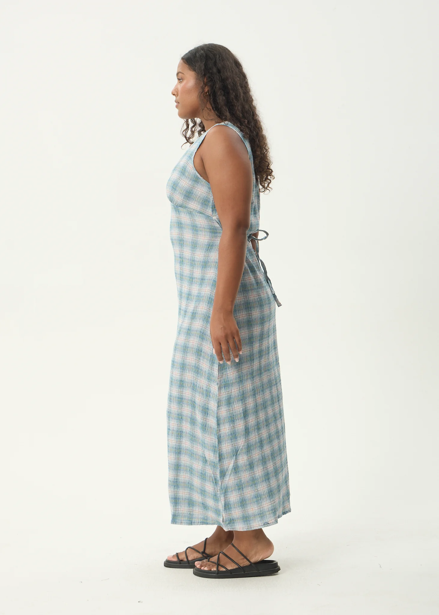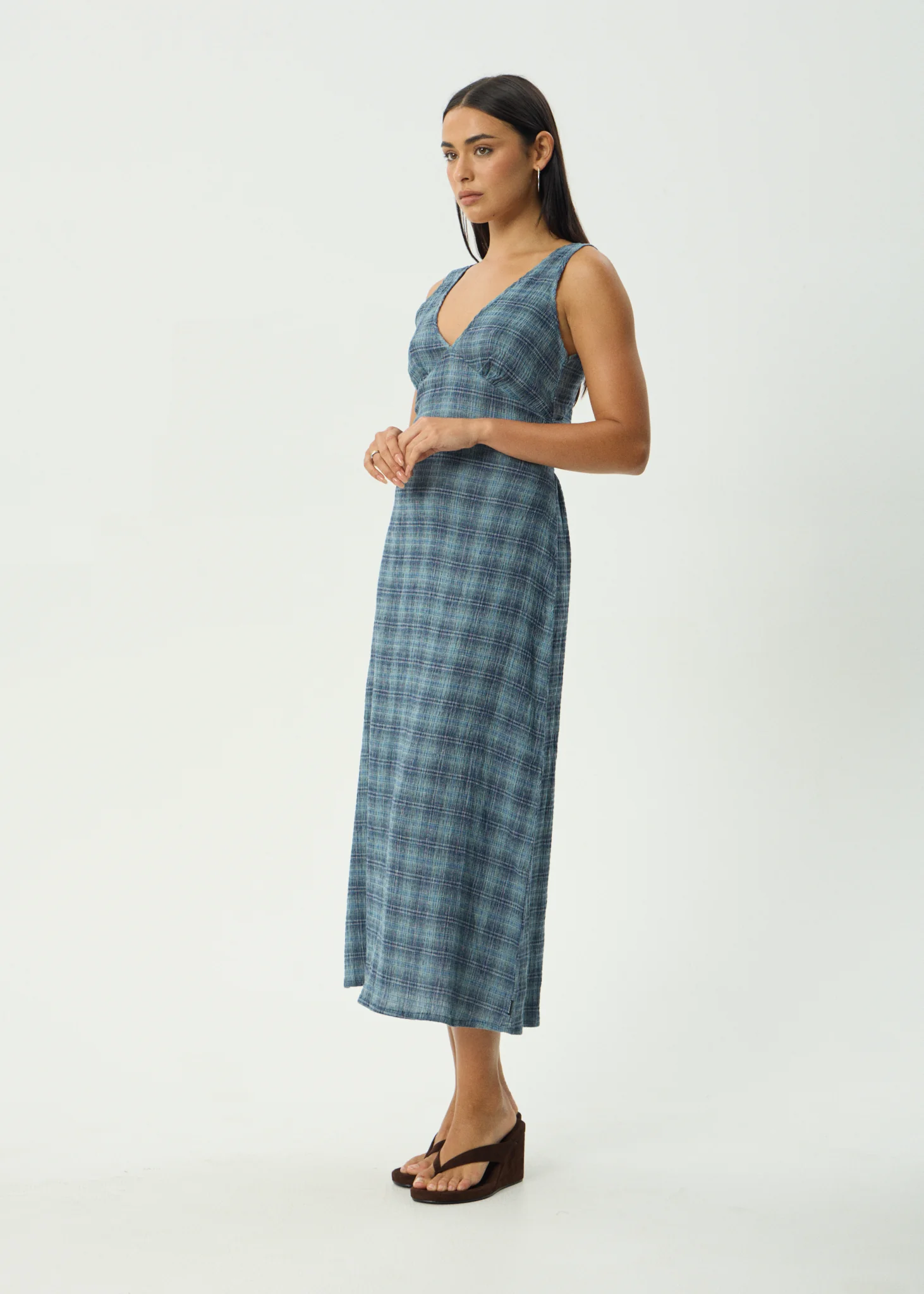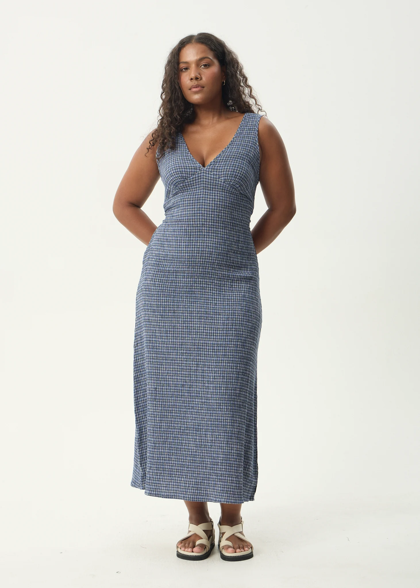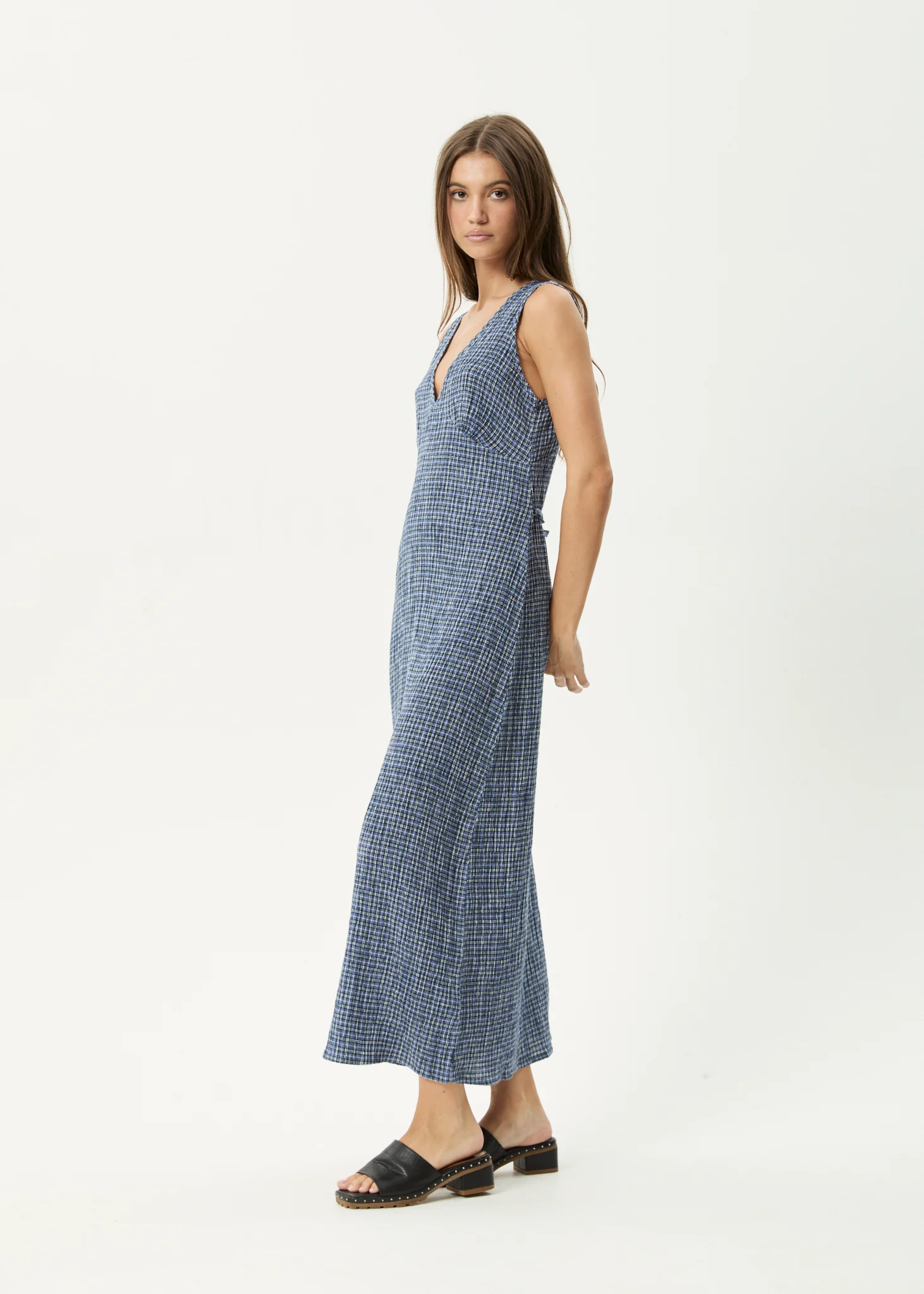 AFENDS Womens Evans - Check Maxi Dress - Overcast Check