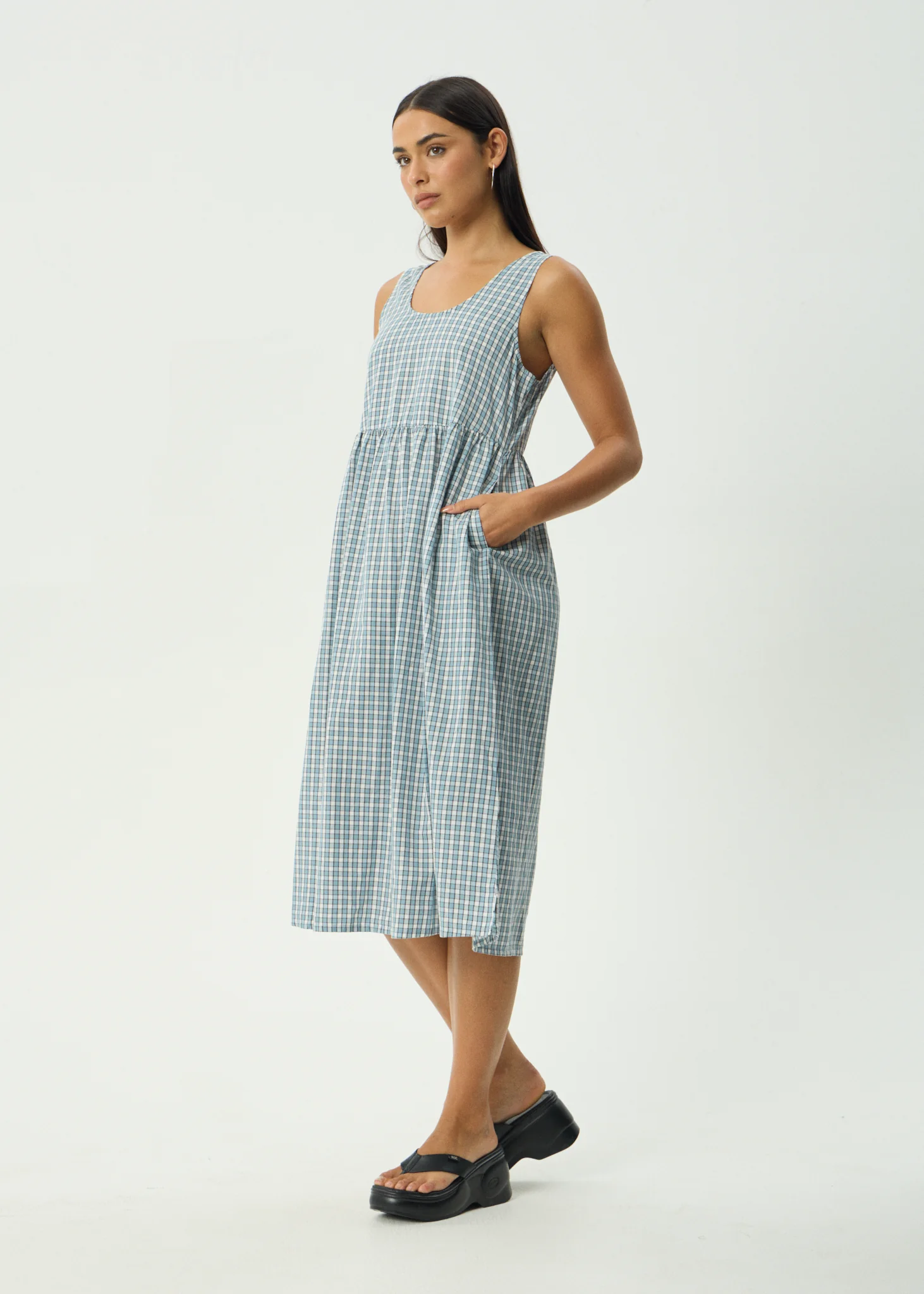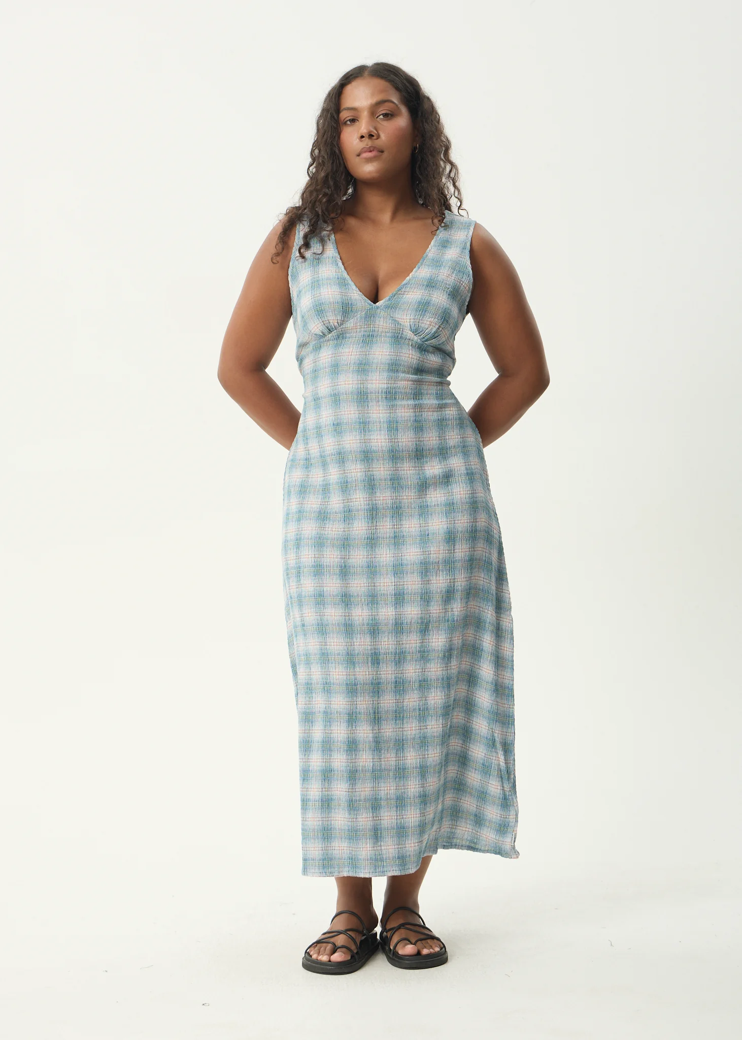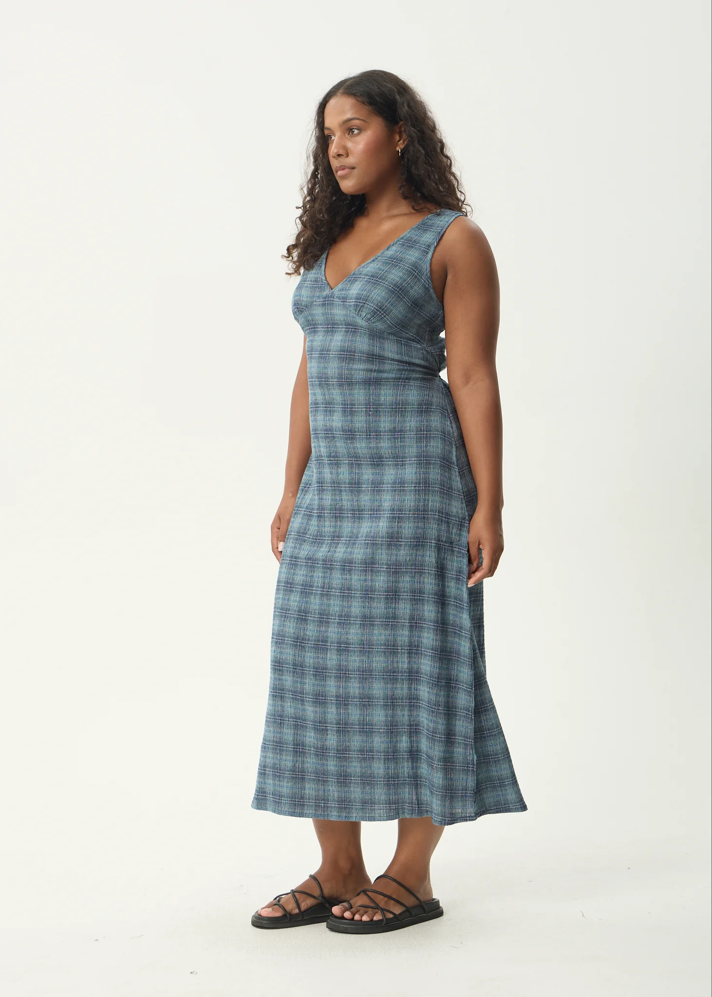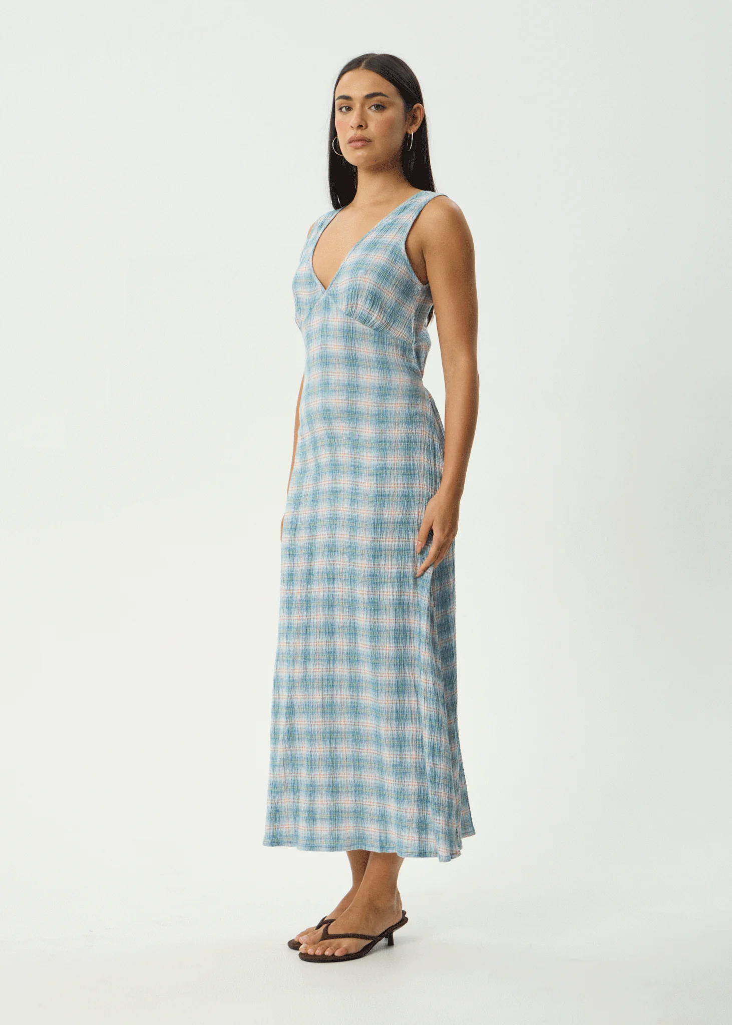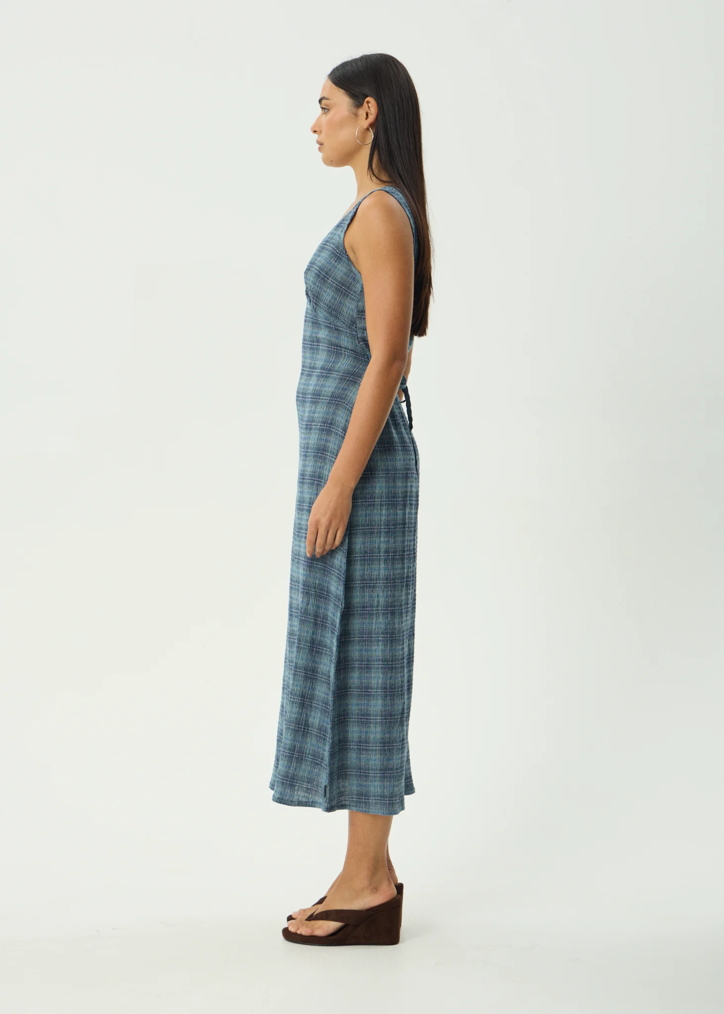 AFENDS Womens Evans - Check Maxi Dress - Overcast Check
