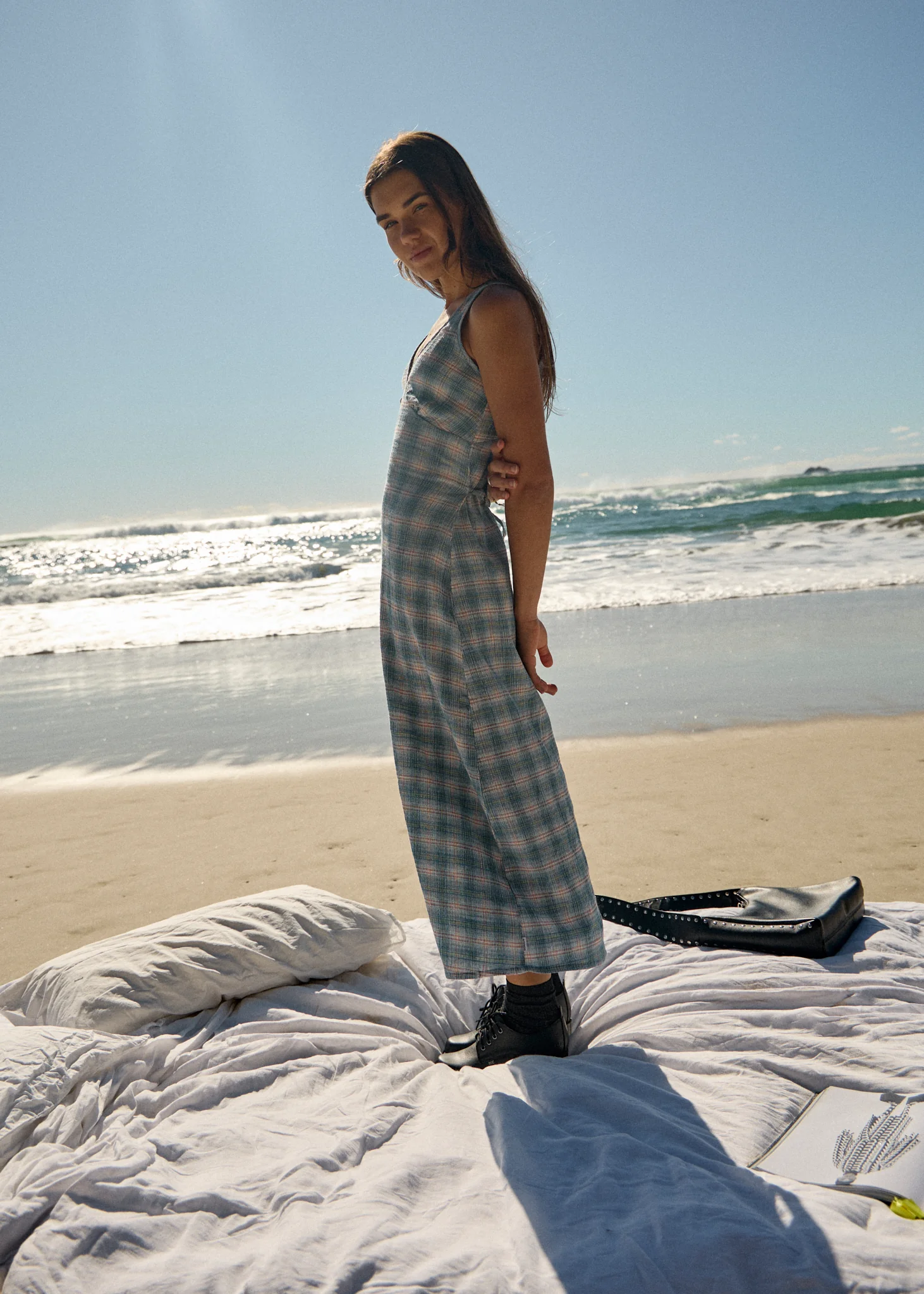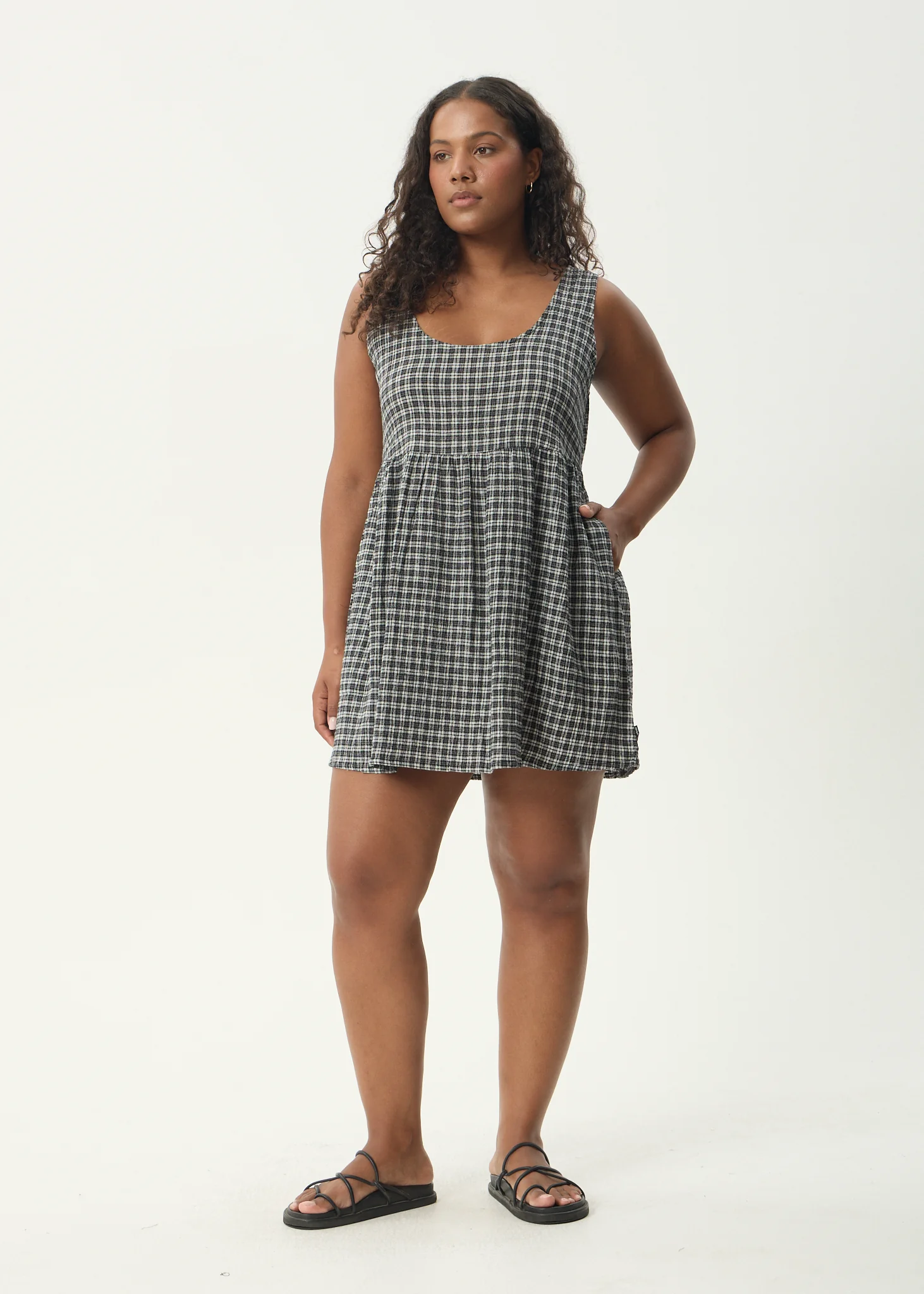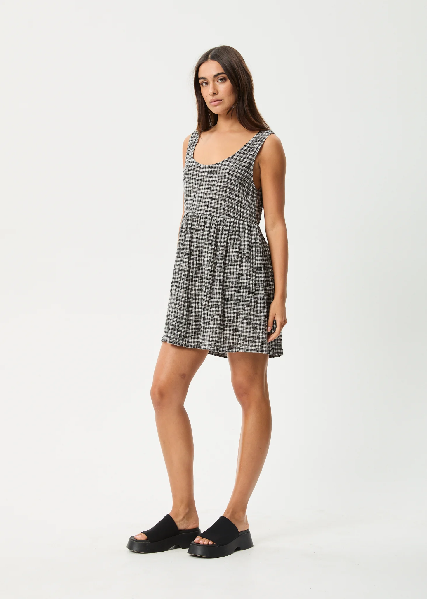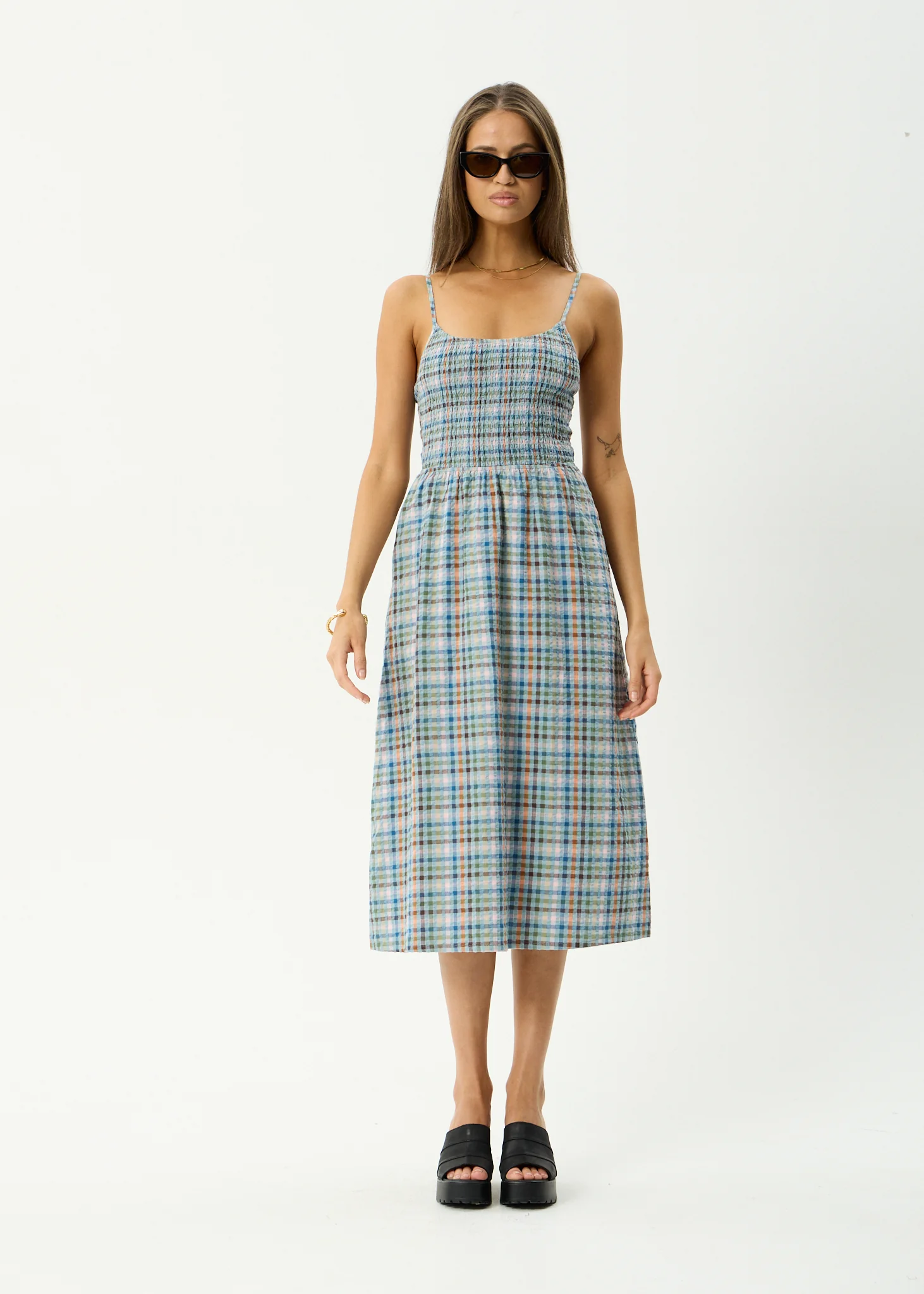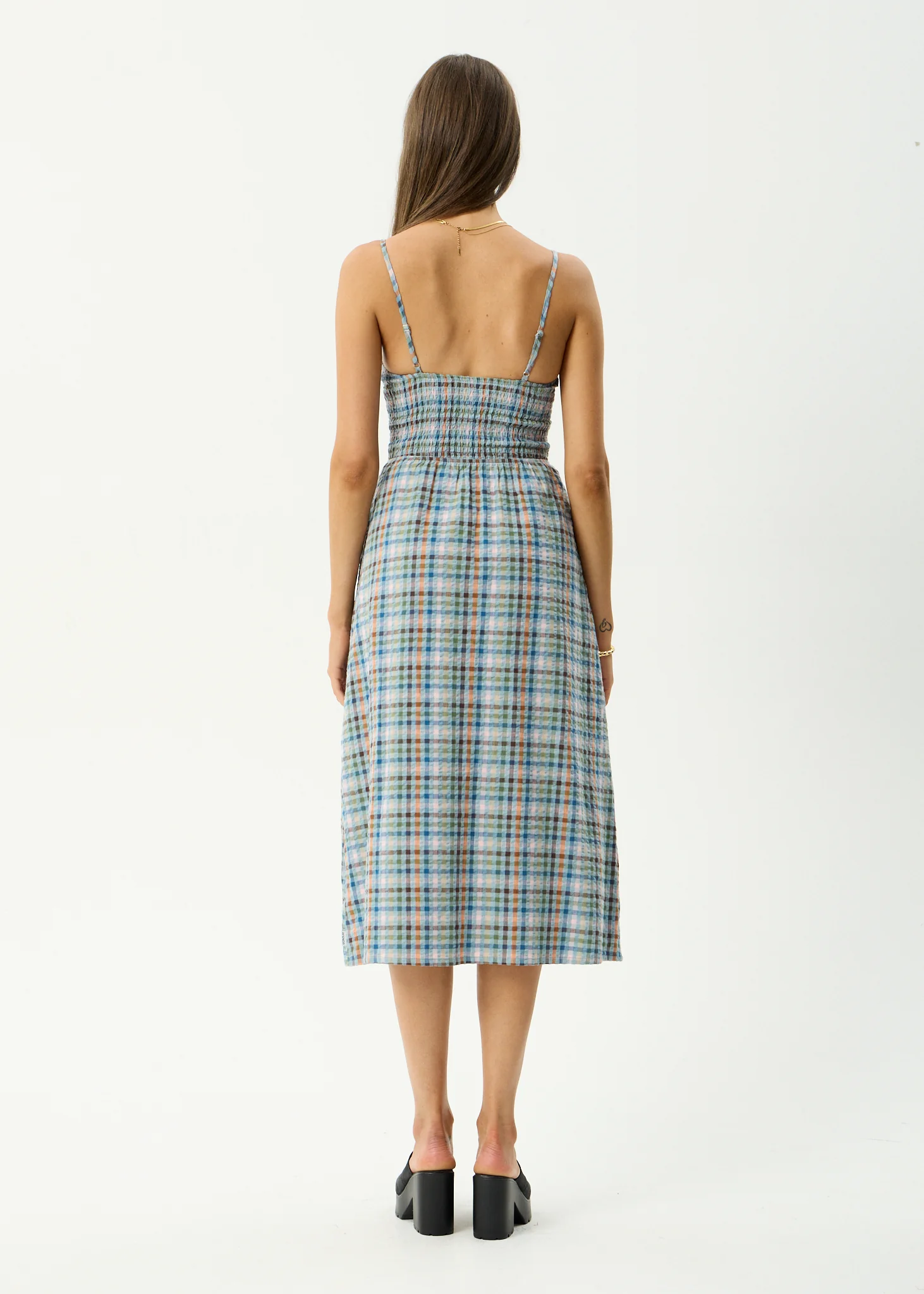 AFENDS Womens Evans - Check Maxi Dress - Overcast Check
