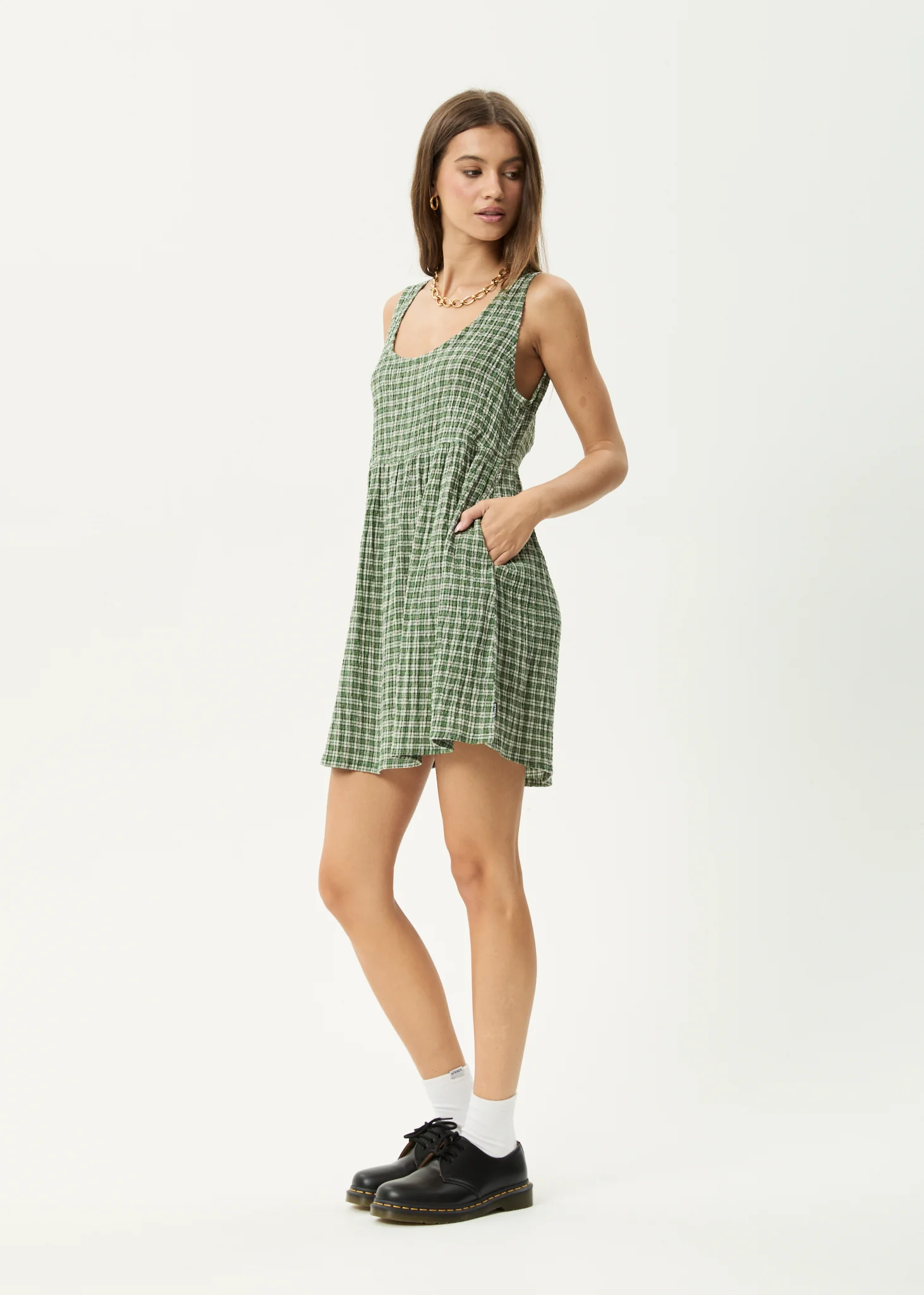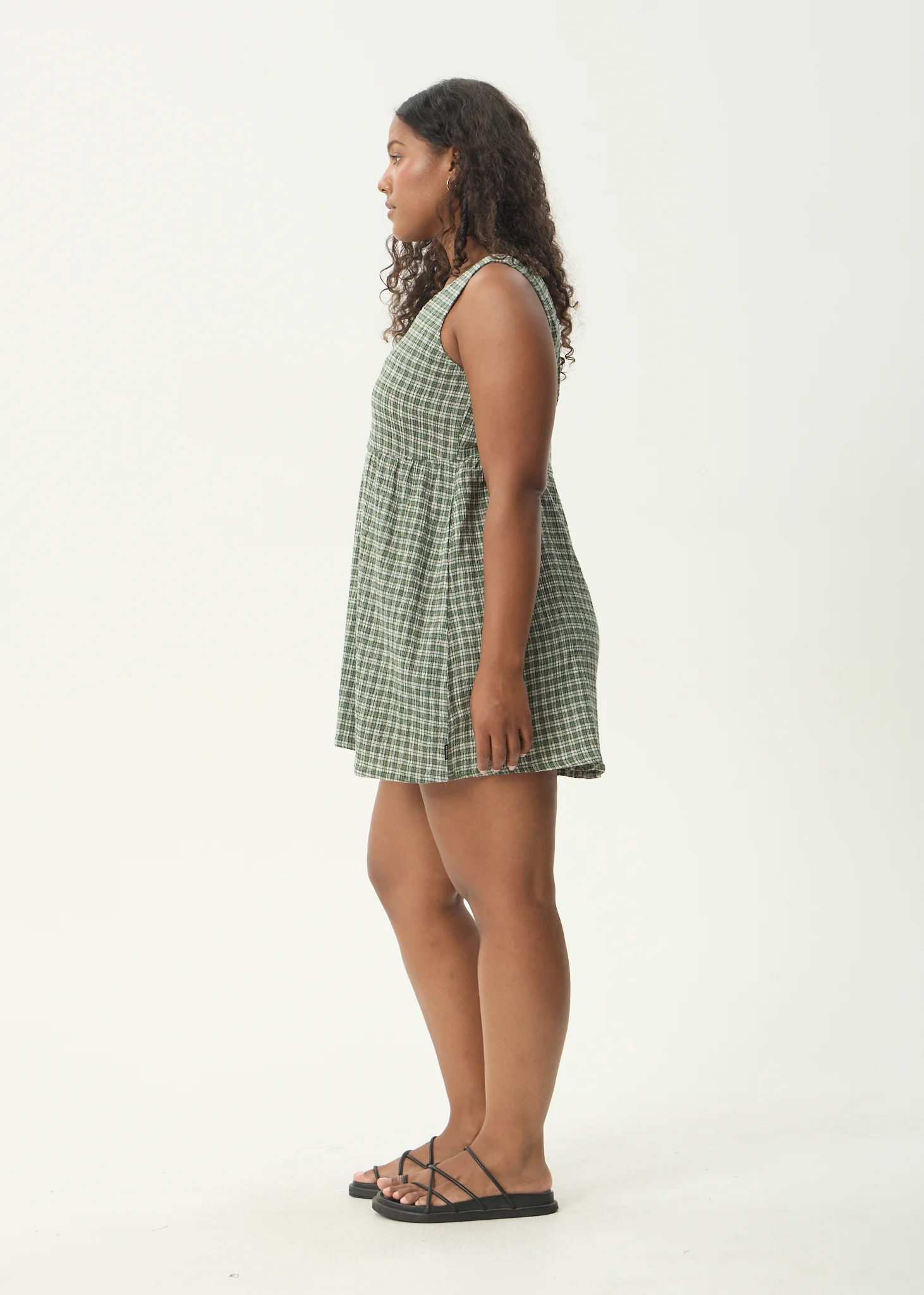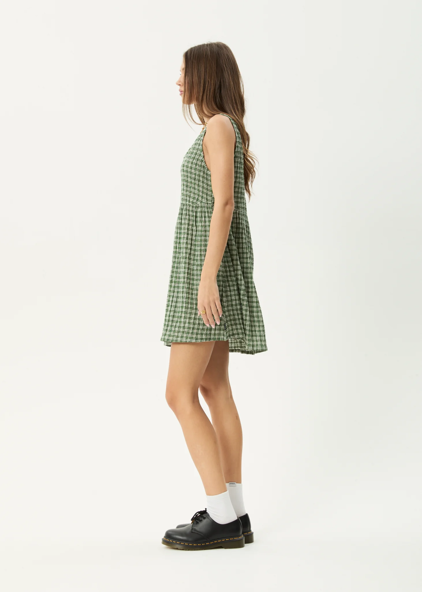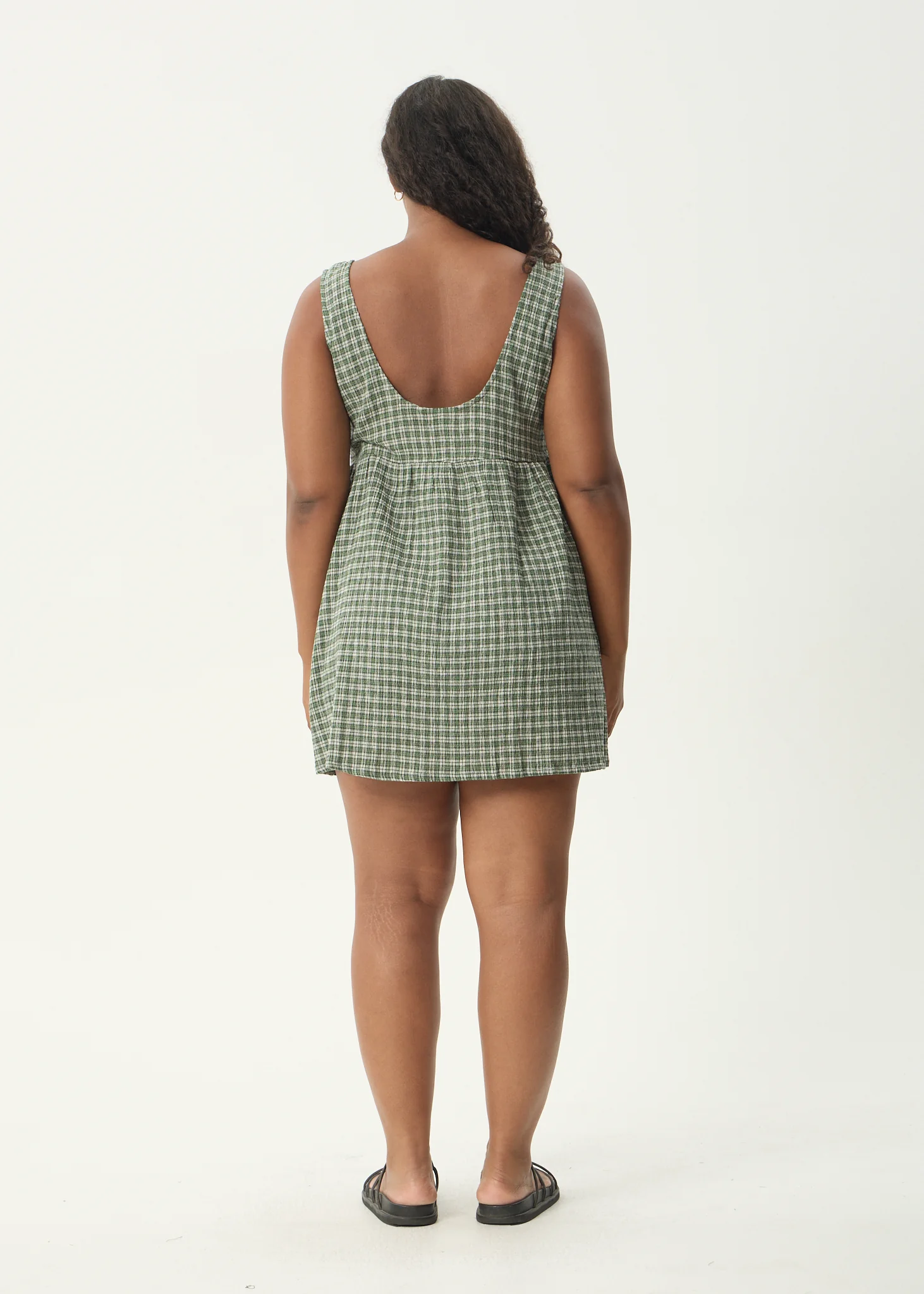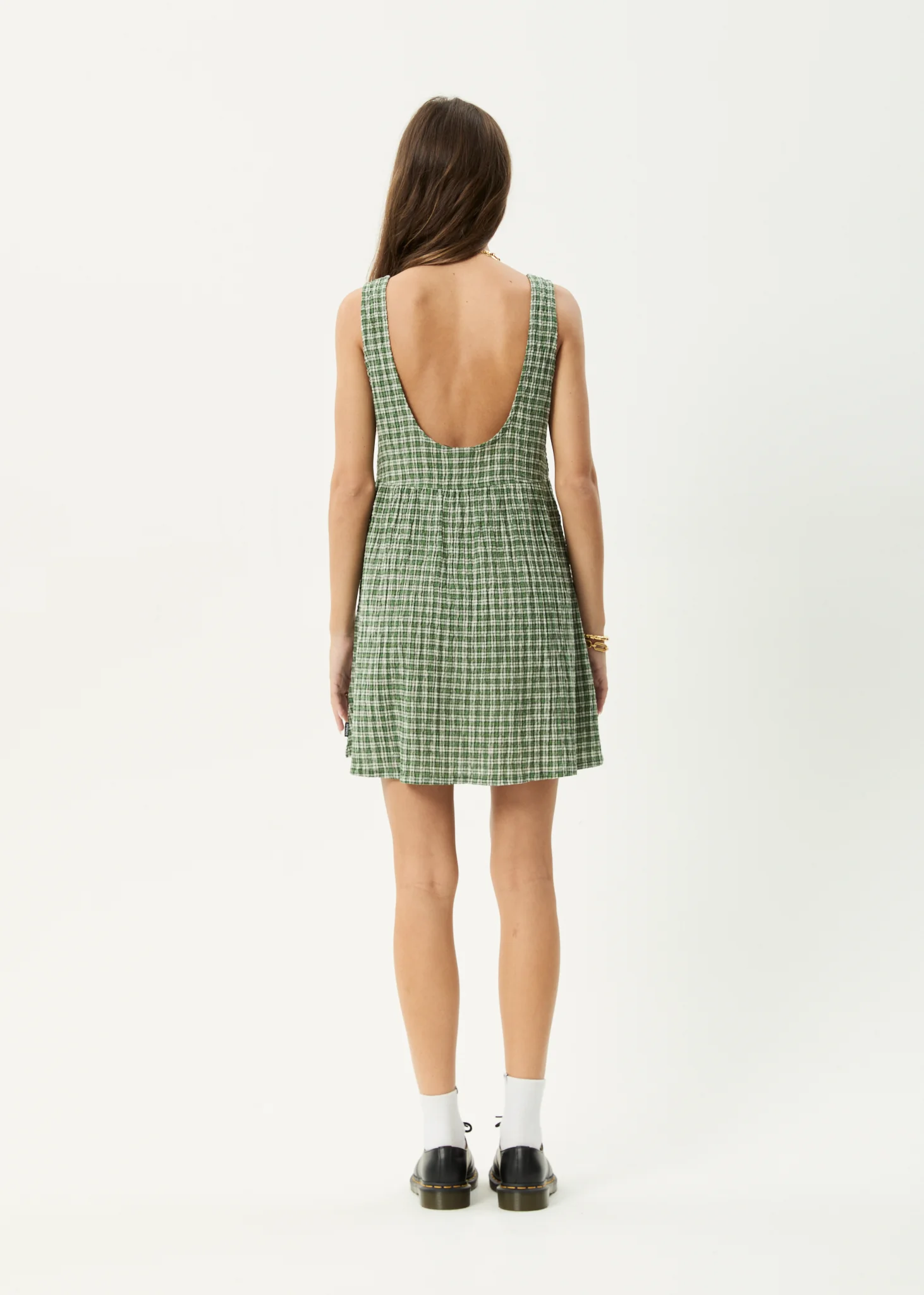AFENDS Womens Jesse - Seersucker Mini Dress - Deep Green Check