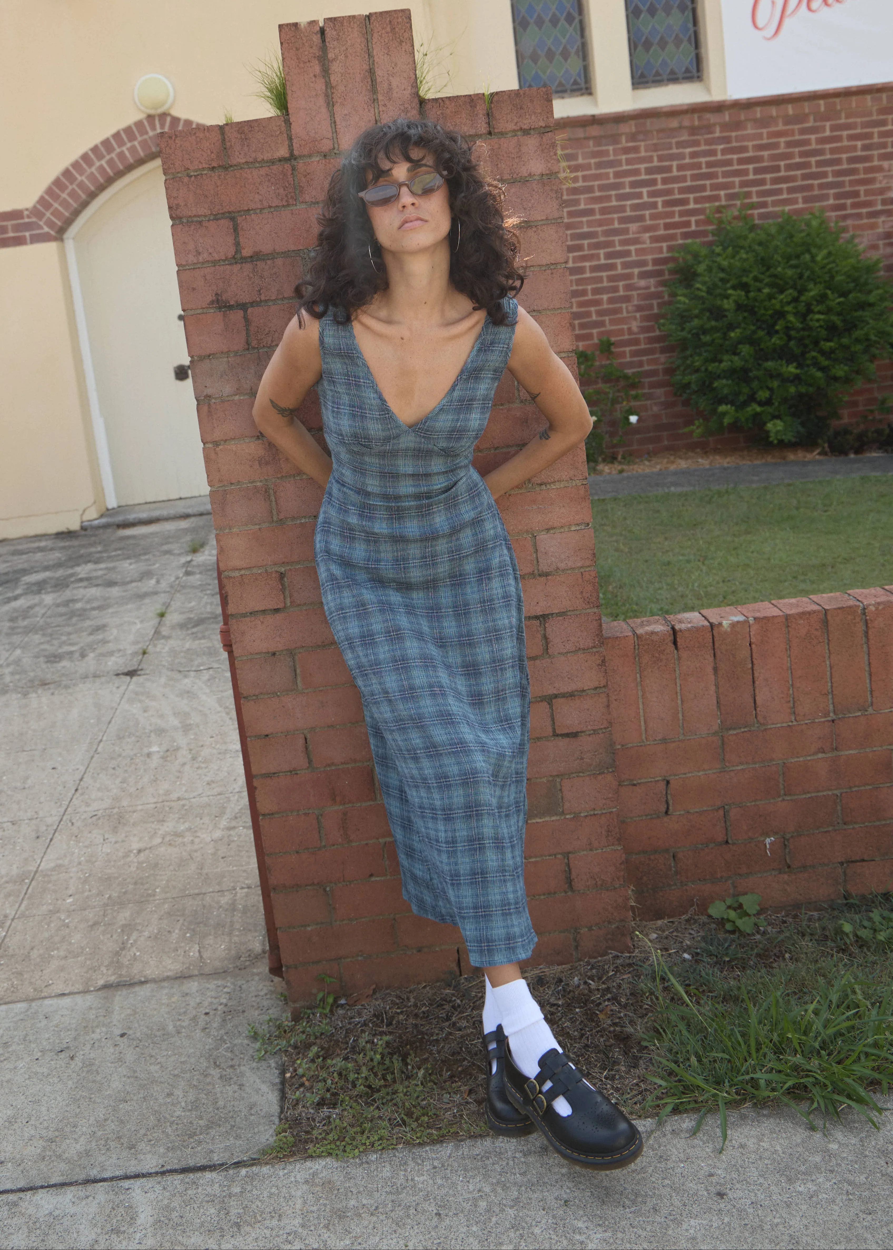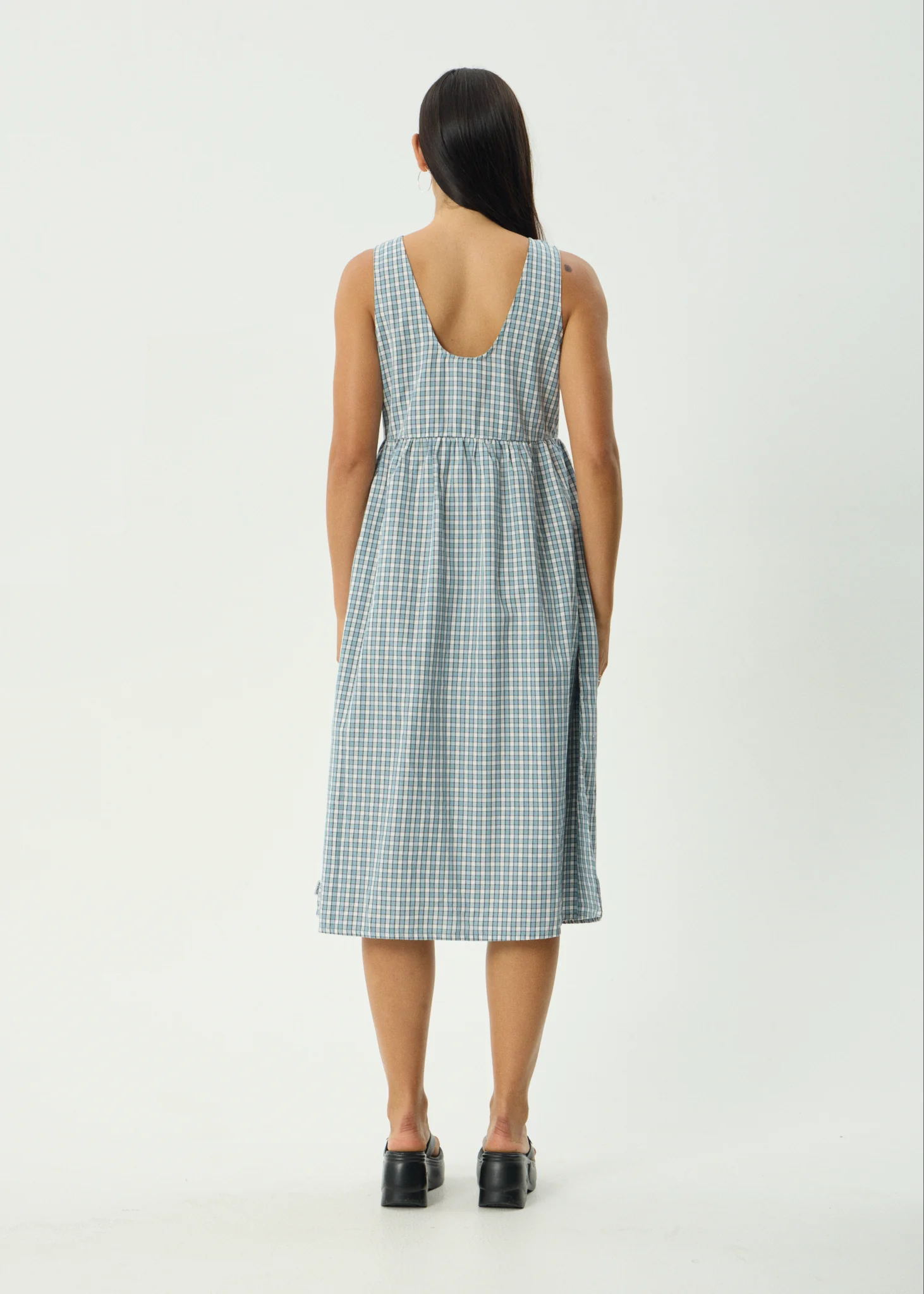 AFENDS Womens Evans - Check Midi Dress - Overcast Check