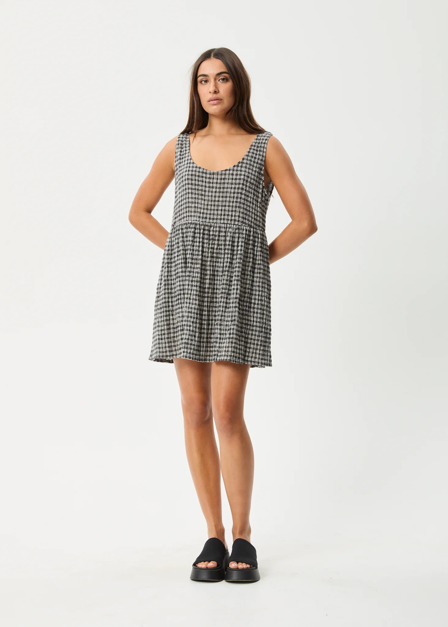 AFENDS Womens Jesse - Seersucker Mini Dress - Steel Check