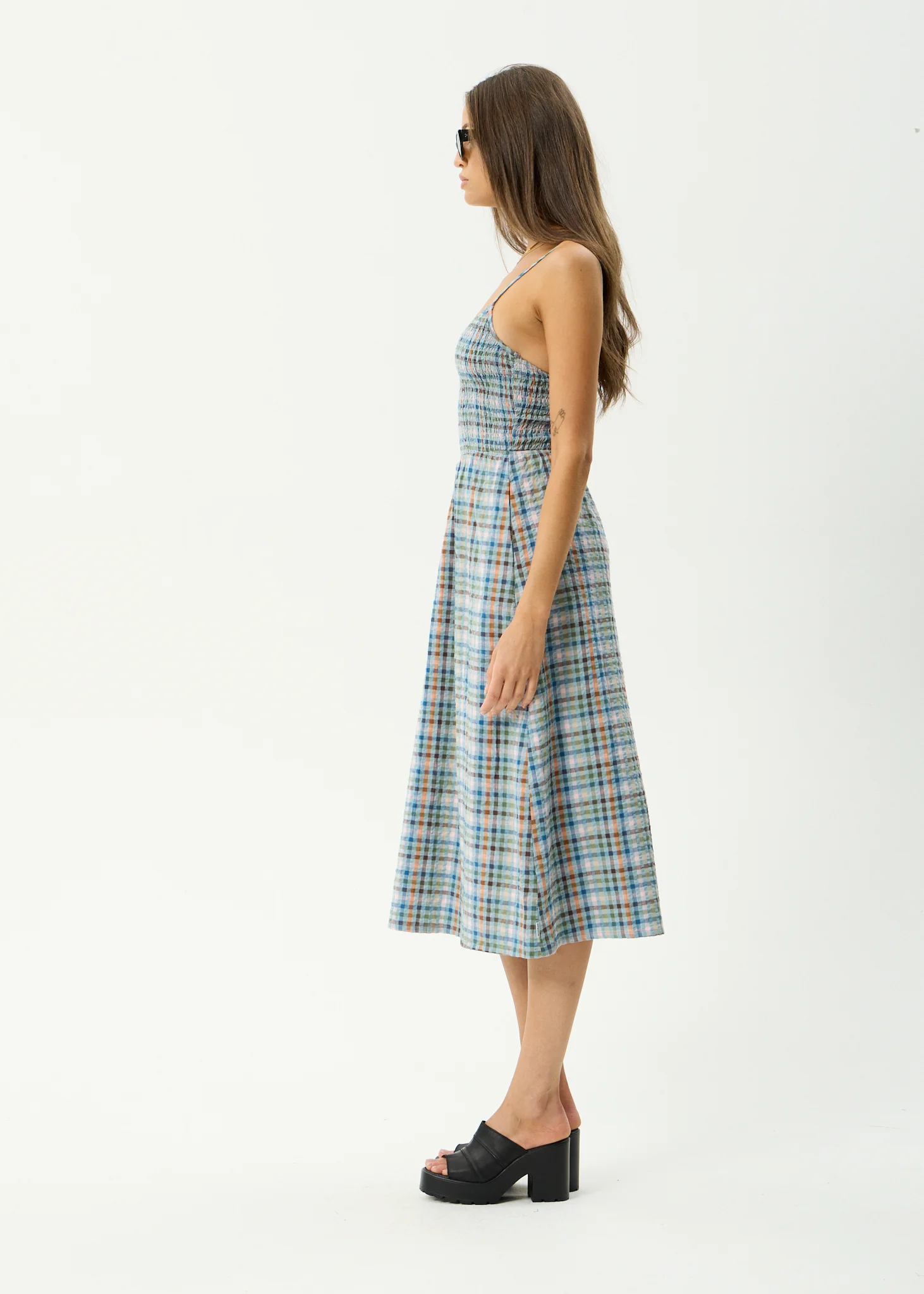 AFENDS Womens Amelie Check - Seersucker Midi Dress - Multi