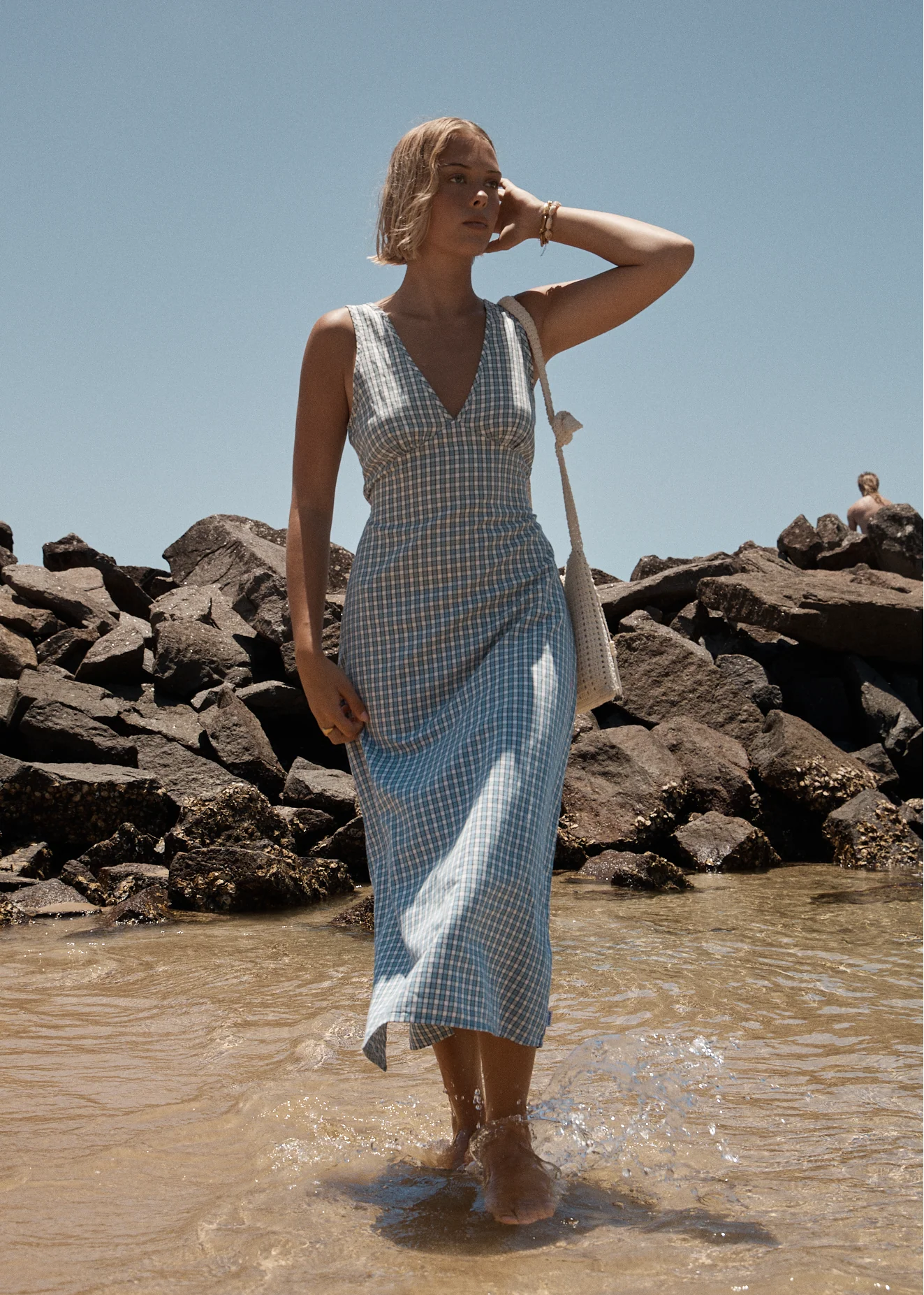 AFENDS Womens Rumi - Seersucker Midi Dress - Overcast Check