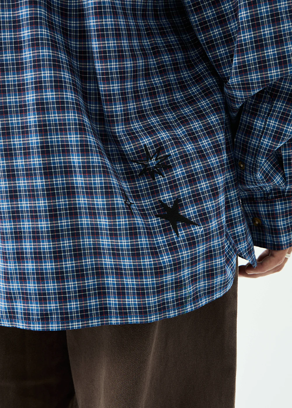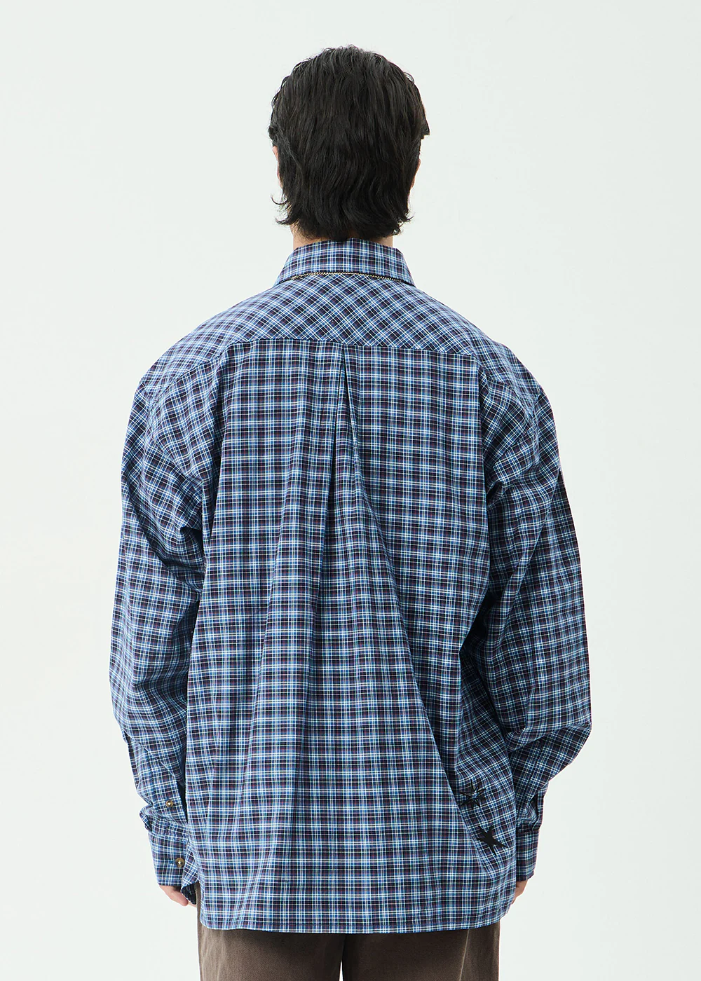 AFENDS Mens Mountains - Oversized Long Sleeve Shirt - Navy Check