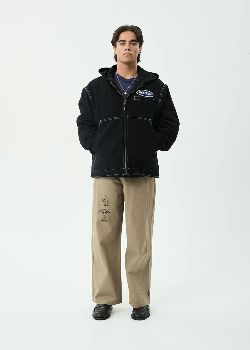 AFENDS Mens Flower Patch - Boxy Zip Hood - Stone Black