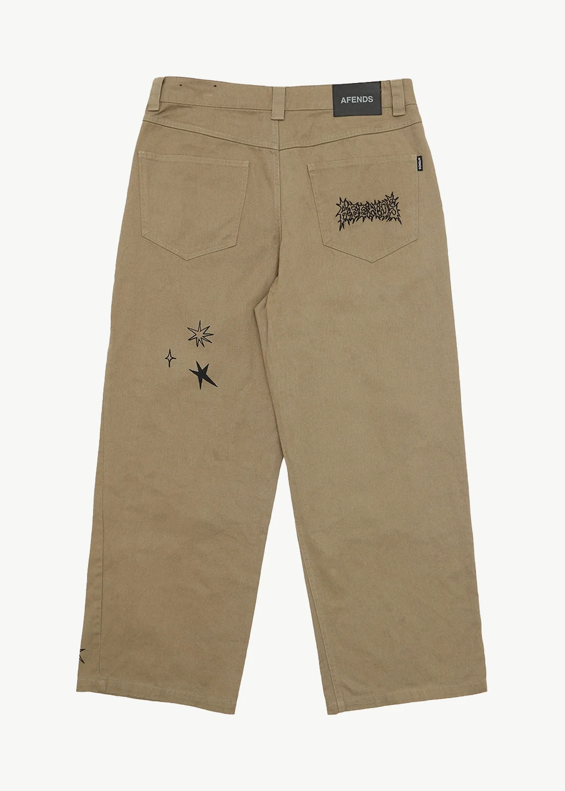 AFENDS Mens Flower Patch - Pablo Printed Pant - Stone