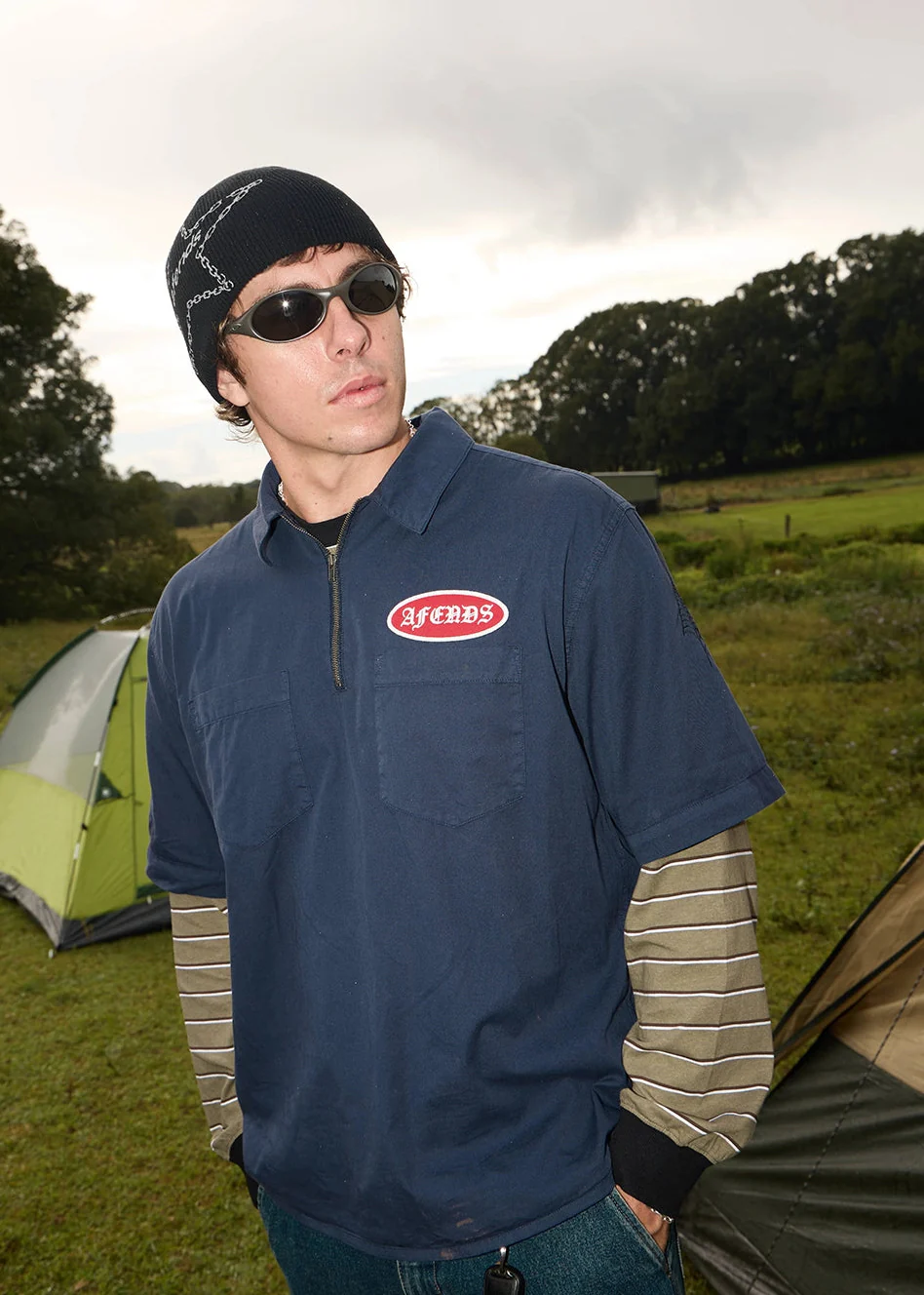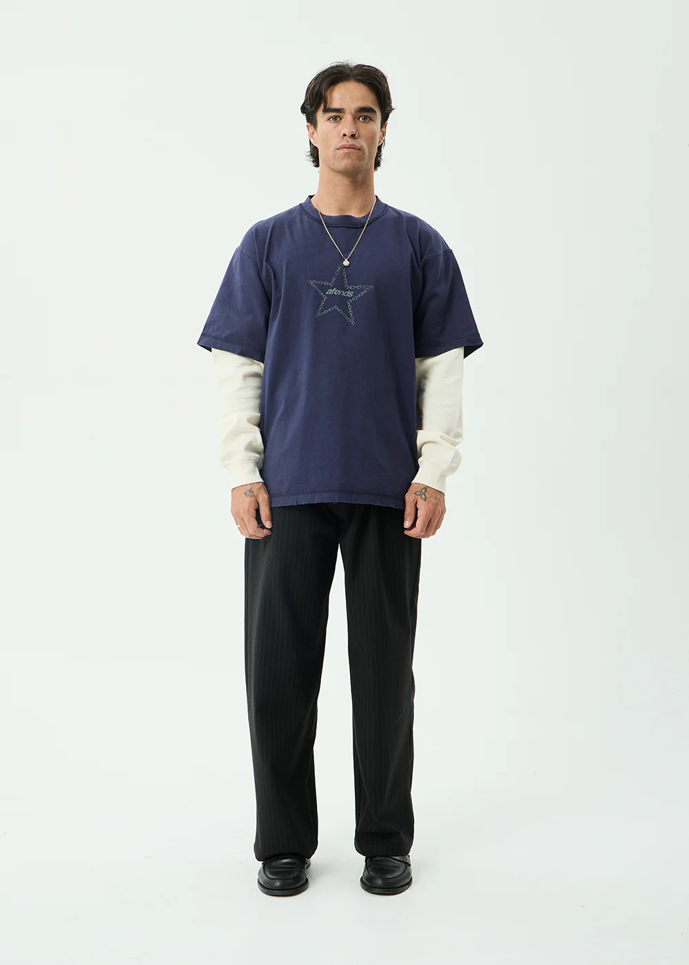 AFENDS Mens Chains - Heavyweight Layered Waffle Long Sleeve Tee - Washed Deep Sea