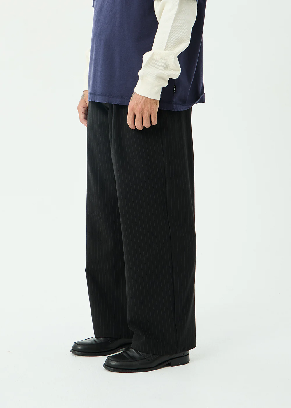 AFENDS Mens Business - Pleated Pants - Black Stripe