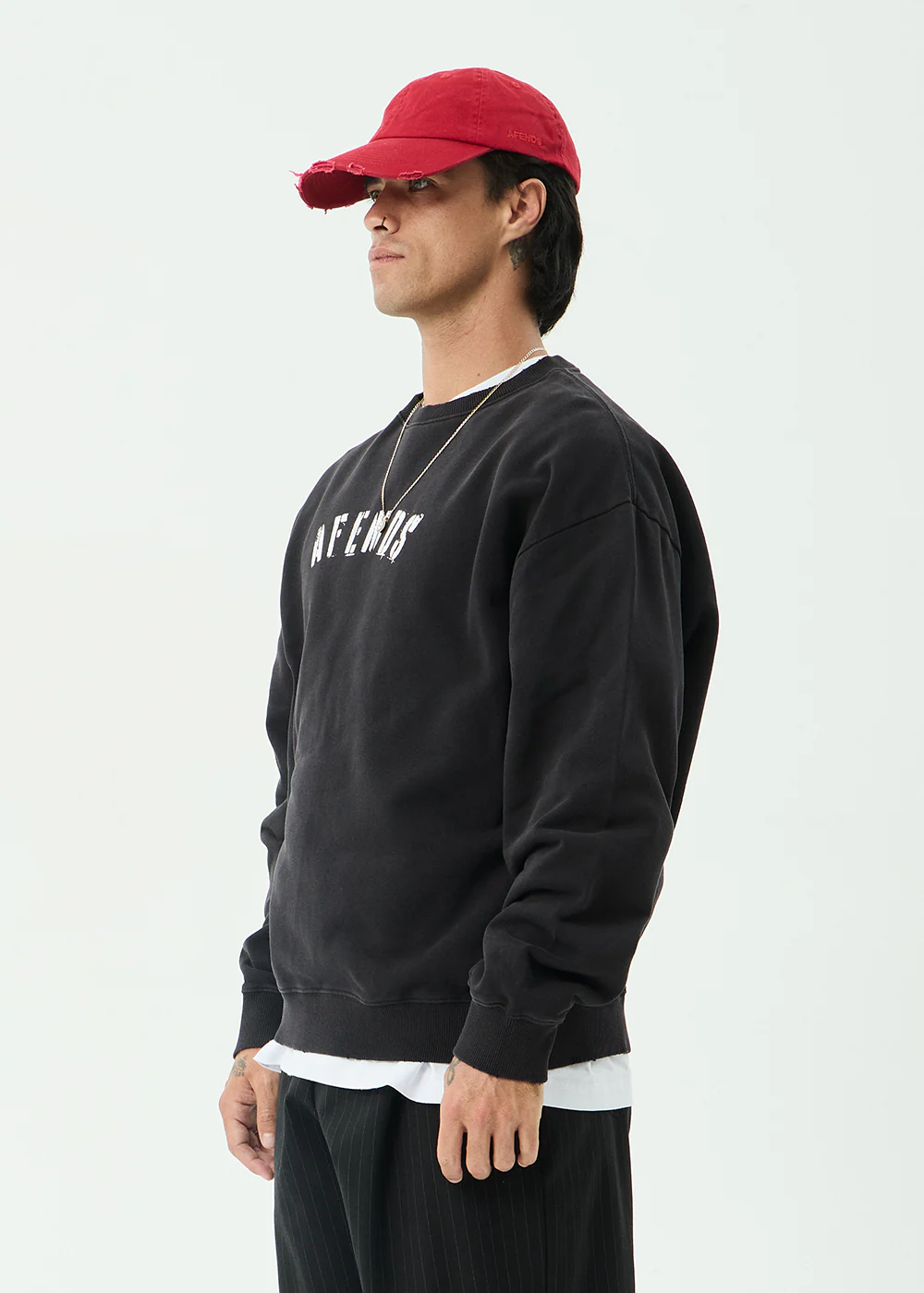 AFENDS Mens Contingent - Crew Neck - Stone Black