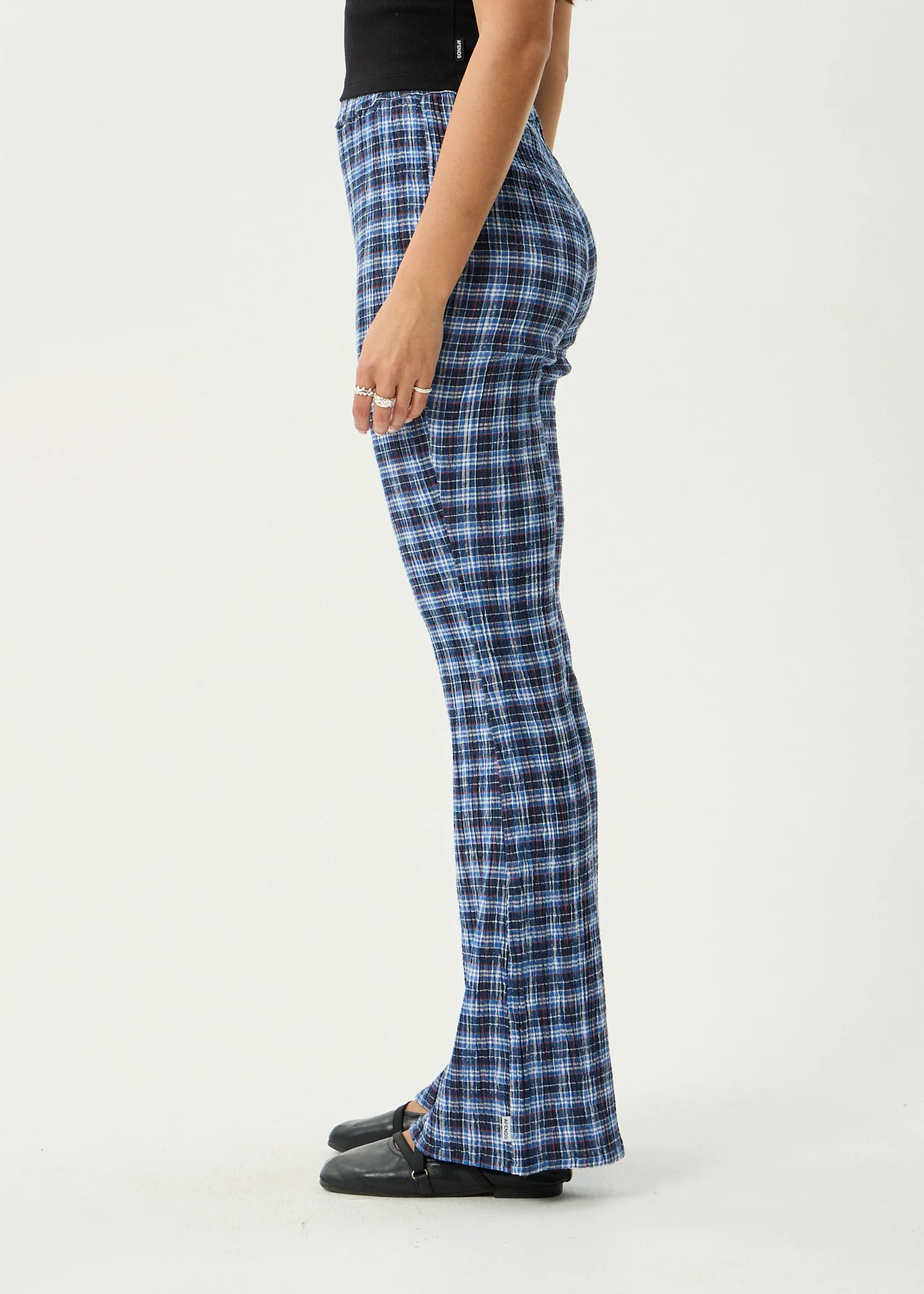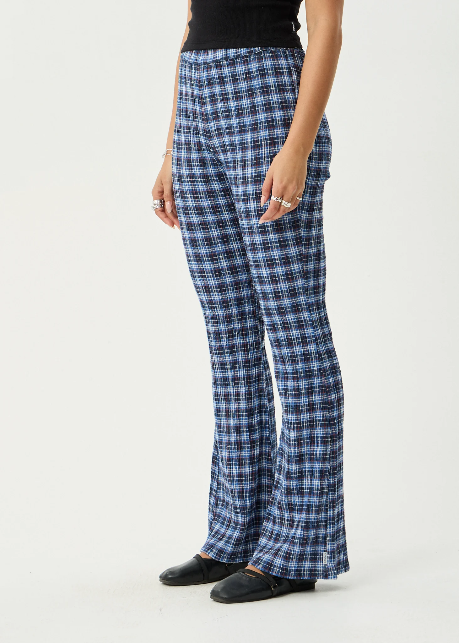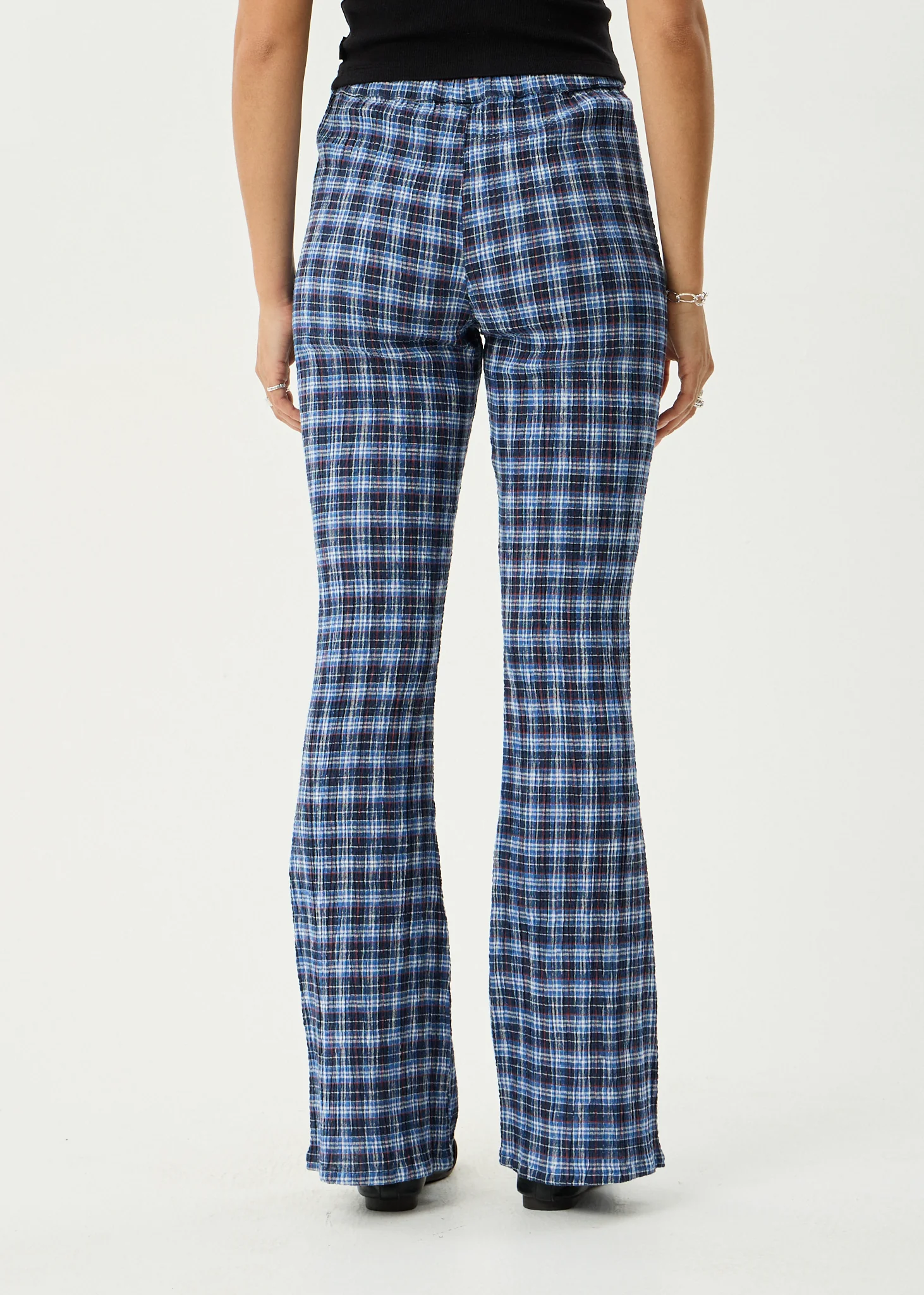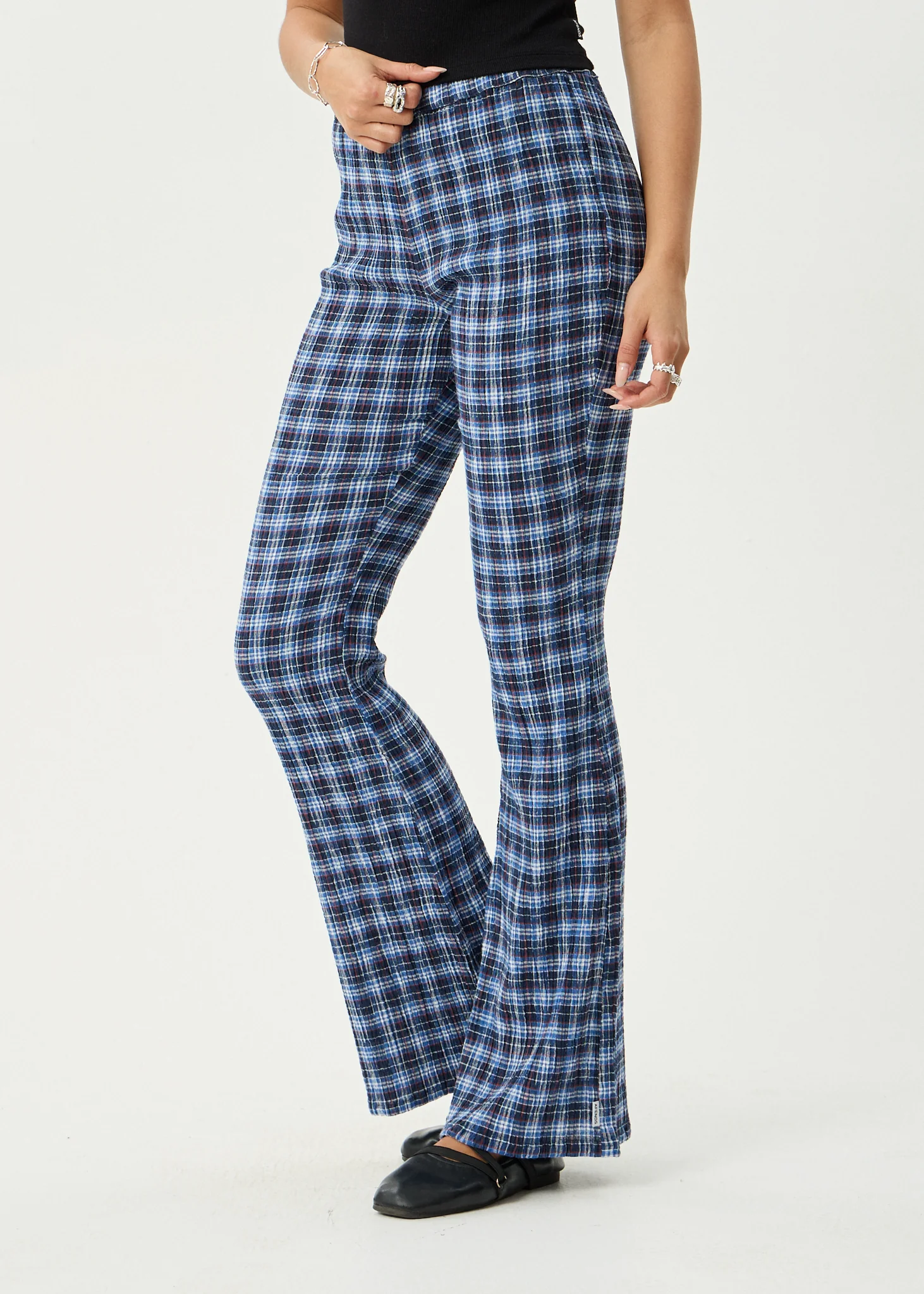 AFENDS Womens Mountains - Seersucker Flare Pant - Navy Red Check