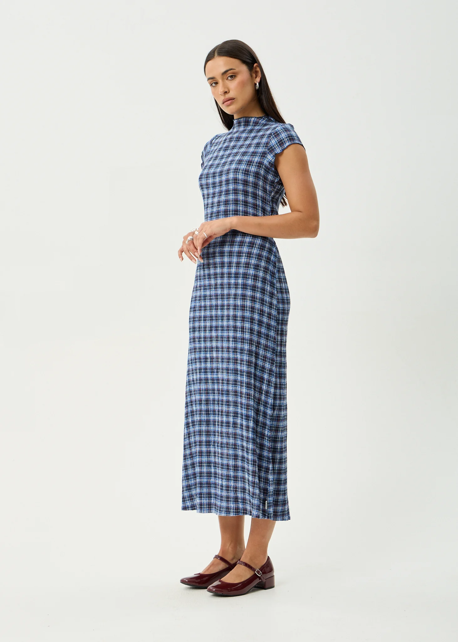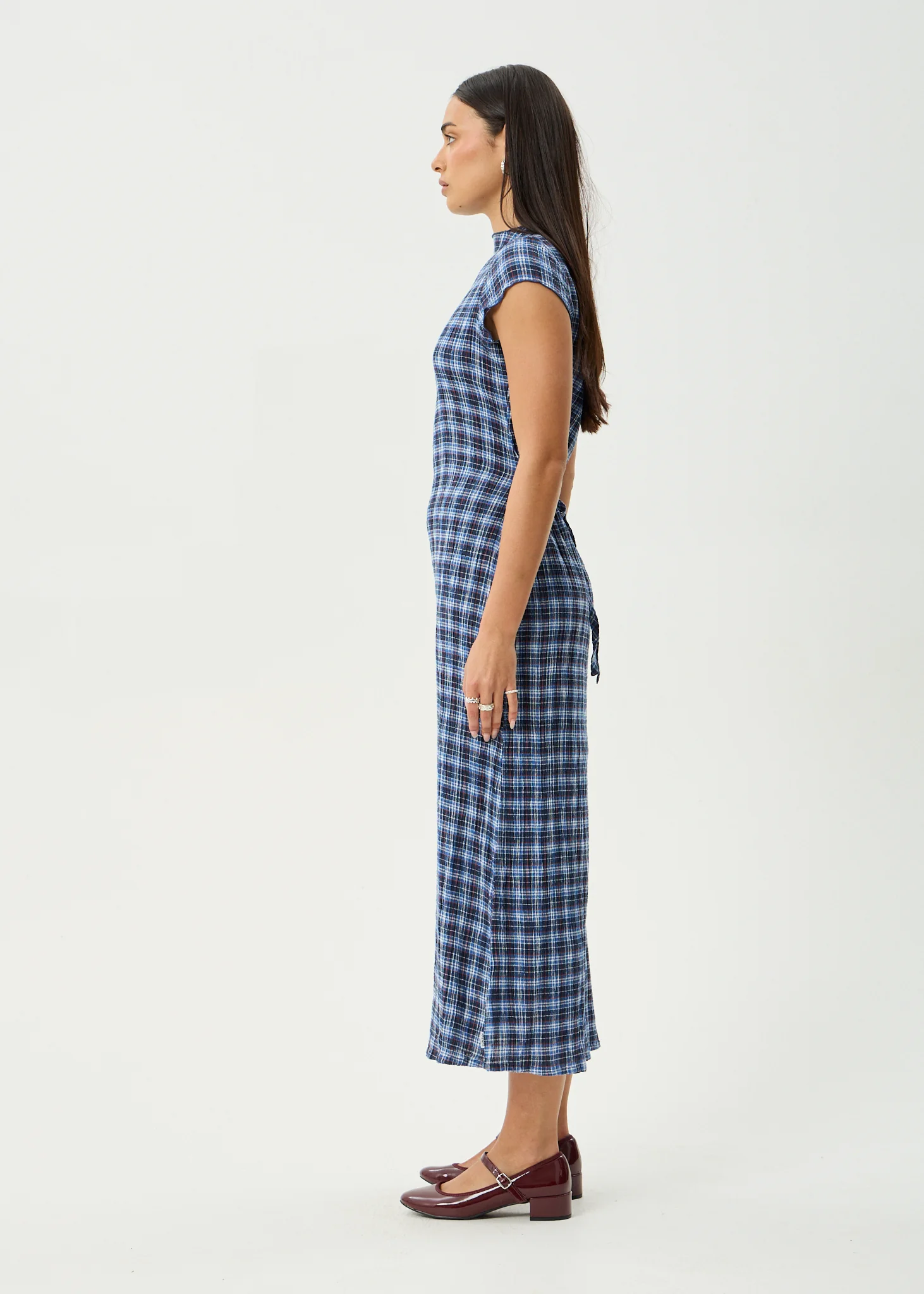 AFENDS Womens Mountains Elodie - Seersucker Midi Dress - Navy Red Check