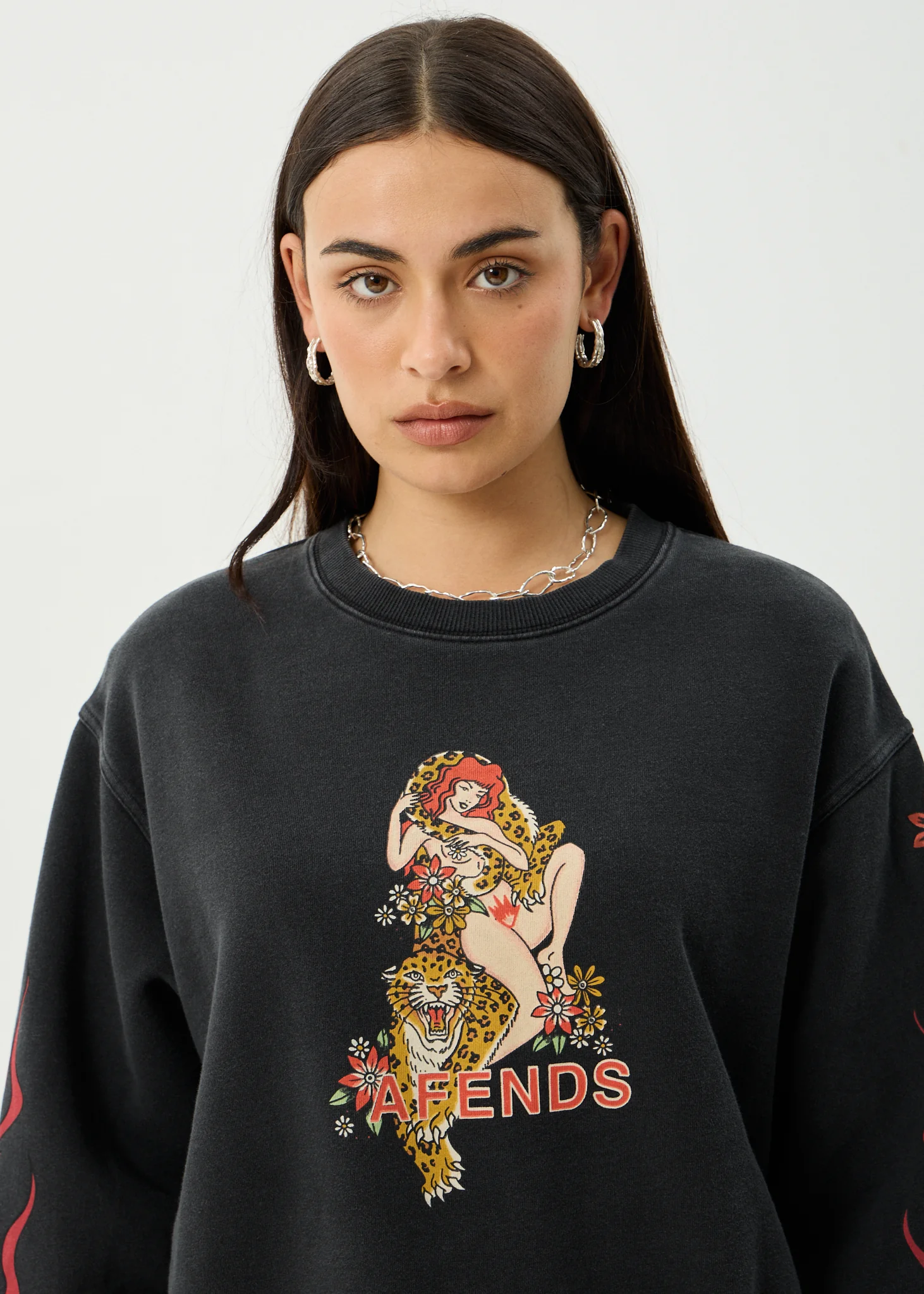 AFENDS Womens Hellcat - Crew Neck - Stone Black