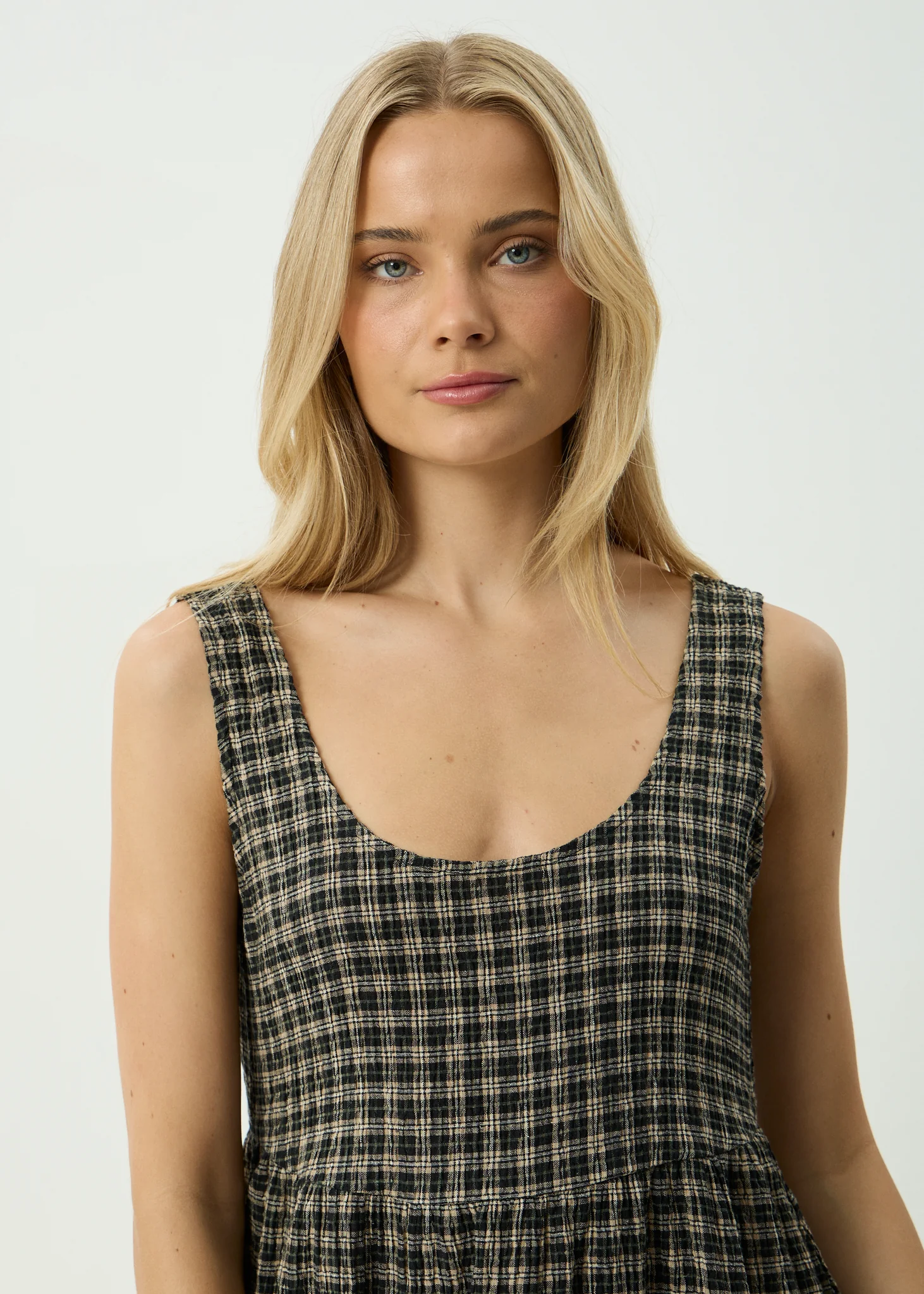AFENDS Womens Jonah - Mini Dress - Deep Olive Check
