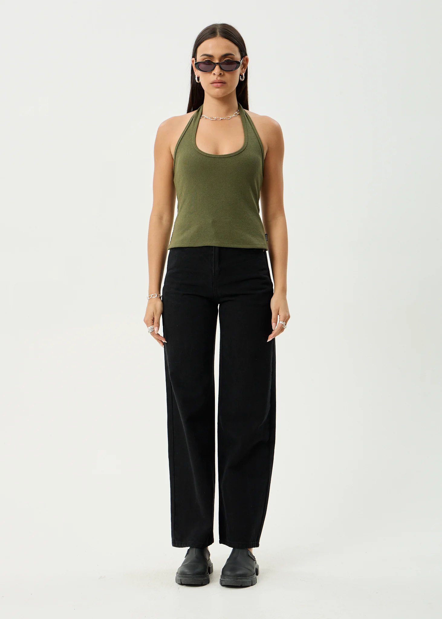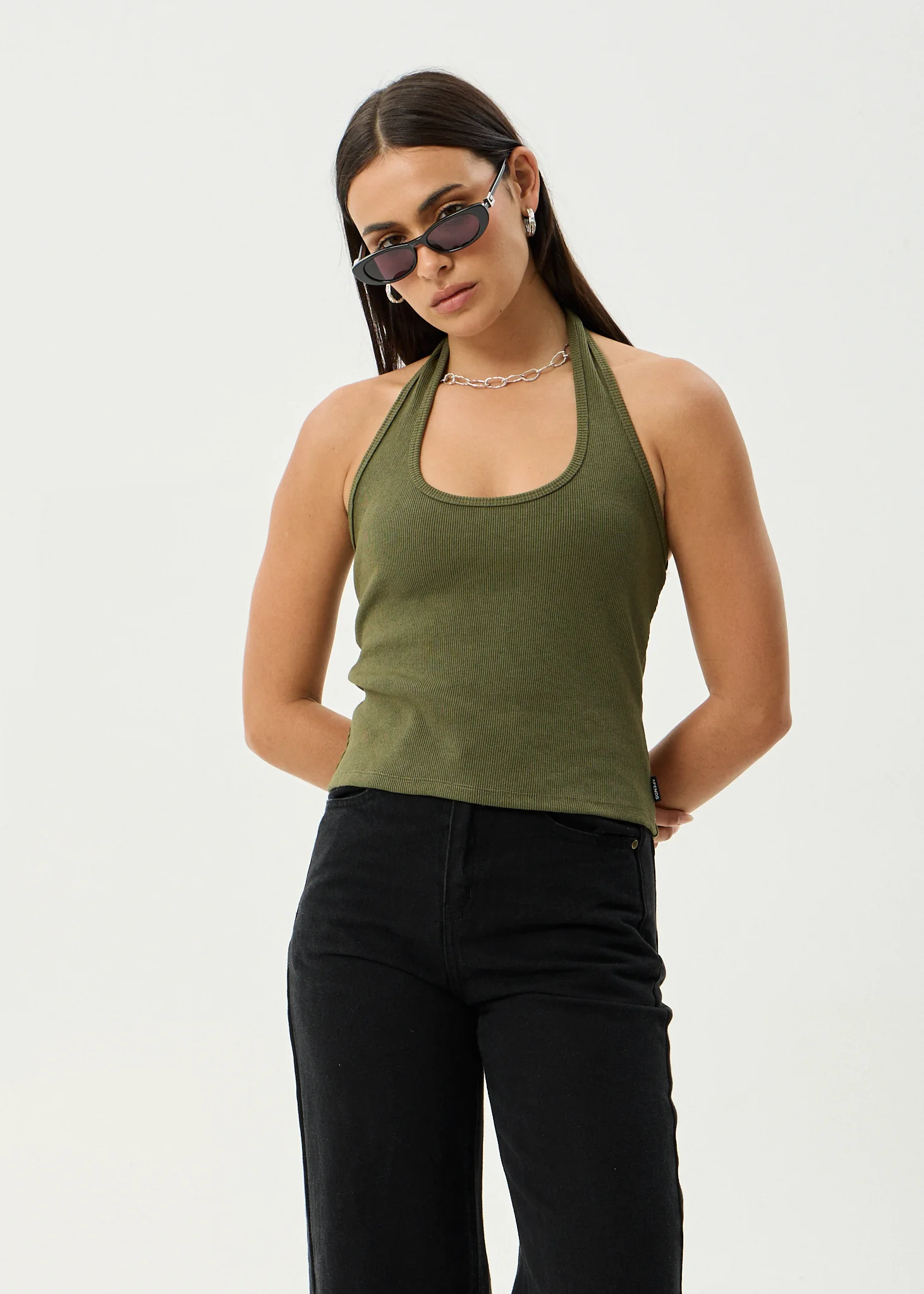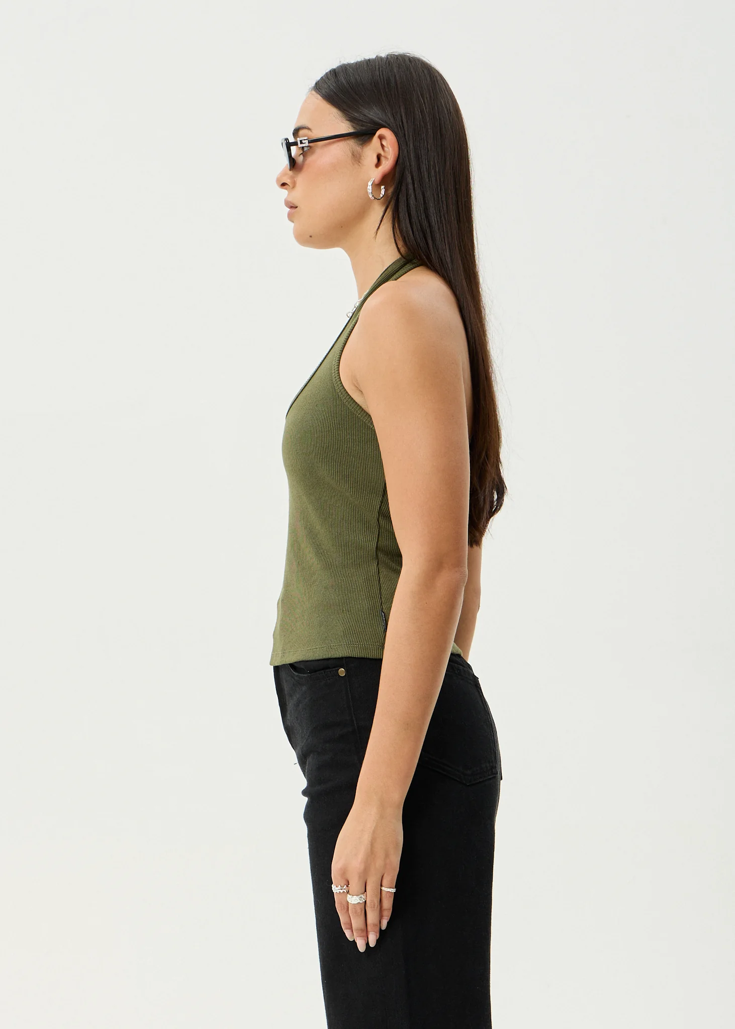 AFENDS Womens Basis - Rib Halter - Deep Olive