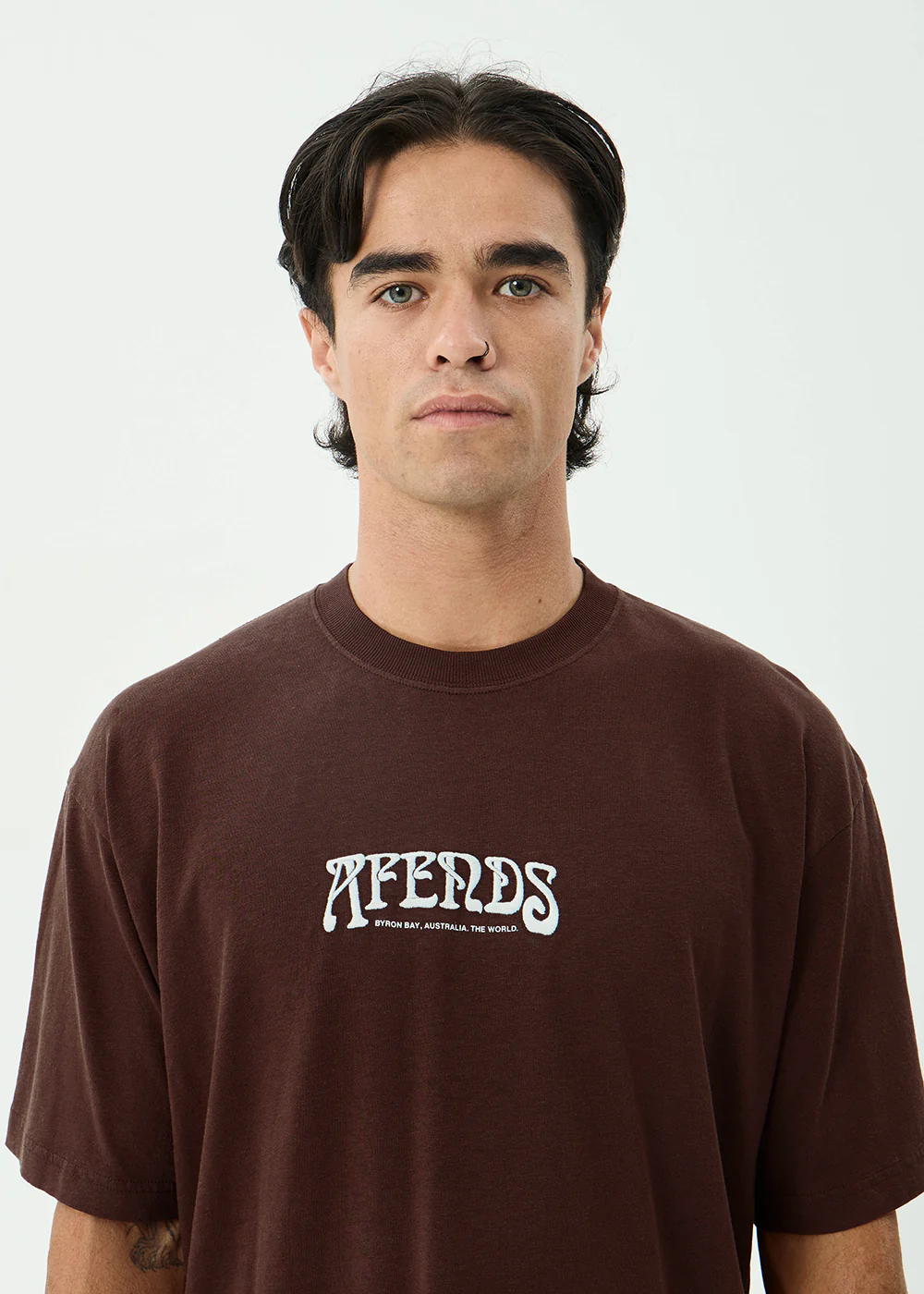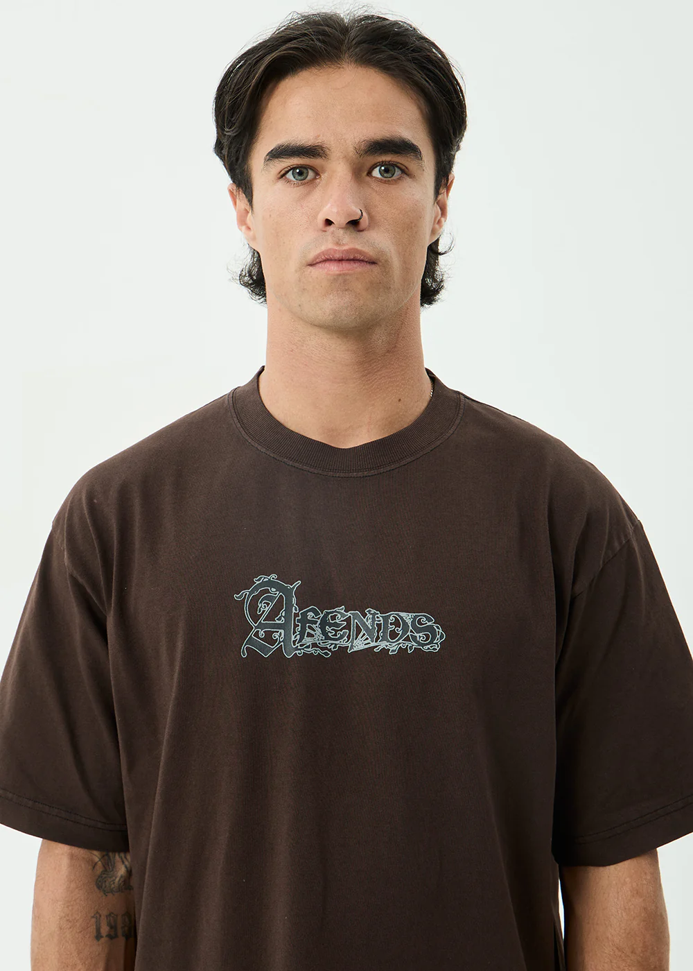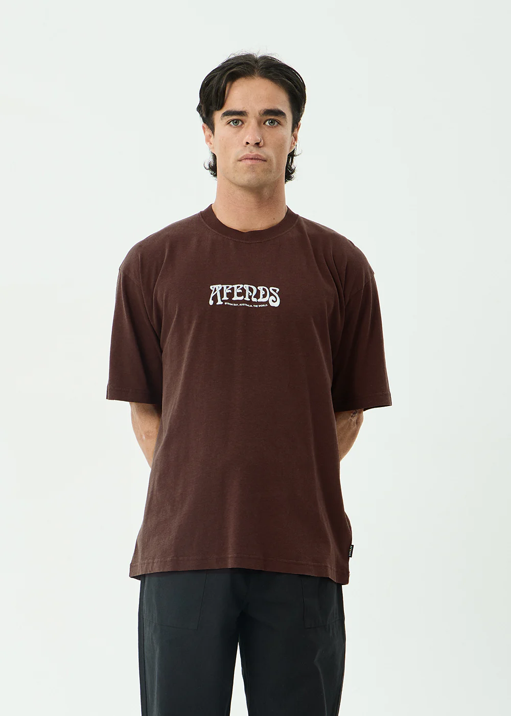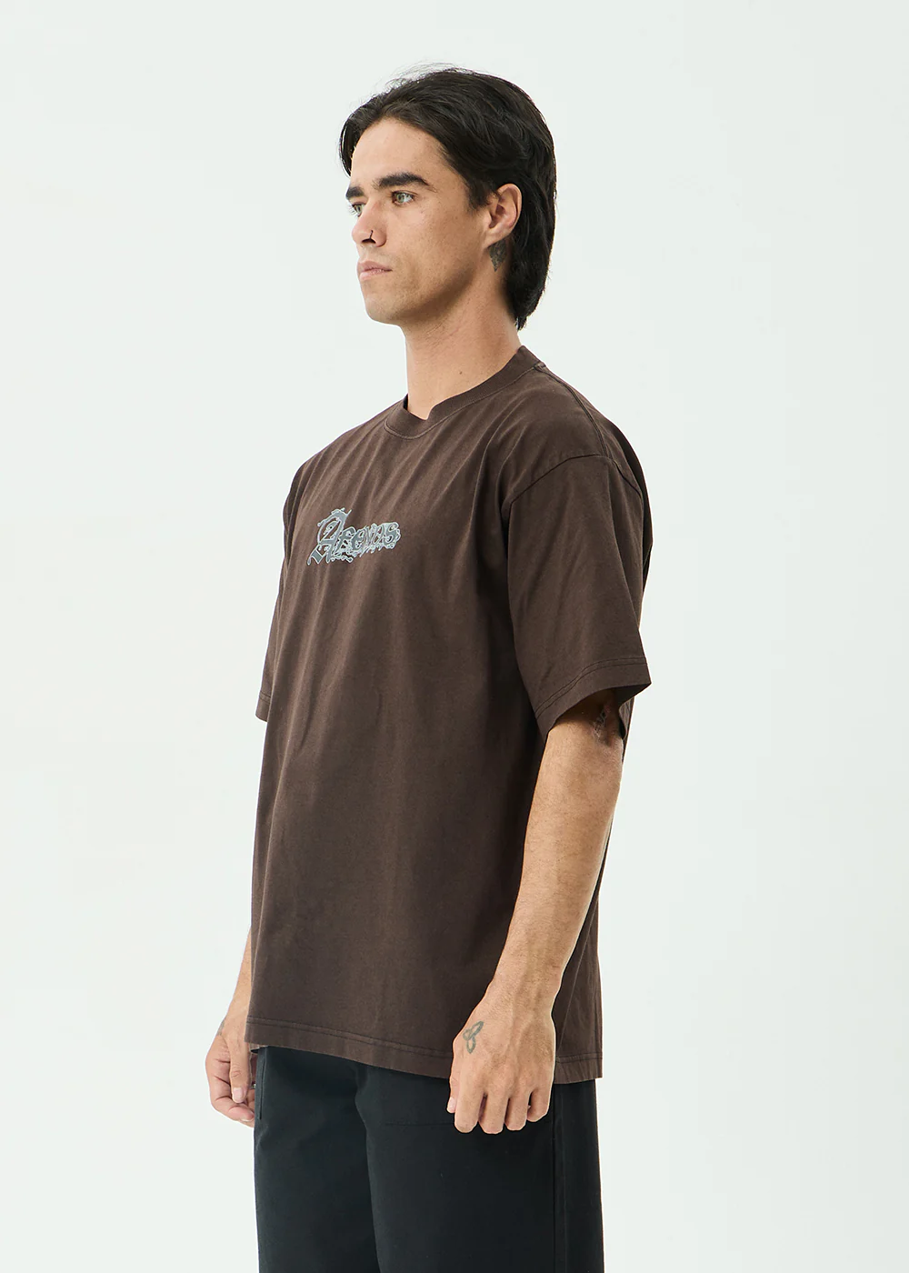 AFENDS Mens Perception - Boxy Tee - Washed Coffee