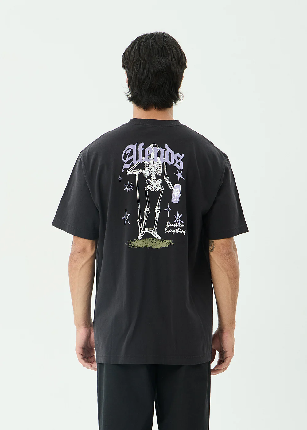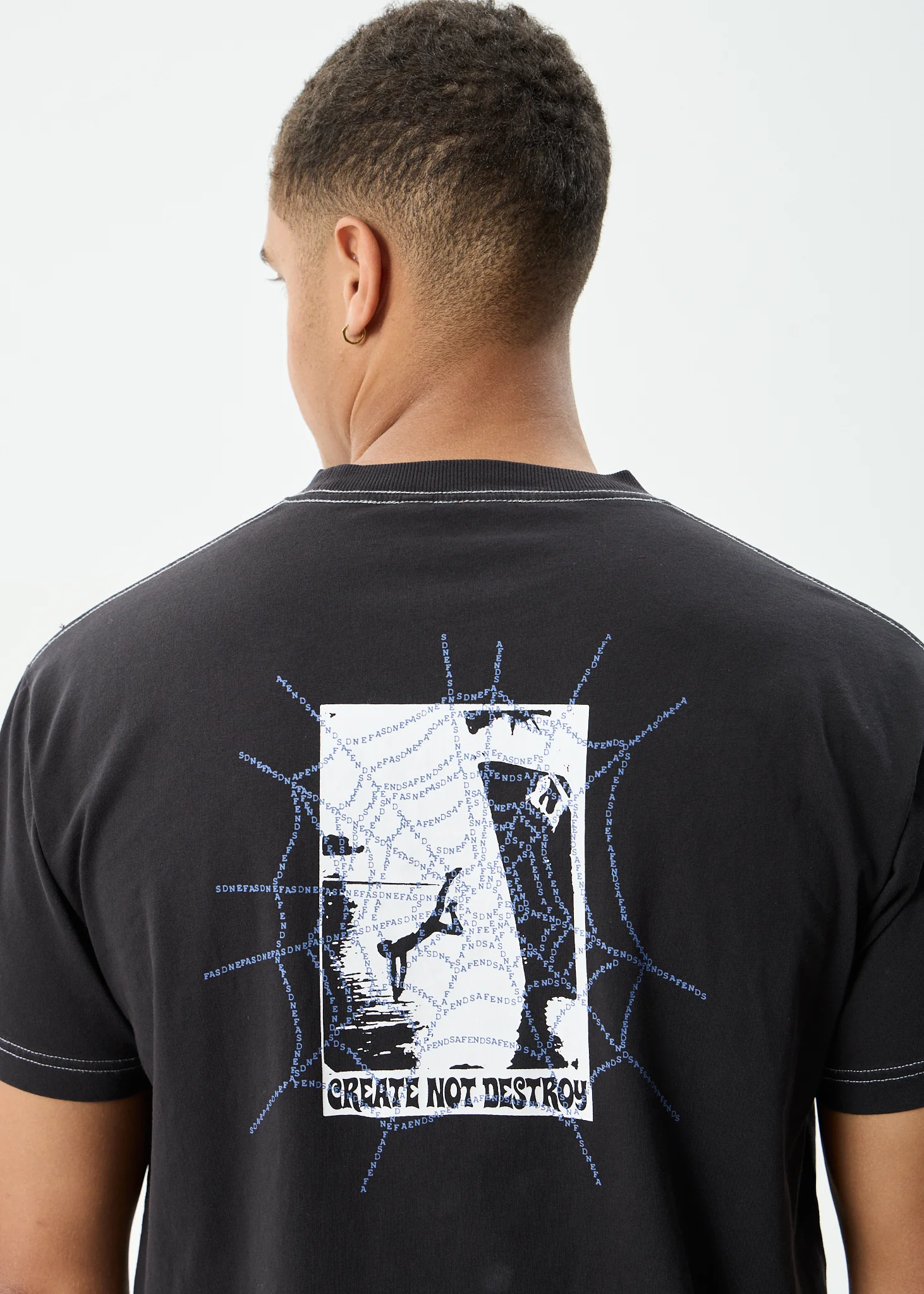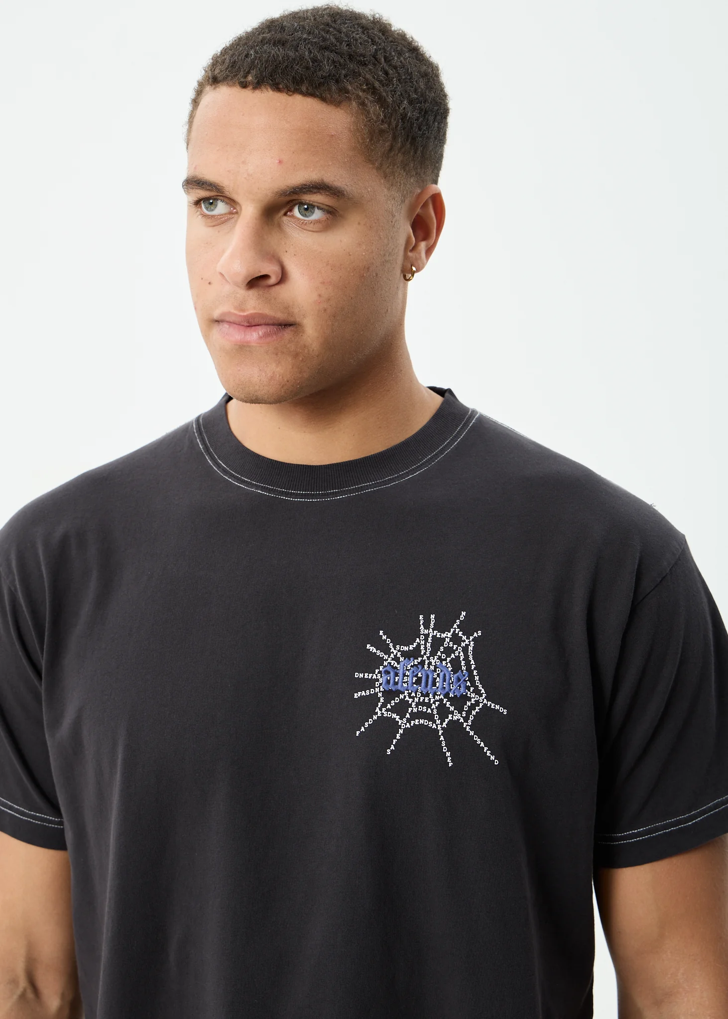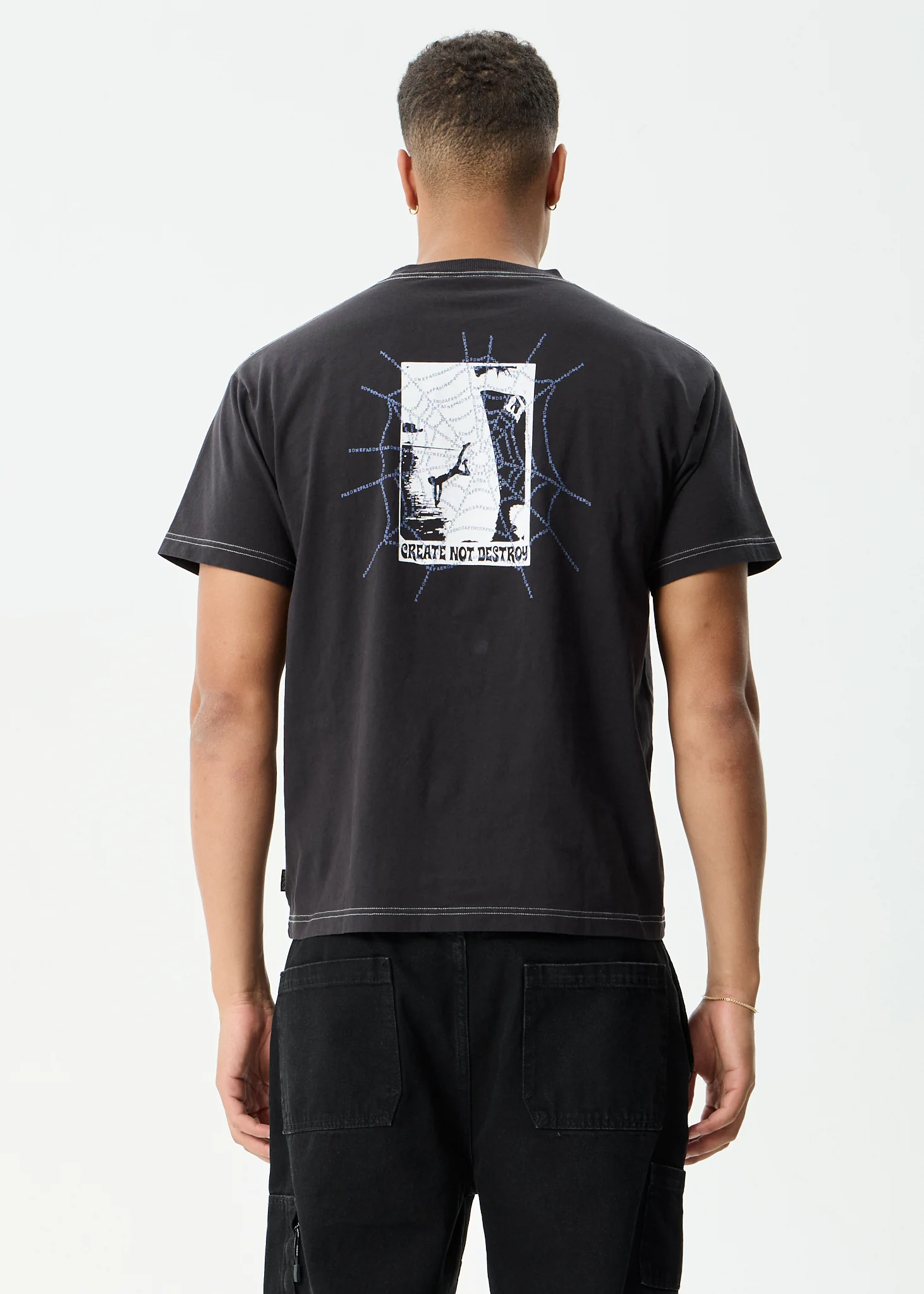 AFENDS Mens Tangled - Boxy Tee - Stone Black