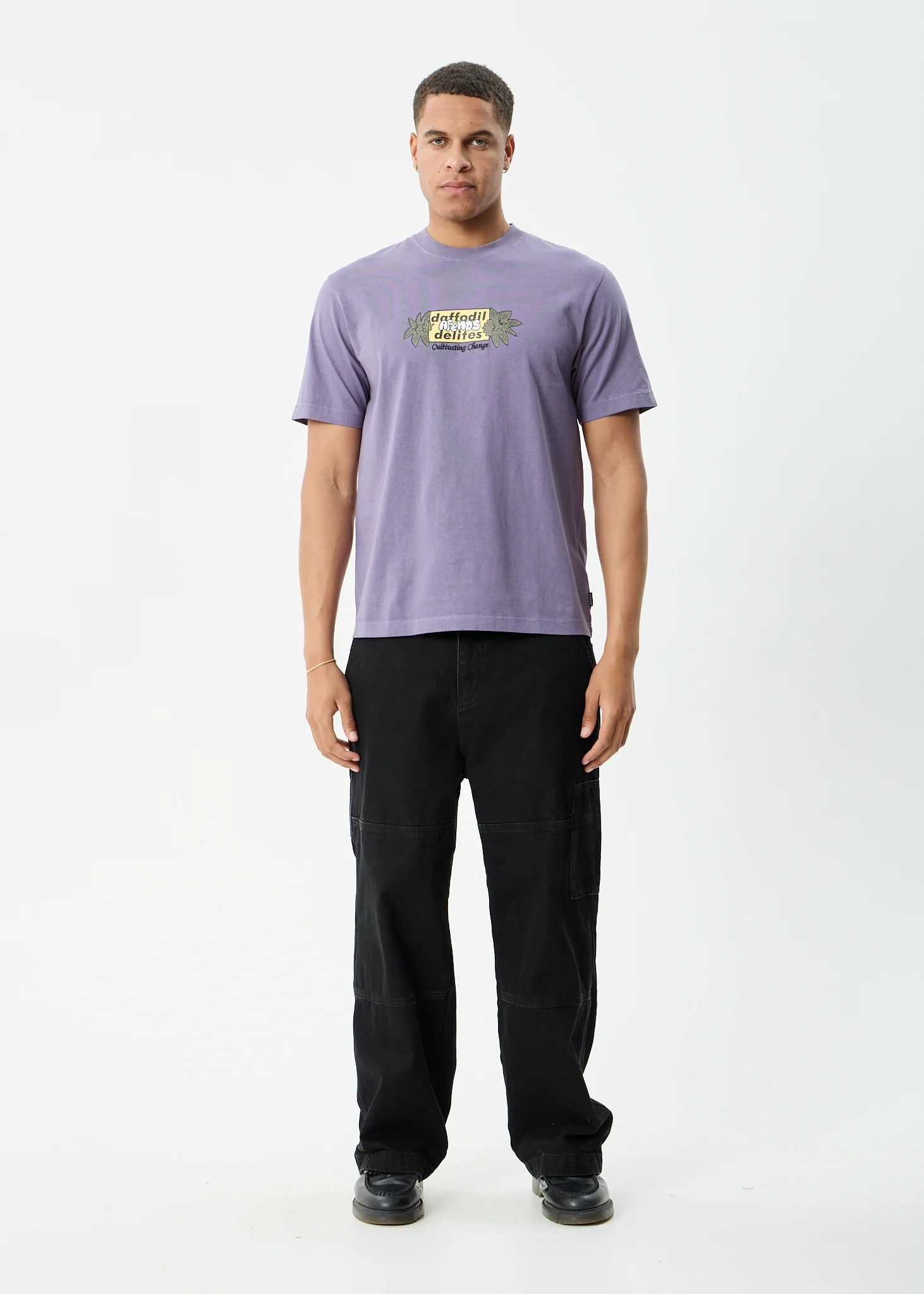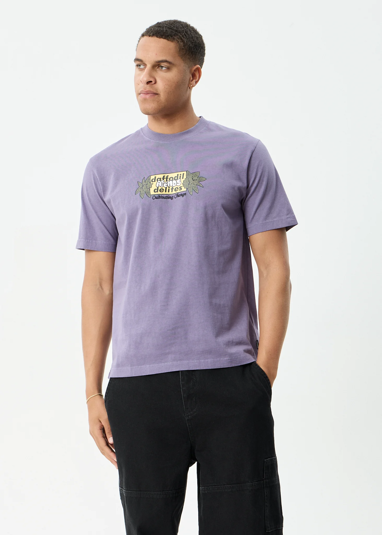 AFENDS Mens Delites - Heavyweight Retro Tee - Vintage Aubergine