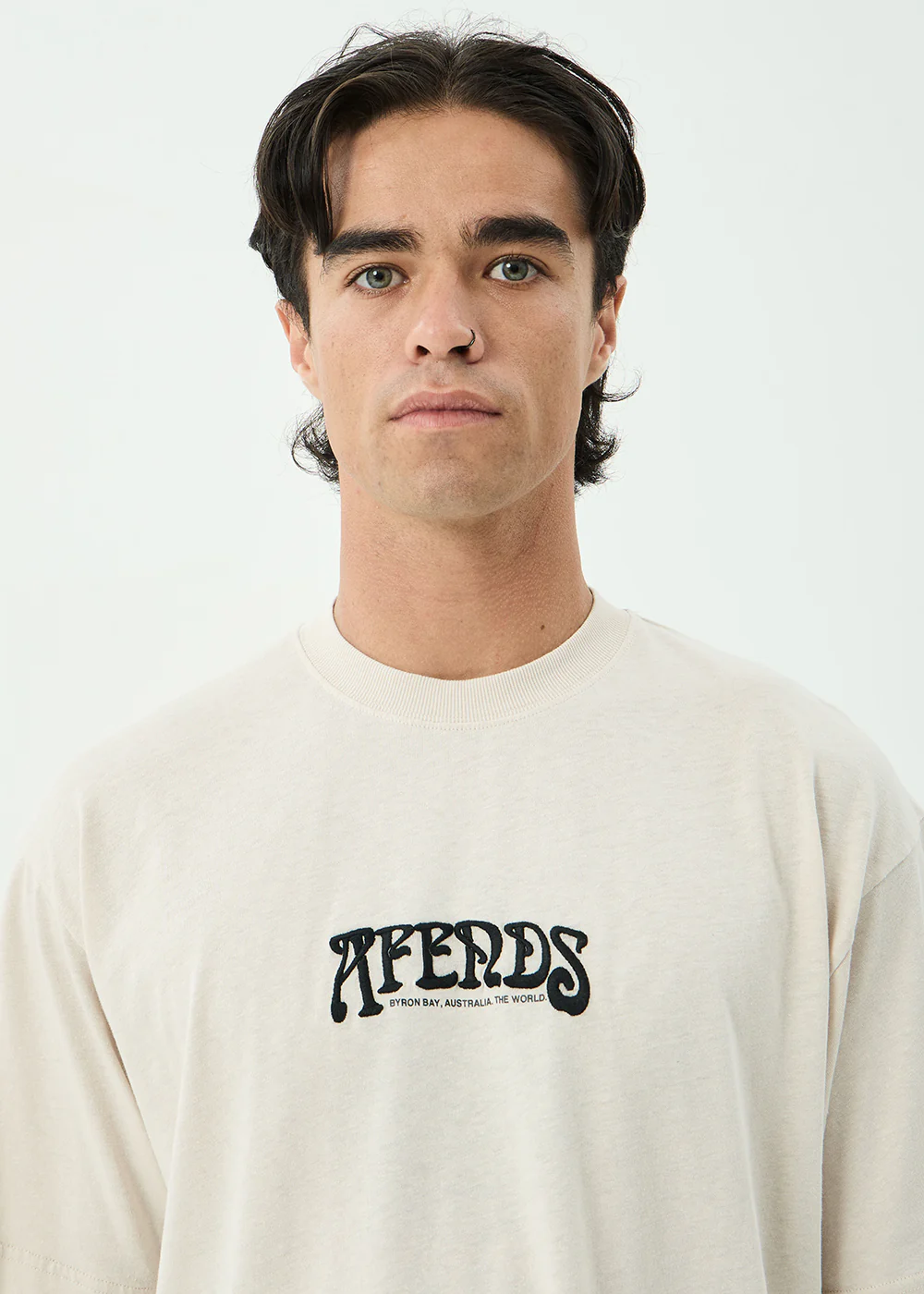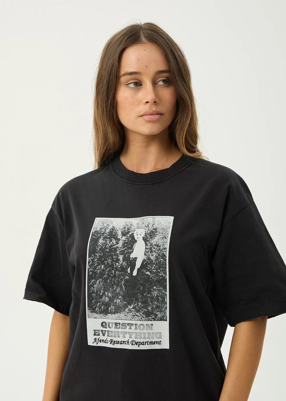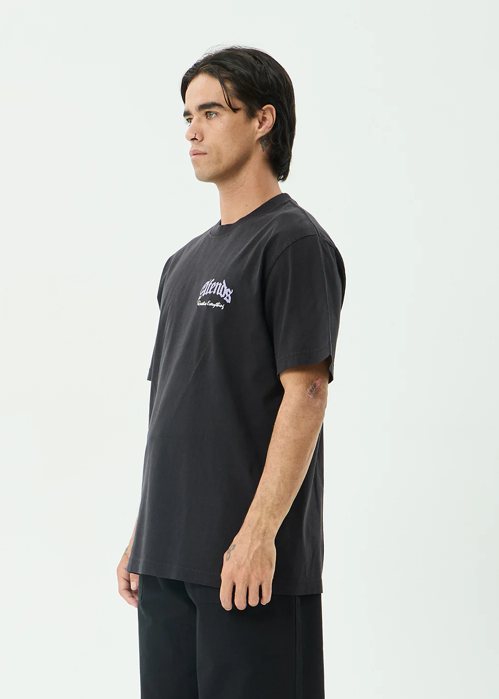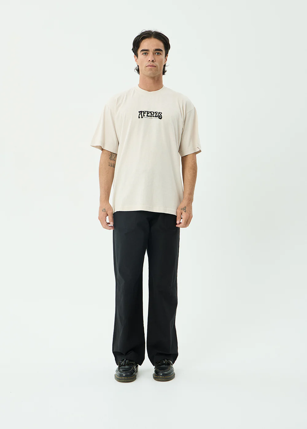 AFENDS Mens Research - Heavyweight Boxy Tee - Stone Black