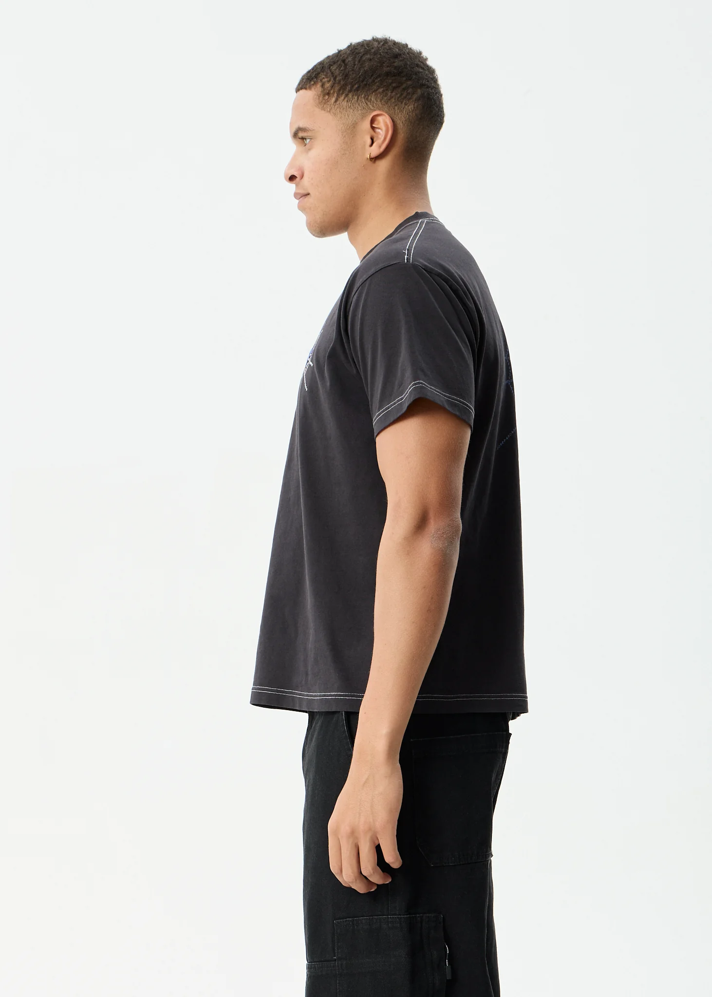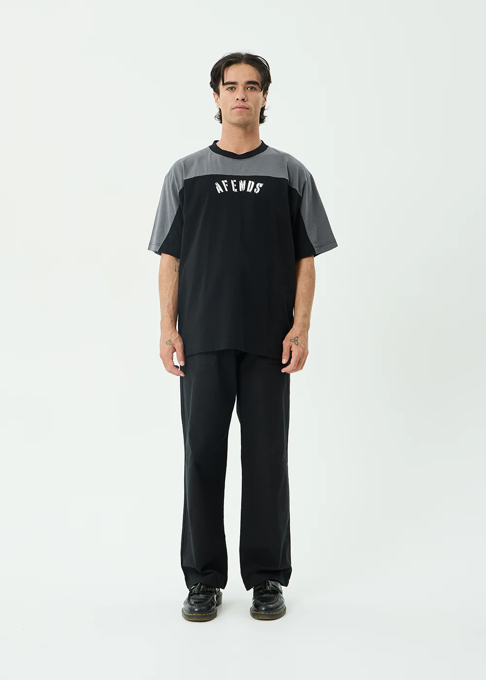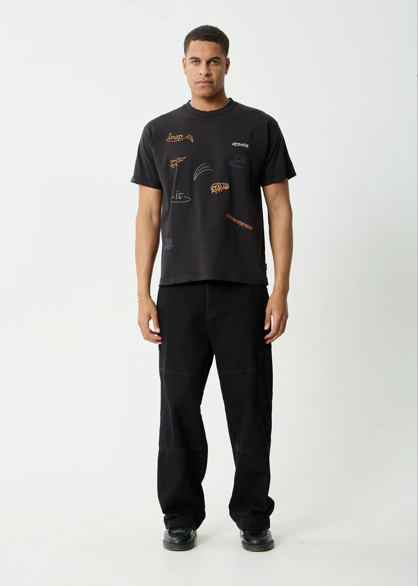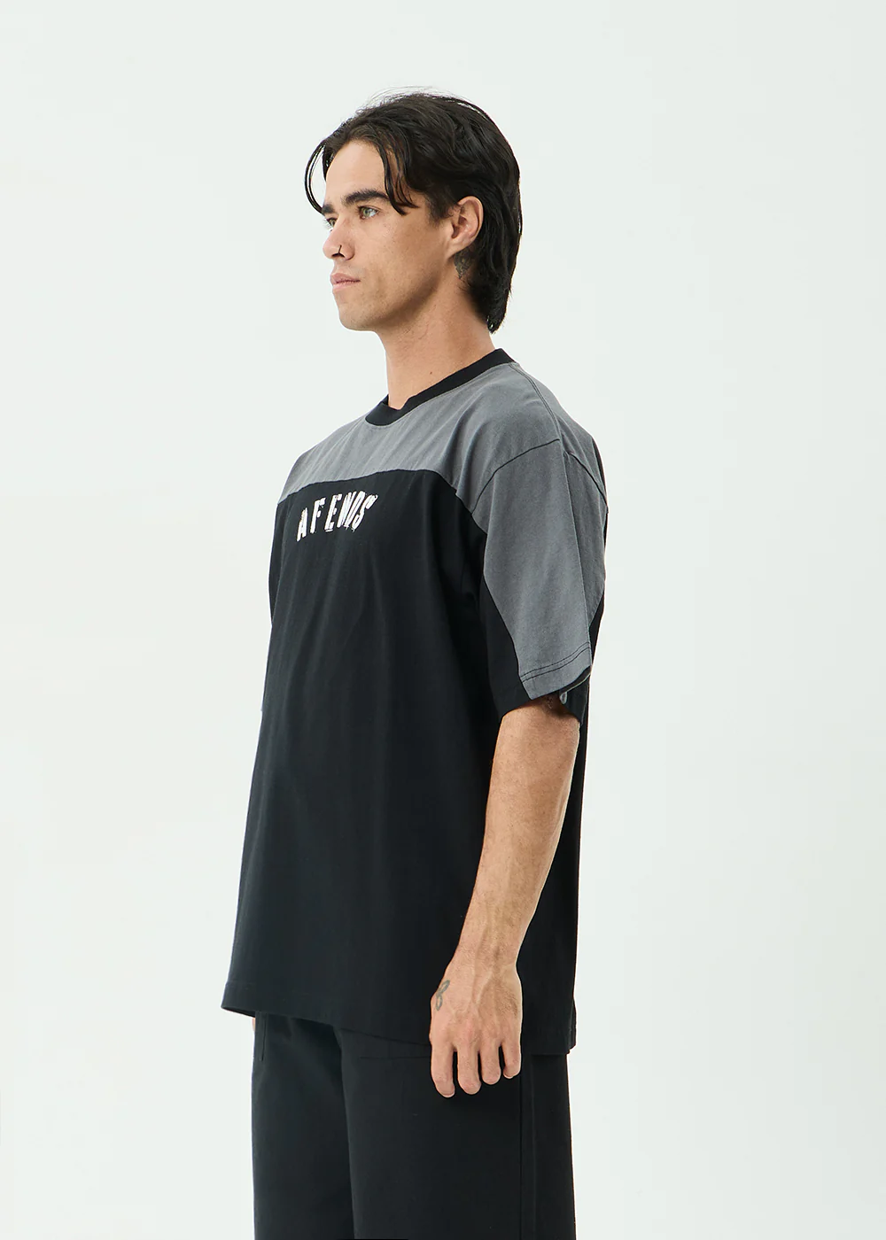 AFENDS Mens Leap - Heavyweight Boxy Tee - Stone Black