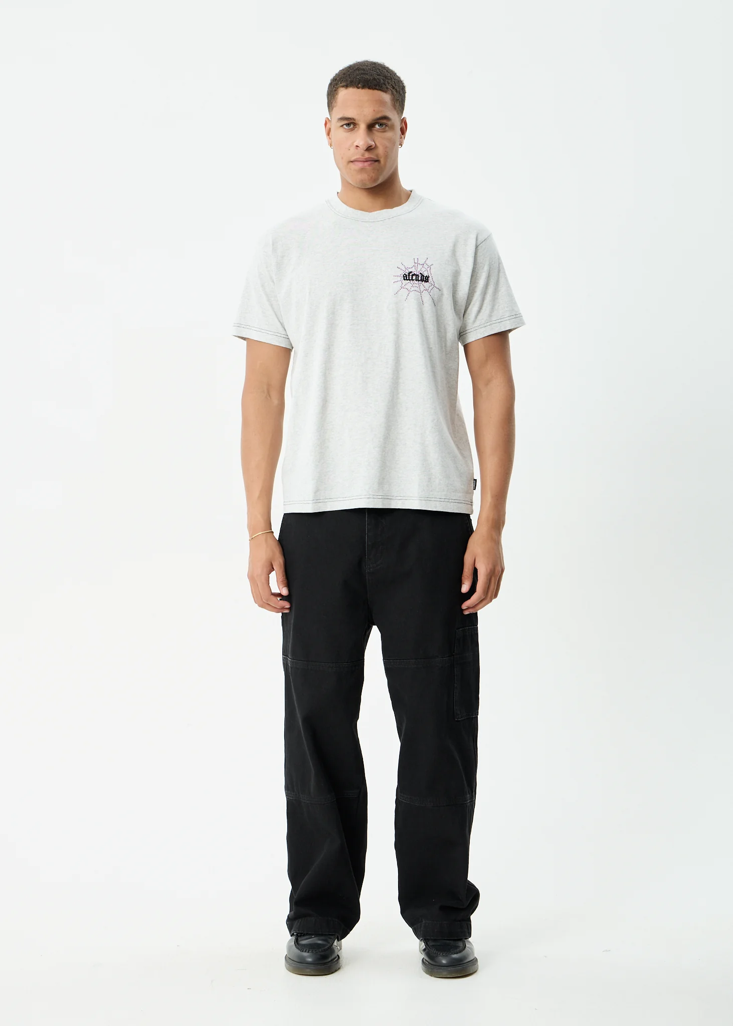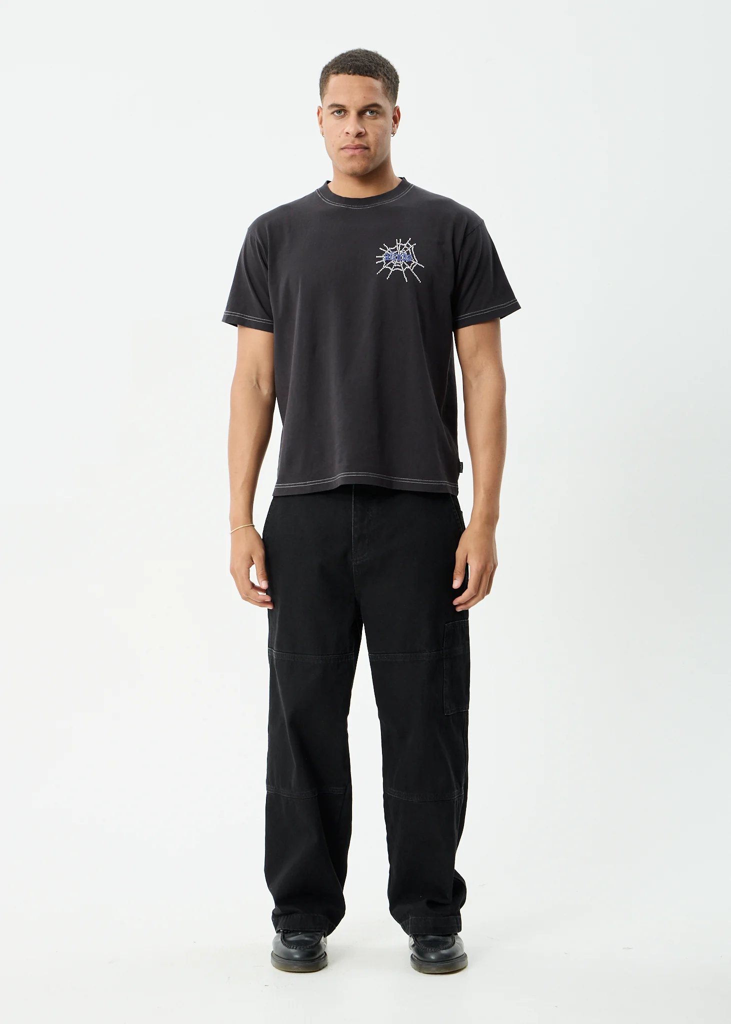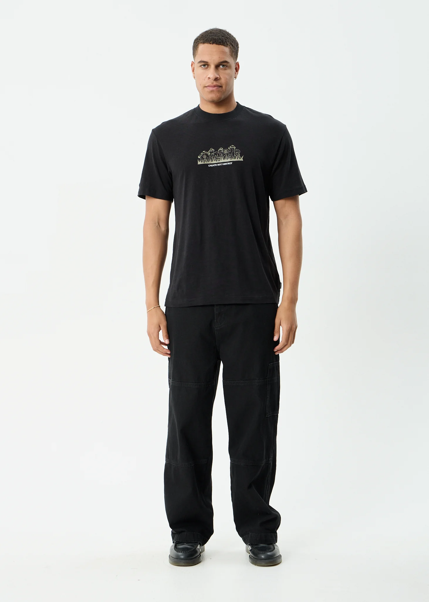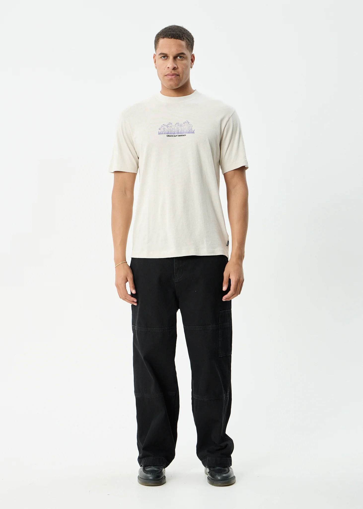 AFENDS Mens Leap - Heavyweight Boxy Tee - Stone Black