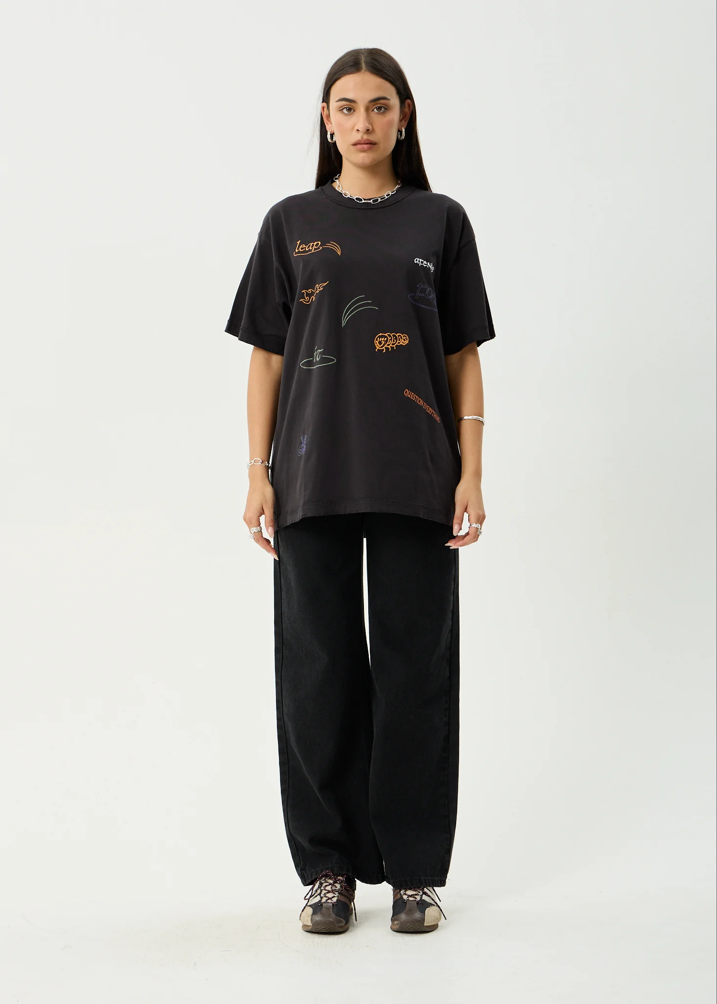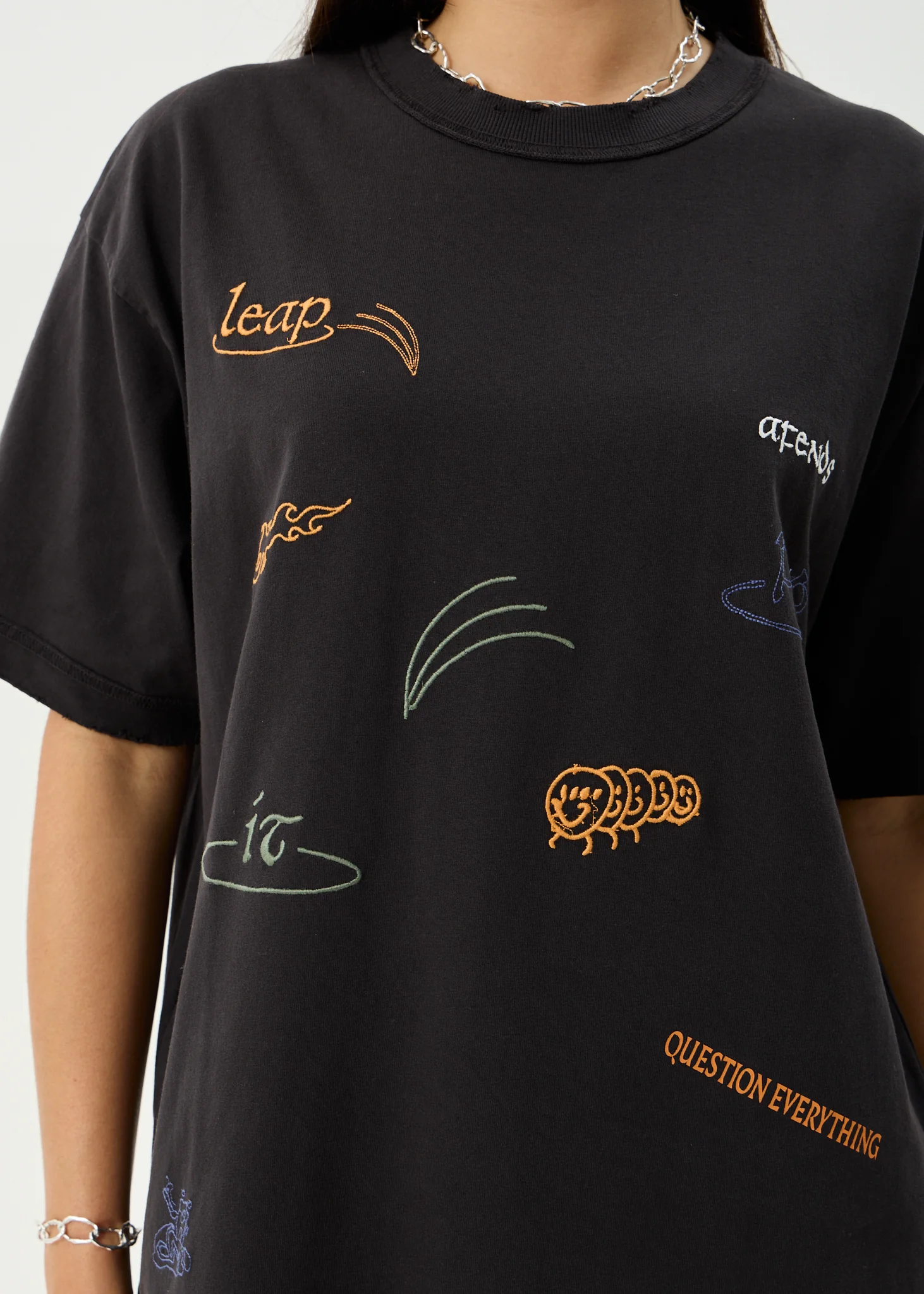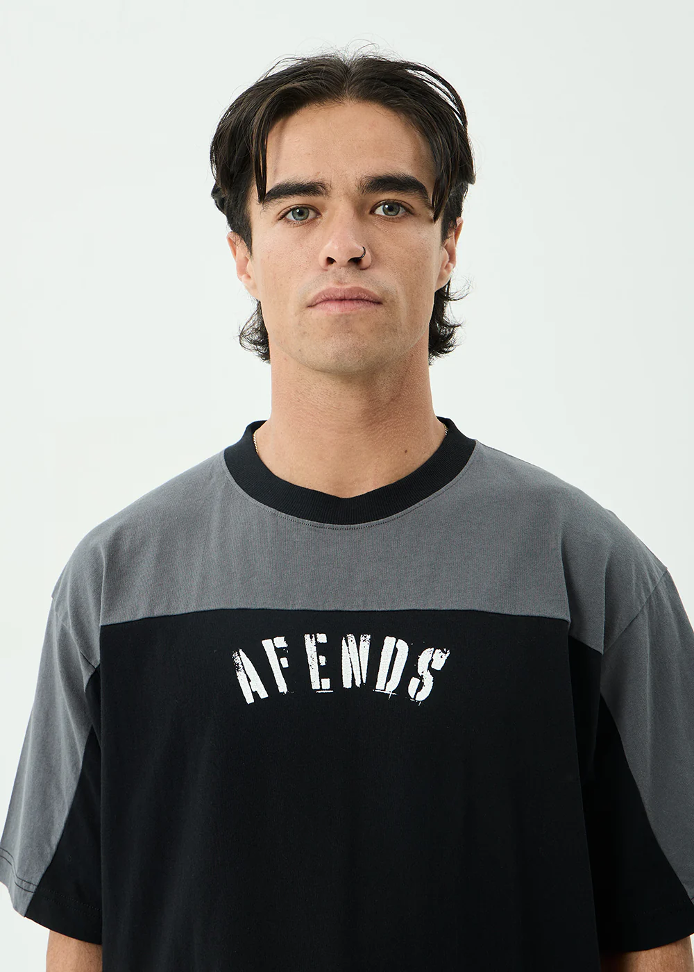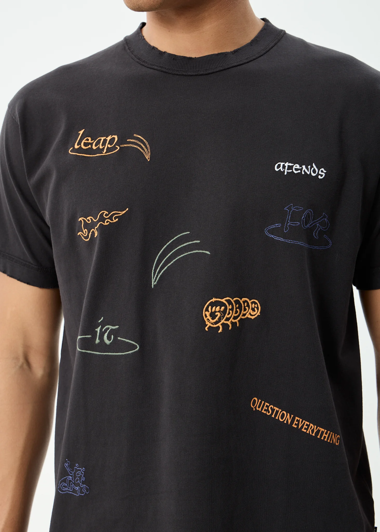 AFENDS Mens Leap - Heavyweight Boxy Tee - Stone Black