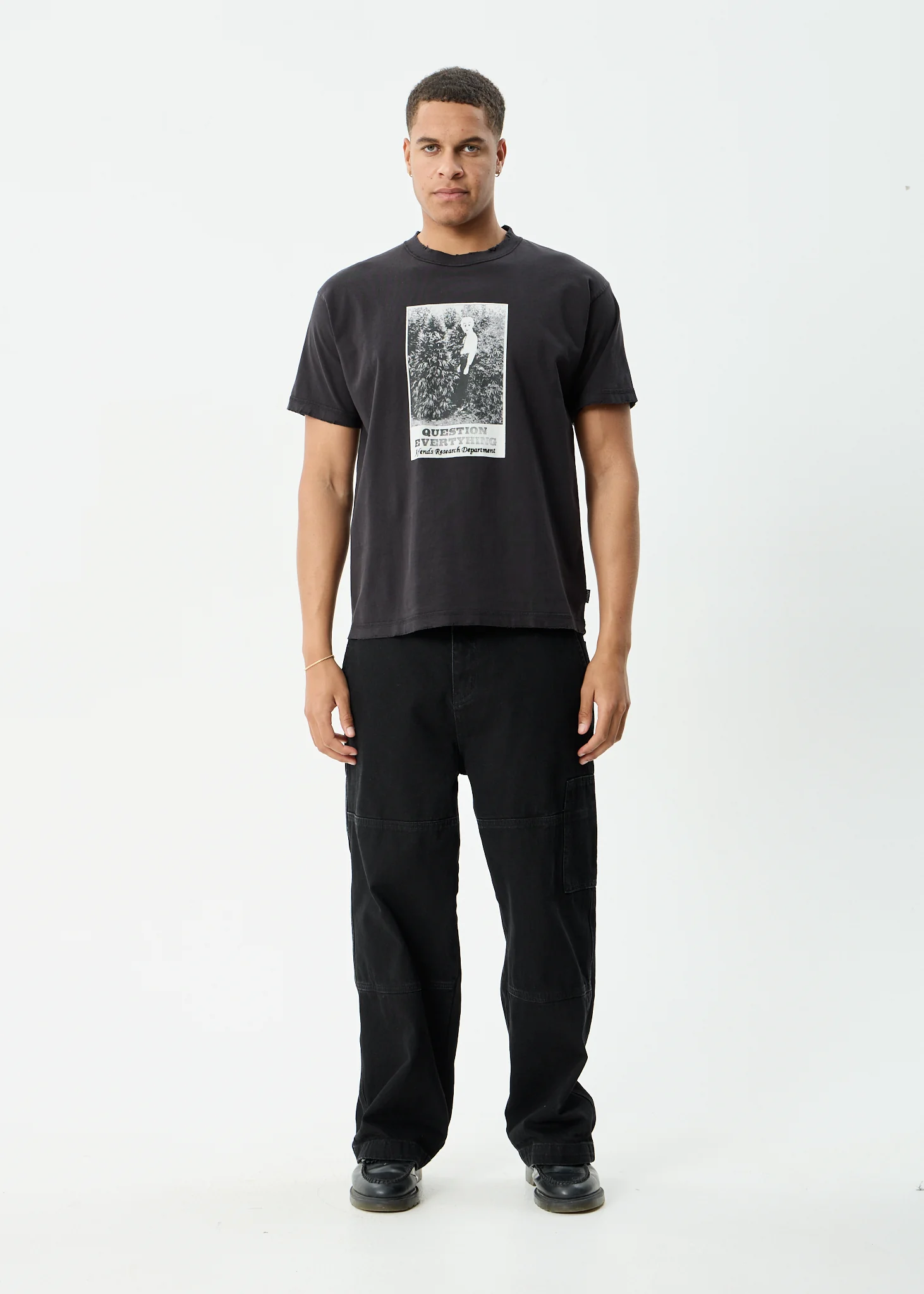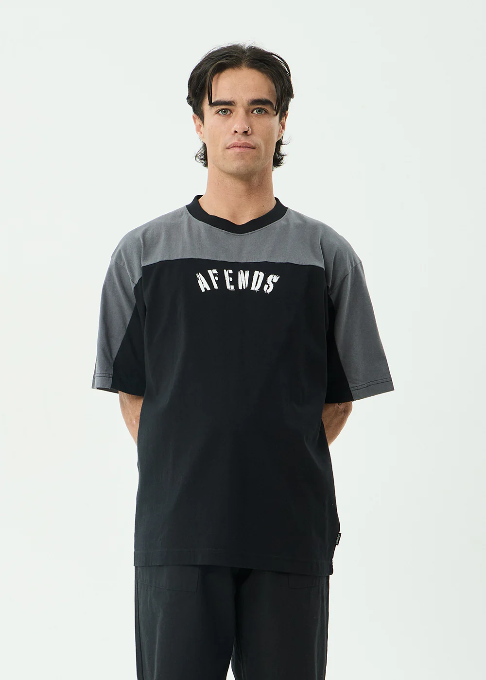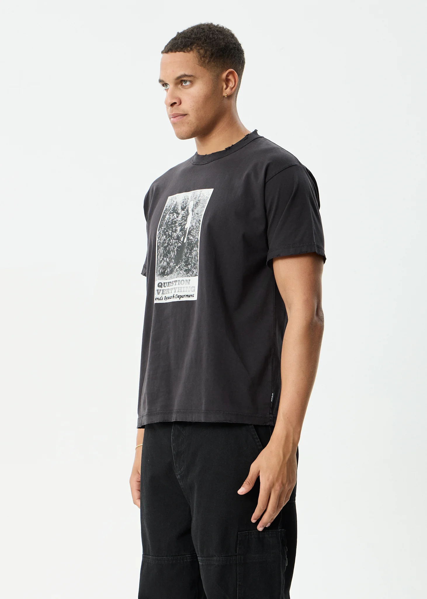 AFENDS Mens Contingent - Boxy Vintage Tee - Black