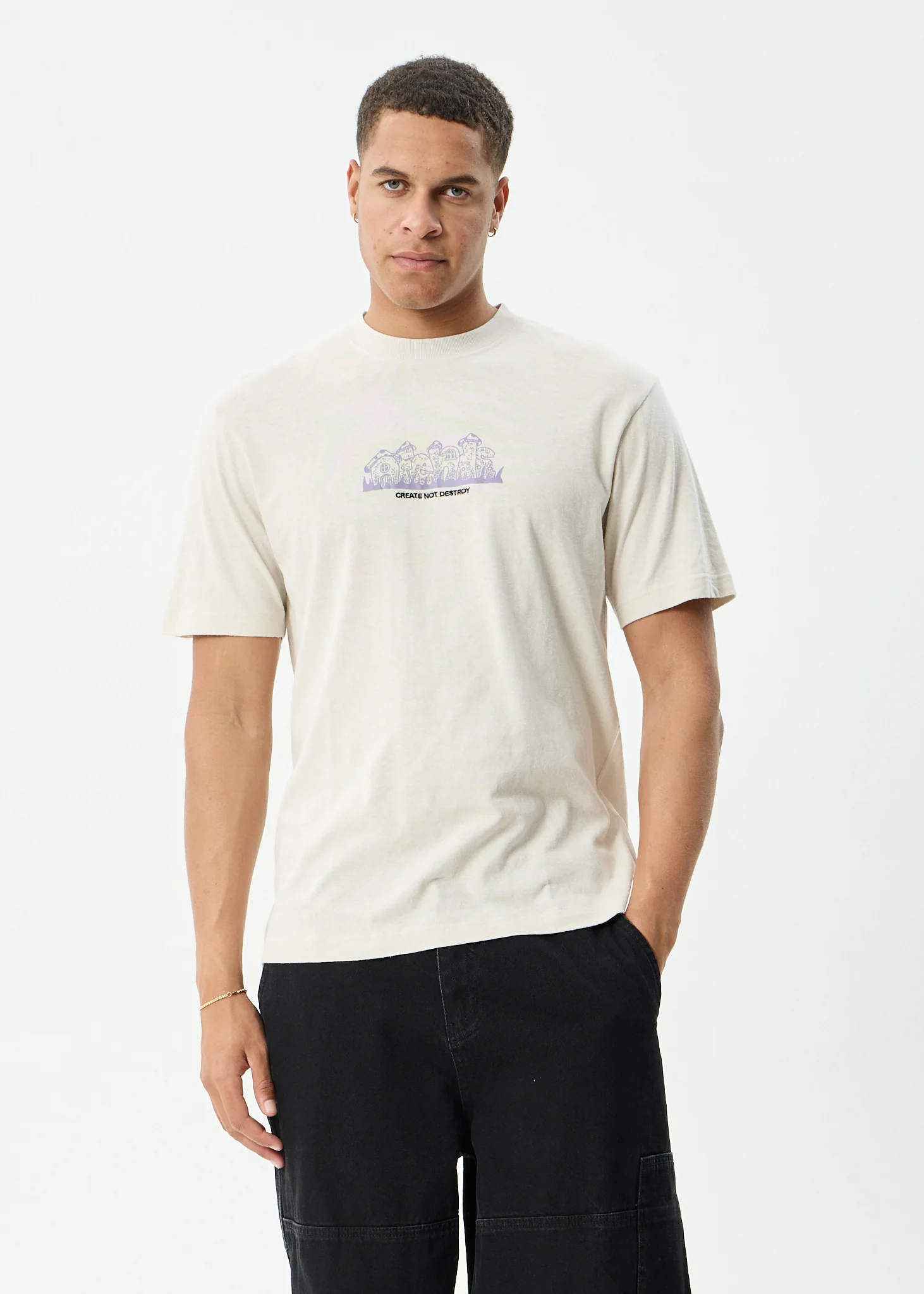 AFENDS Mens Perception - Boxy Tee - Moonbeam