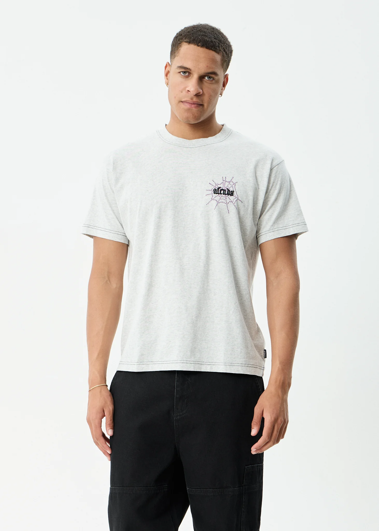 AFENDS Mens Tangled - Boxy Tee - Grey Marle