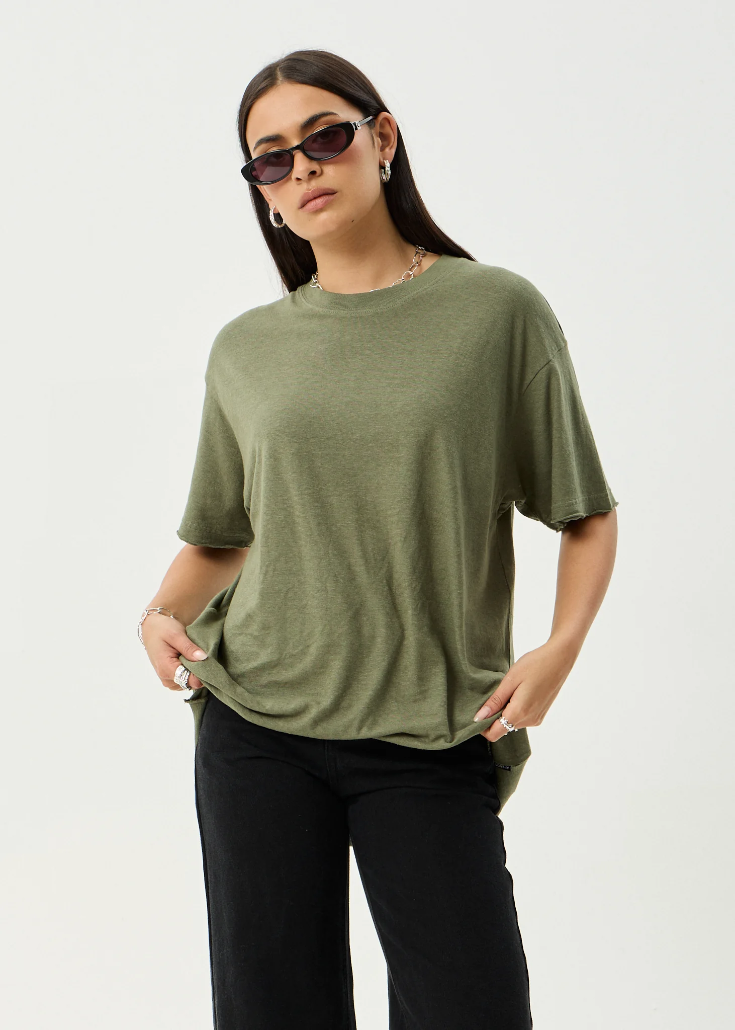AFENDS Womens Slay - Oversized Tee - Deep Olive