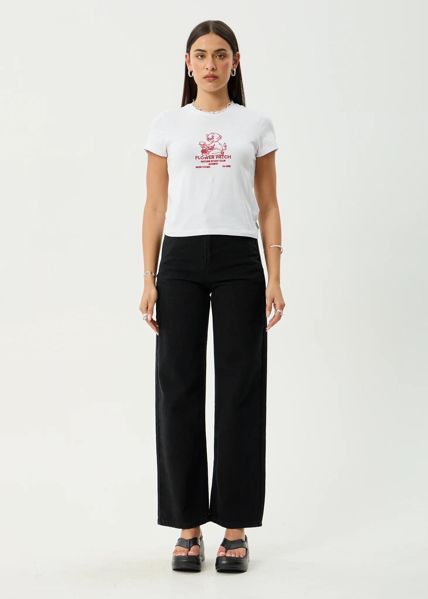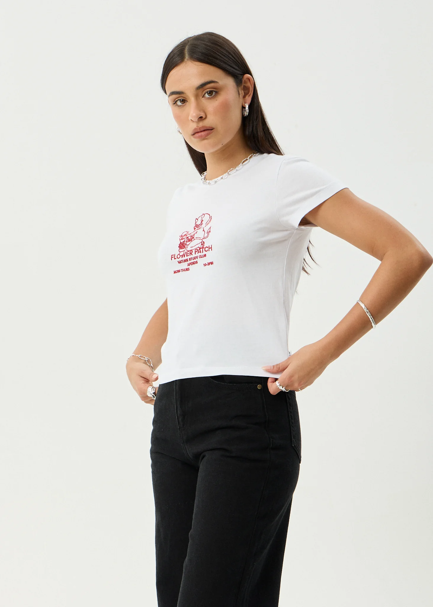 AFENDS Womens Flower Patch - Baby Tee - White
