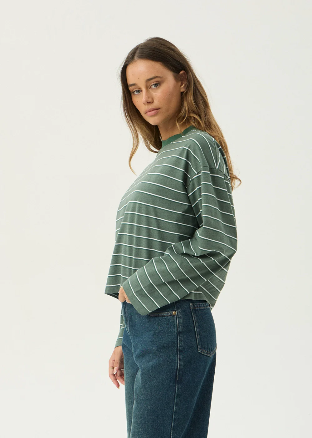 AFENDS Womens Altitude - Long Sleeve Tee - Pine Stripe