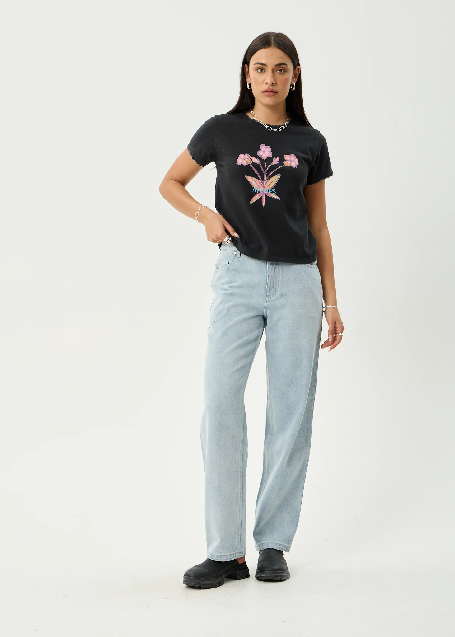 AFENDS Womens Briar - Regular Tee - Stone Black