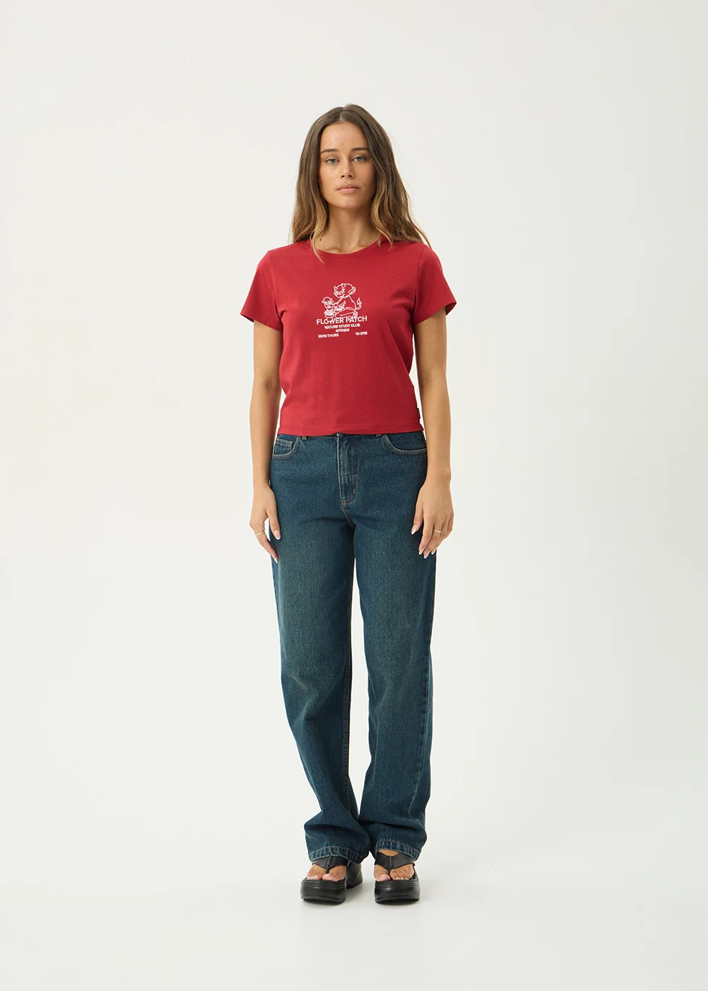 AFENDS Womens Flower Patch - Baby Tee - Ketchup
