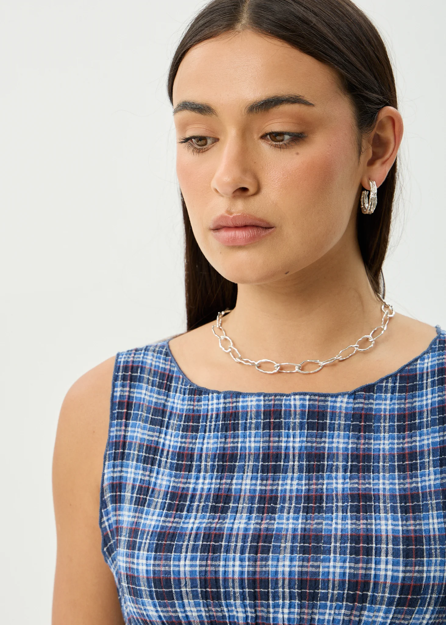 AFENDS Womens Mountains - Seersucker Sleeveless Top - Navy Red Check