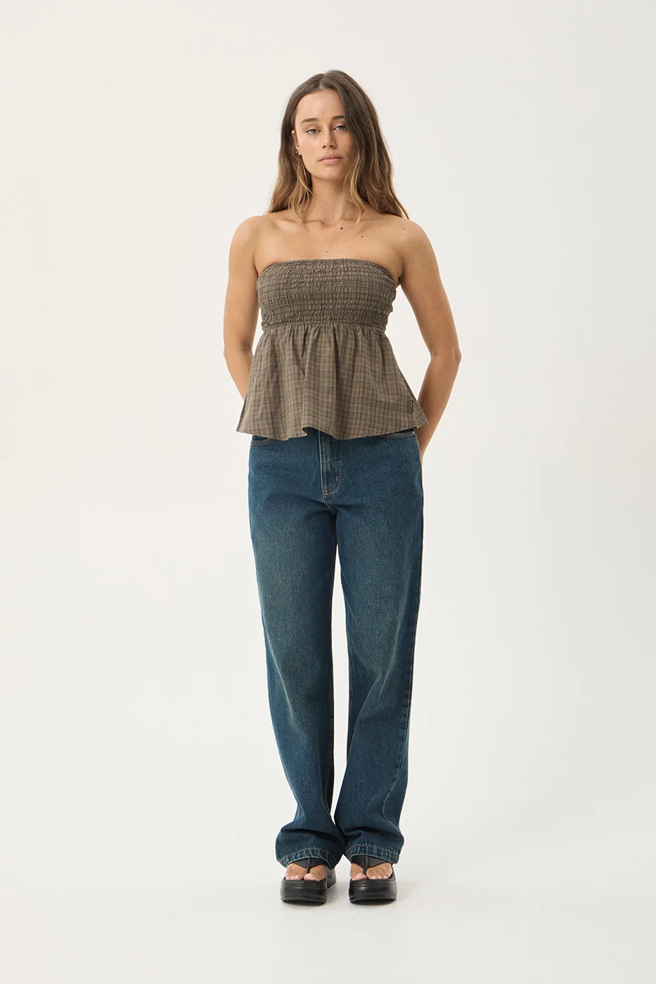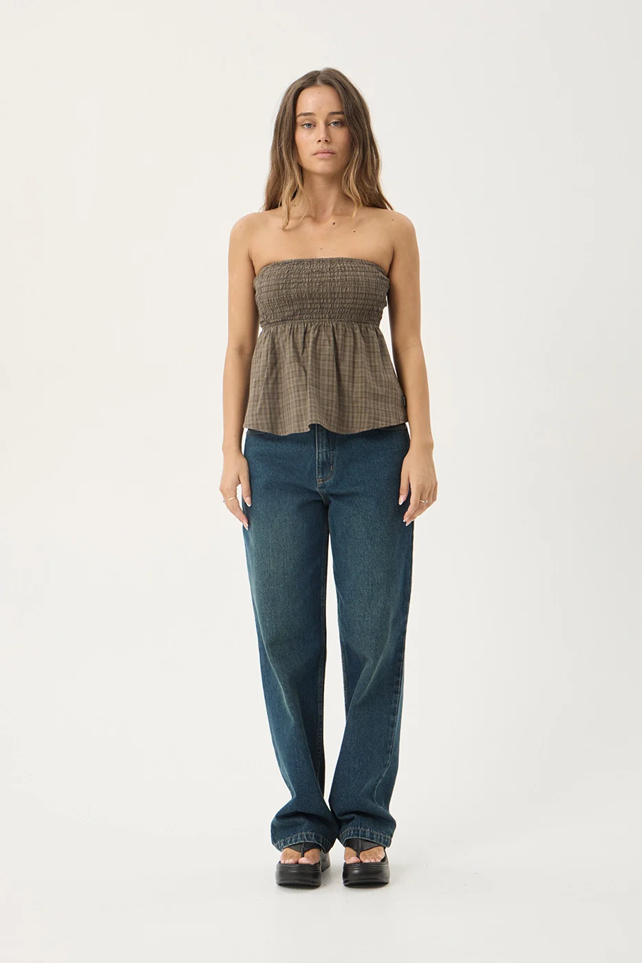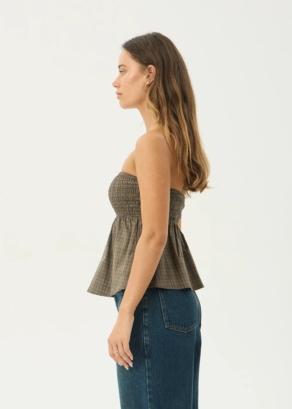 AFENDS Womens Mina Shadow - Strapless Top - Stone Check