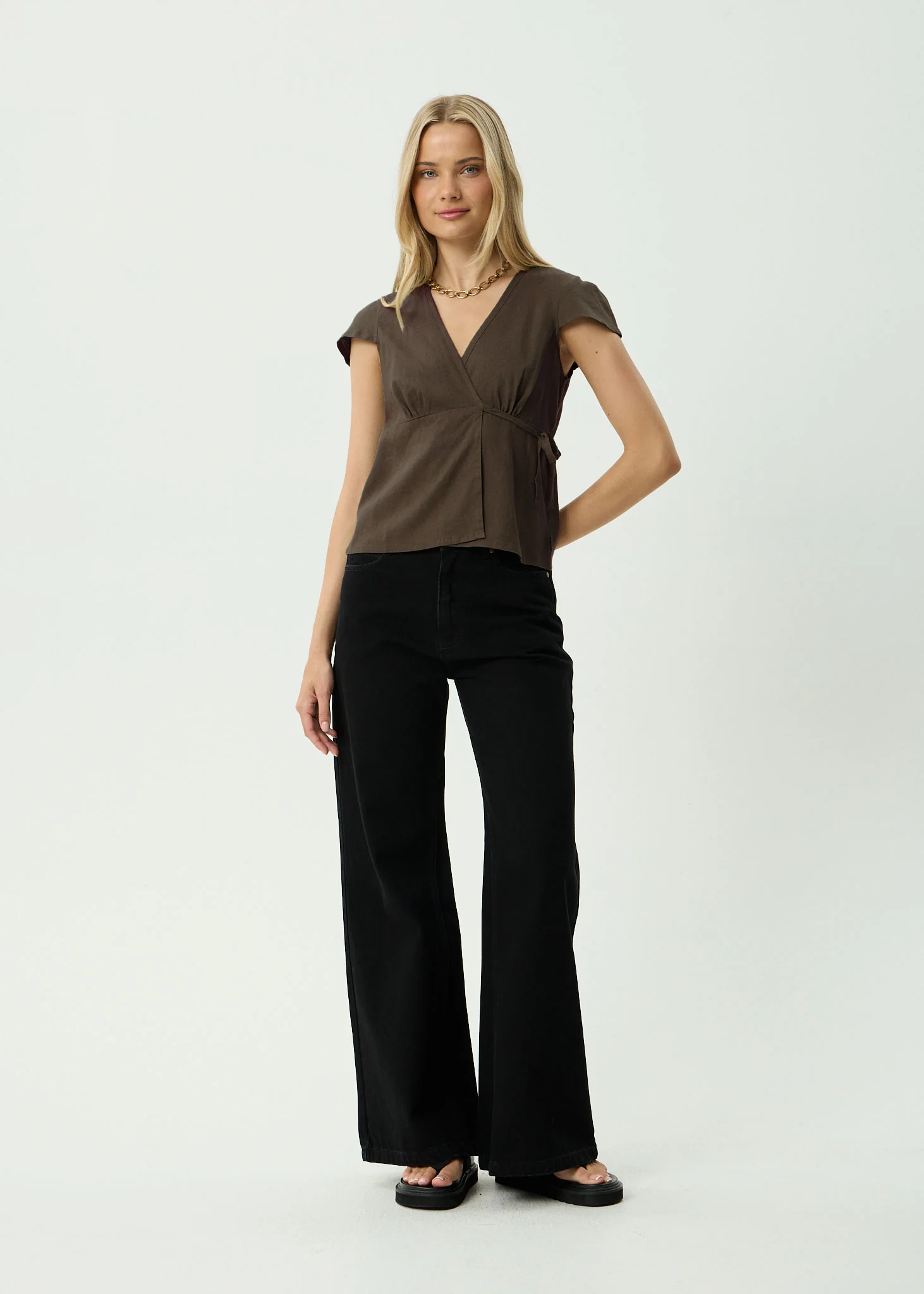AFENDS Womens Loula - Wrap Top - Coffee