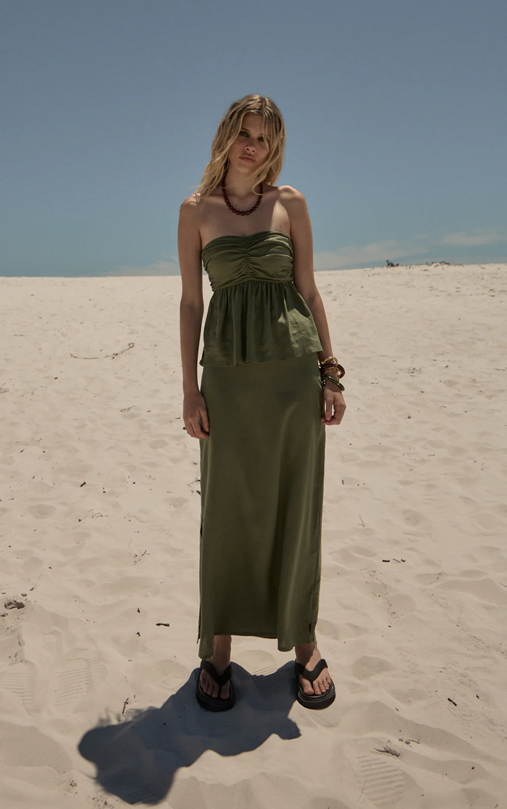 AFENDS Womens Juni - Strapless Top - Deep Olive