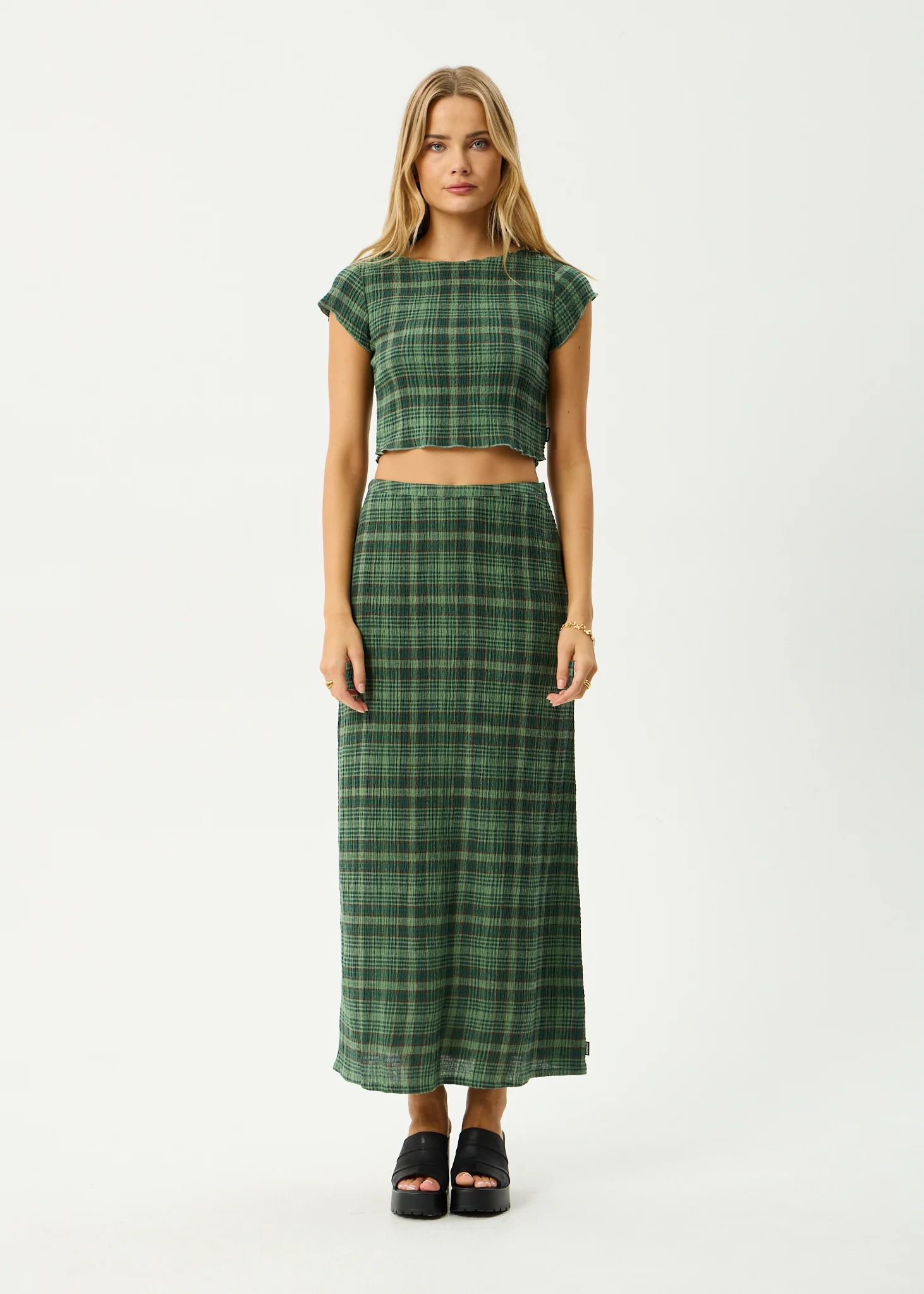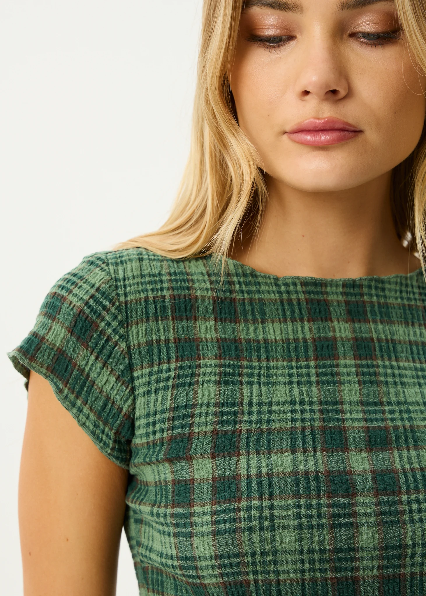 AFENDS Womens Lonnie - Seersucker Top - Hunter Green