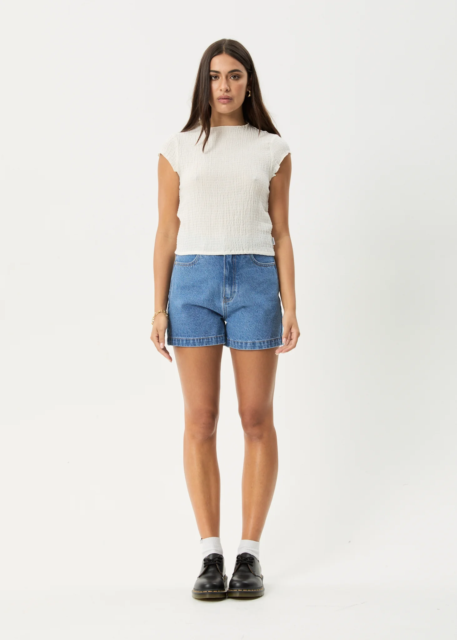 AFENDS Womens Emilie - Denim Workwear Short - Worn Blue