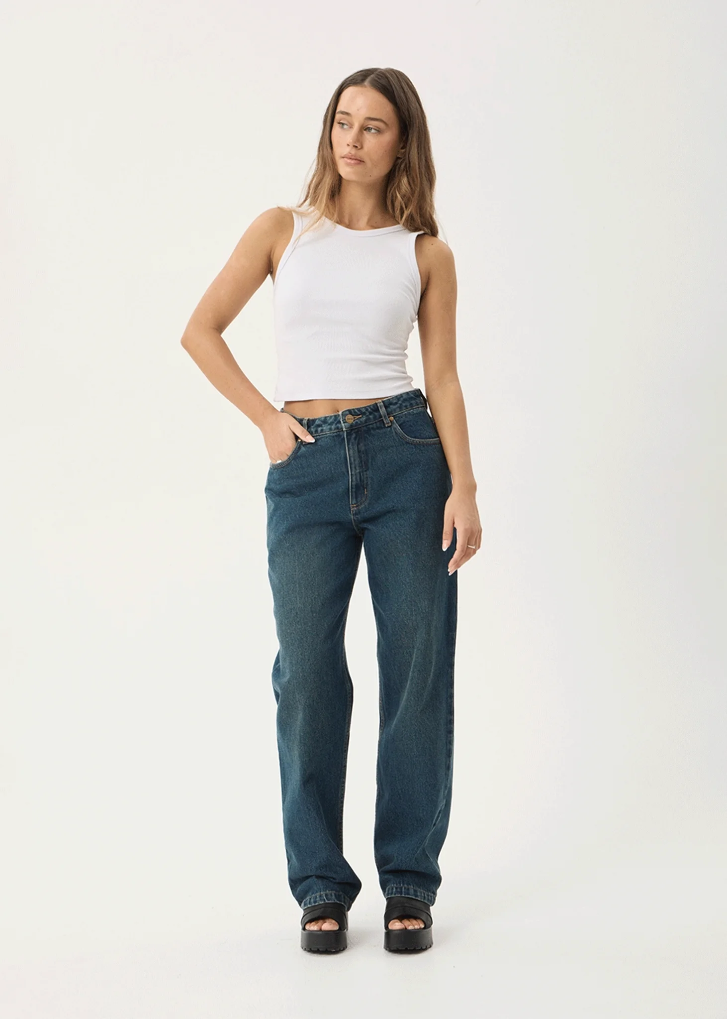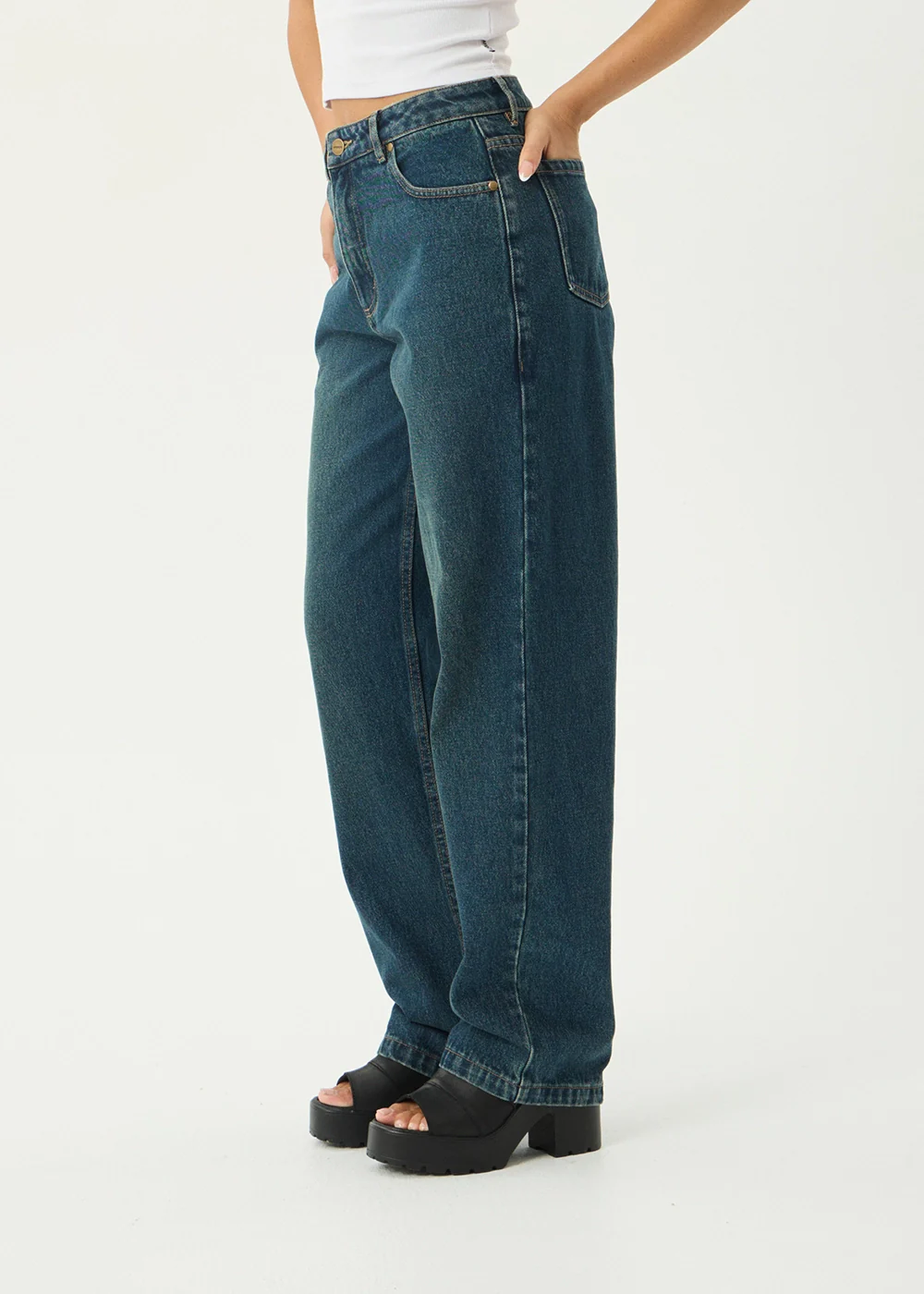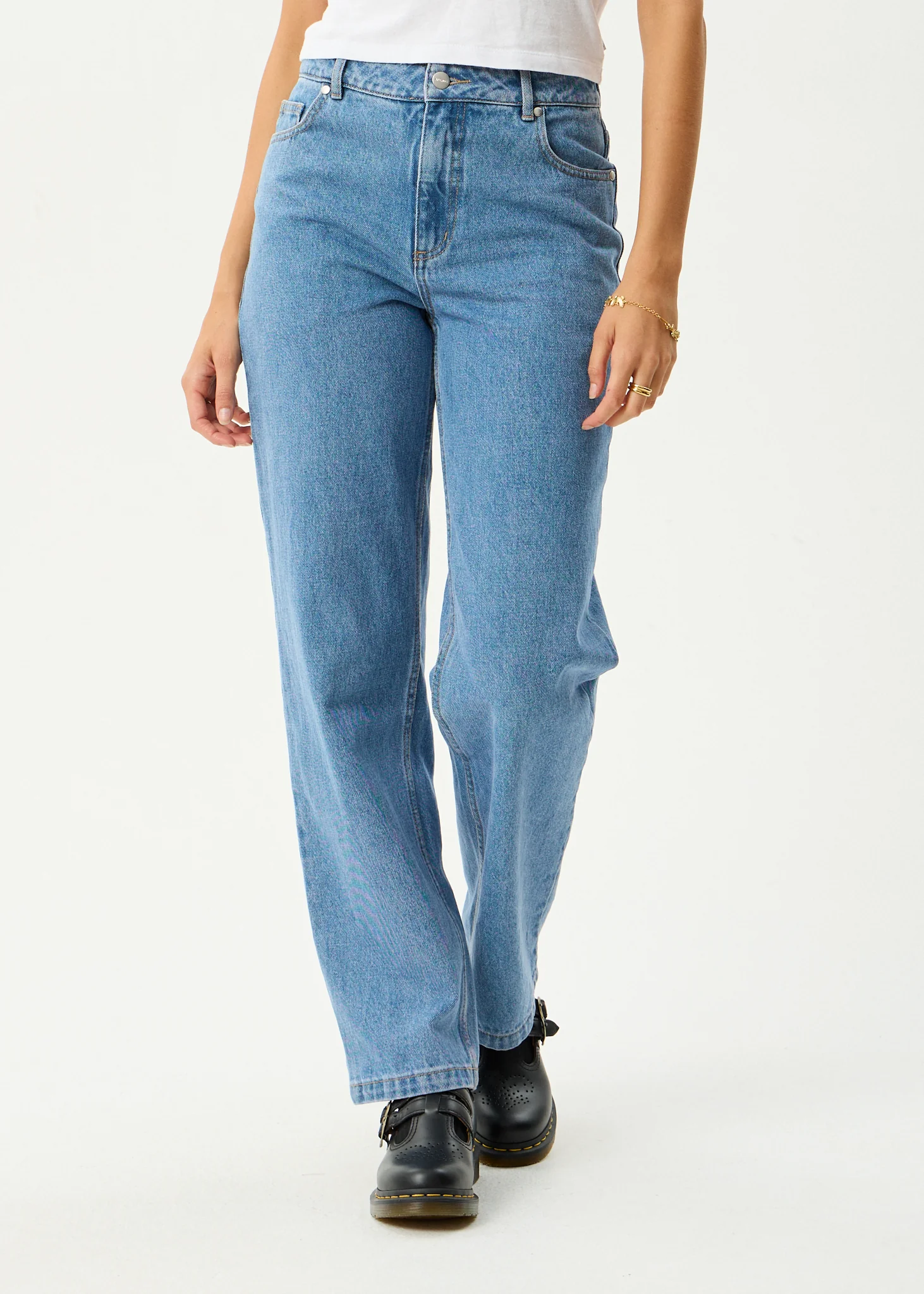 AFENDS Womens Leila - Straight Leg Jean - Authentic Blue