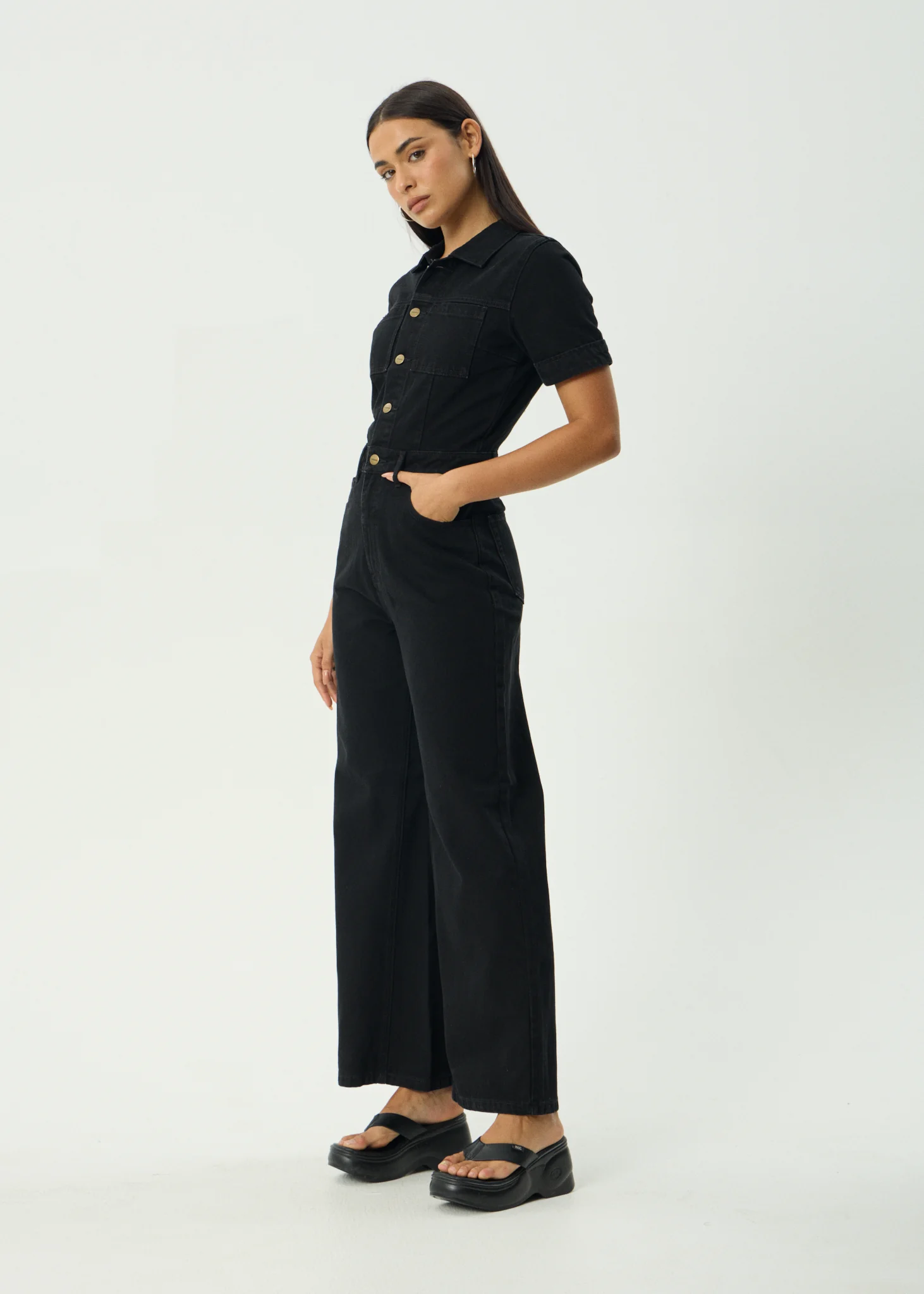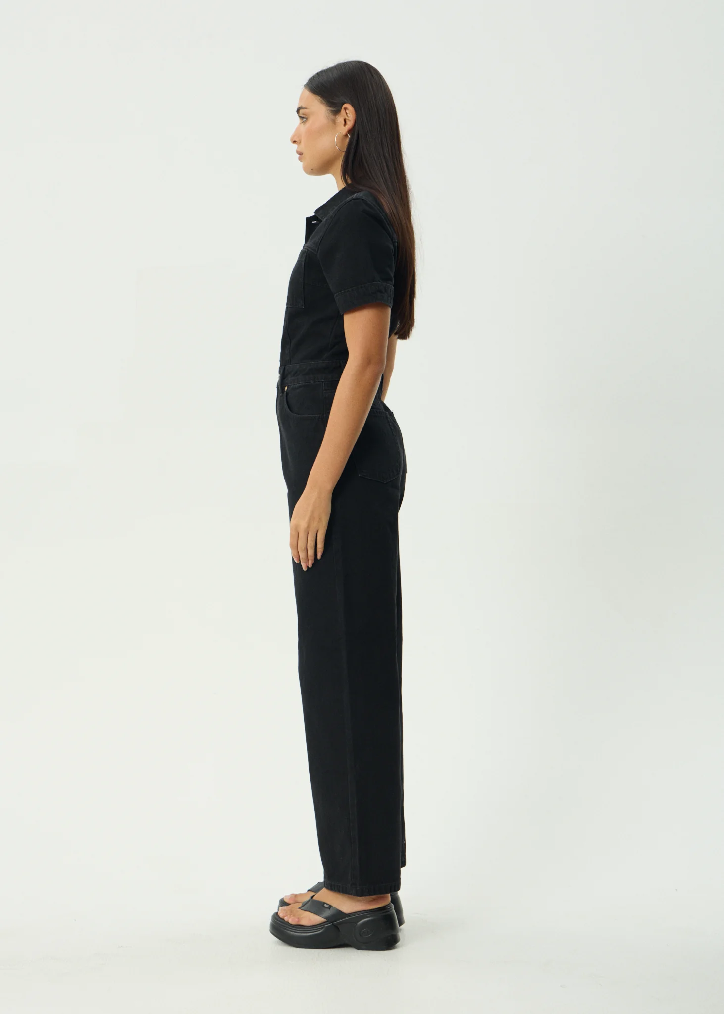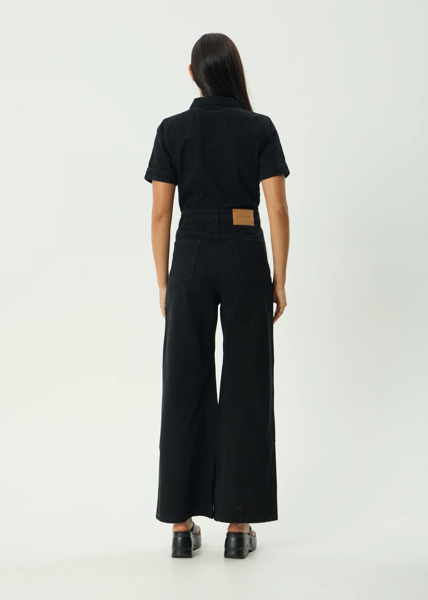 AFENDS Womens Miami - Denim Flared Jumpsuit - Washed Black