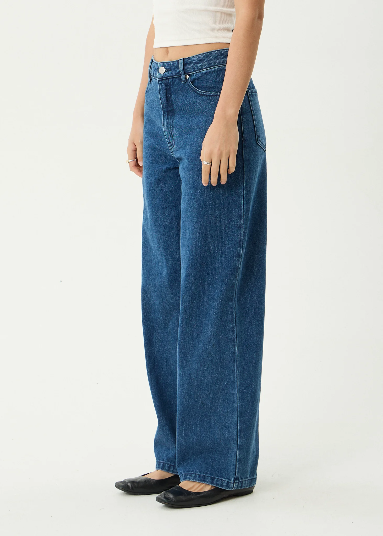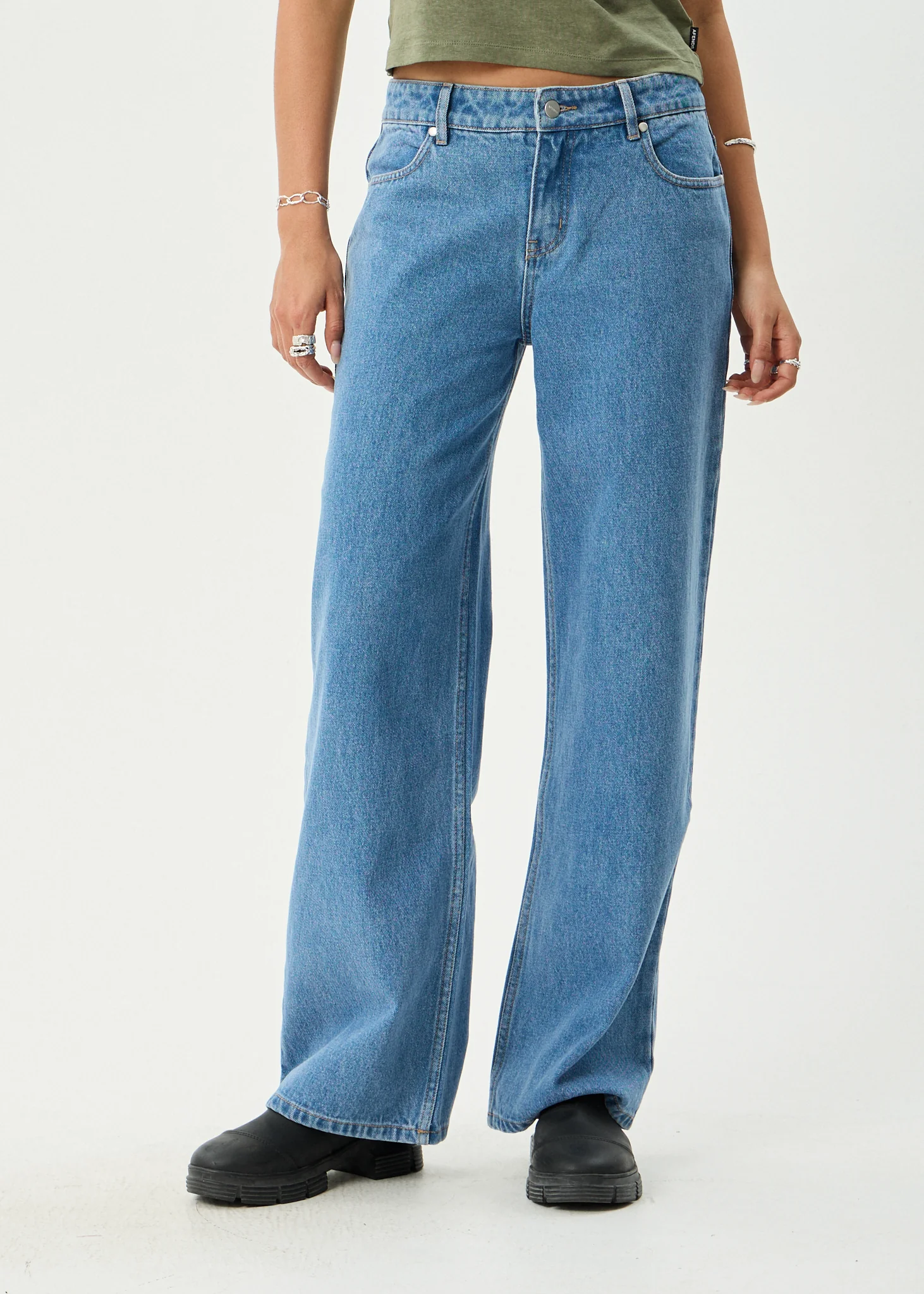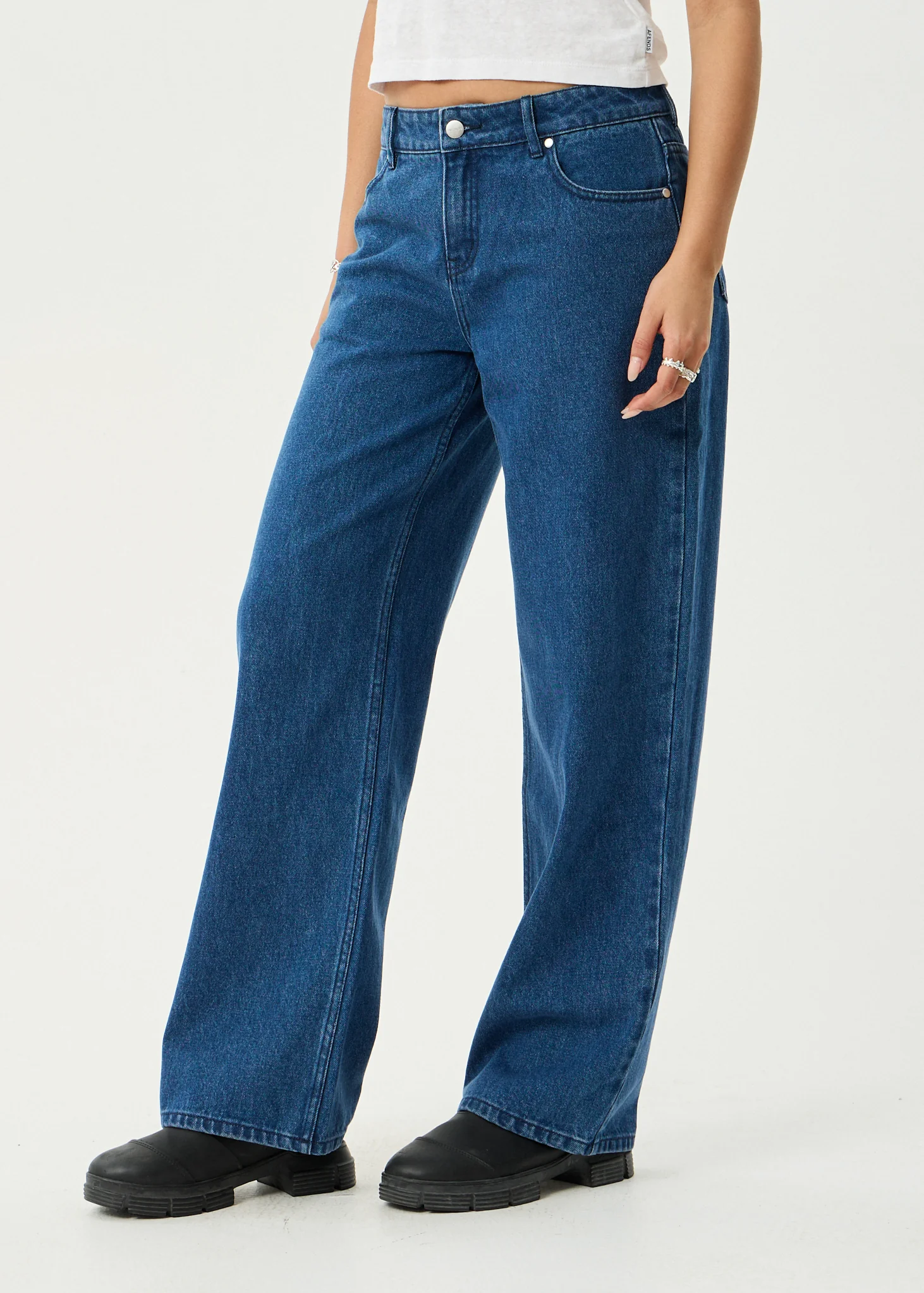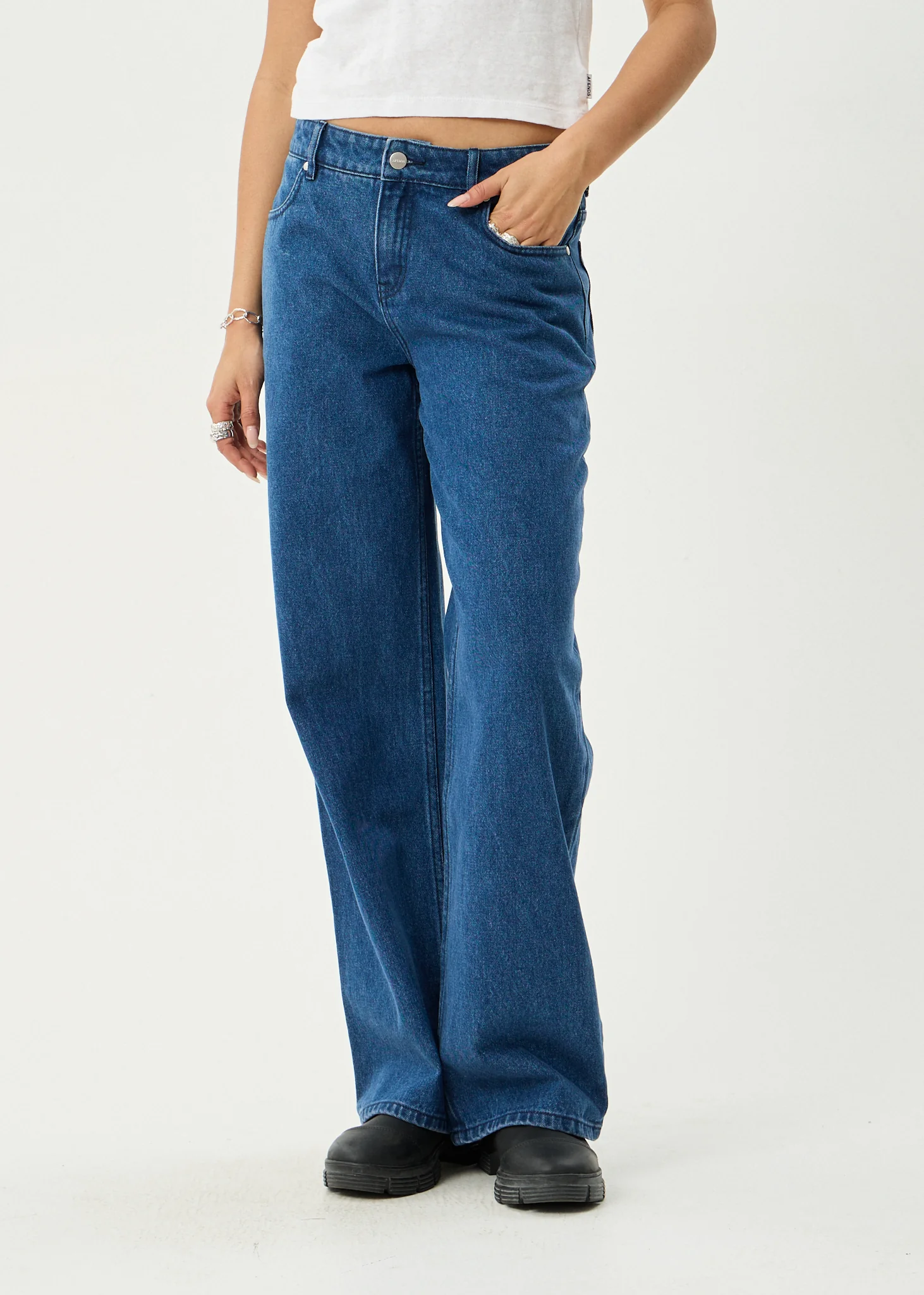 AFENDS Womens Alyra - Low Rise Wide Leg Jean - Authentic Blue