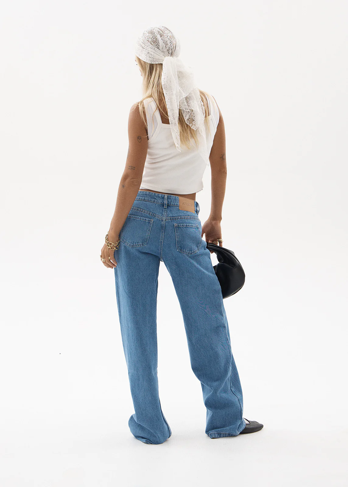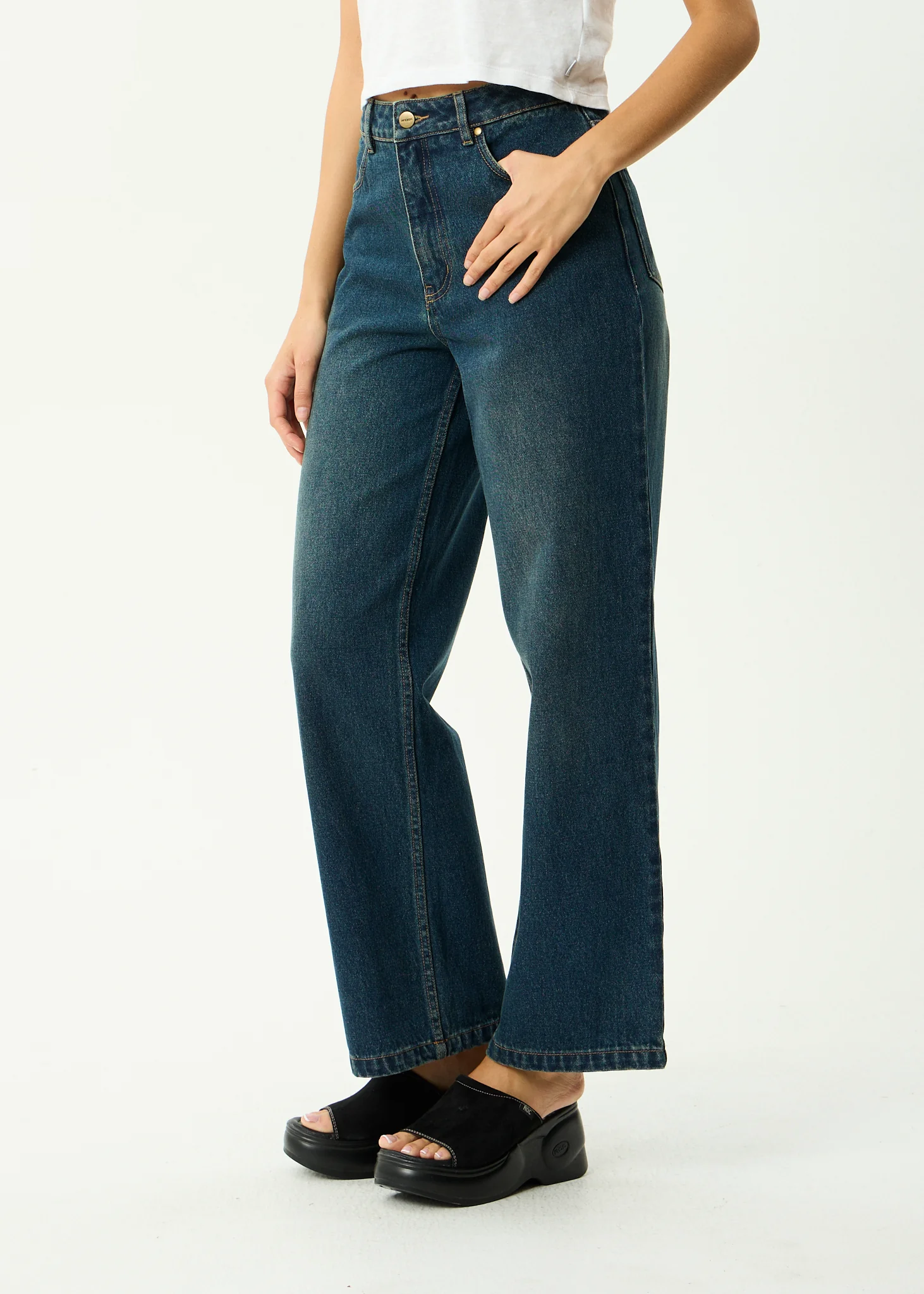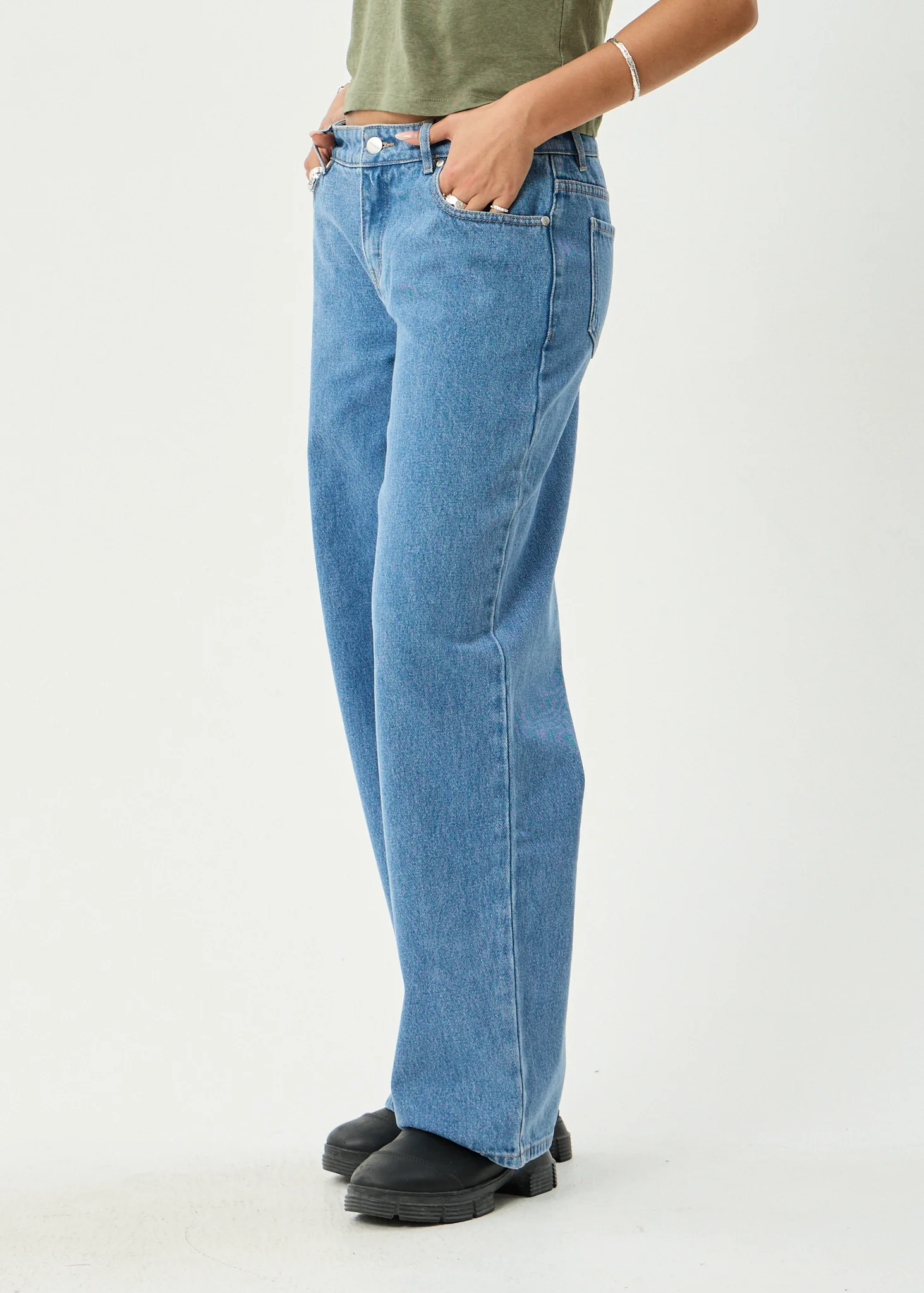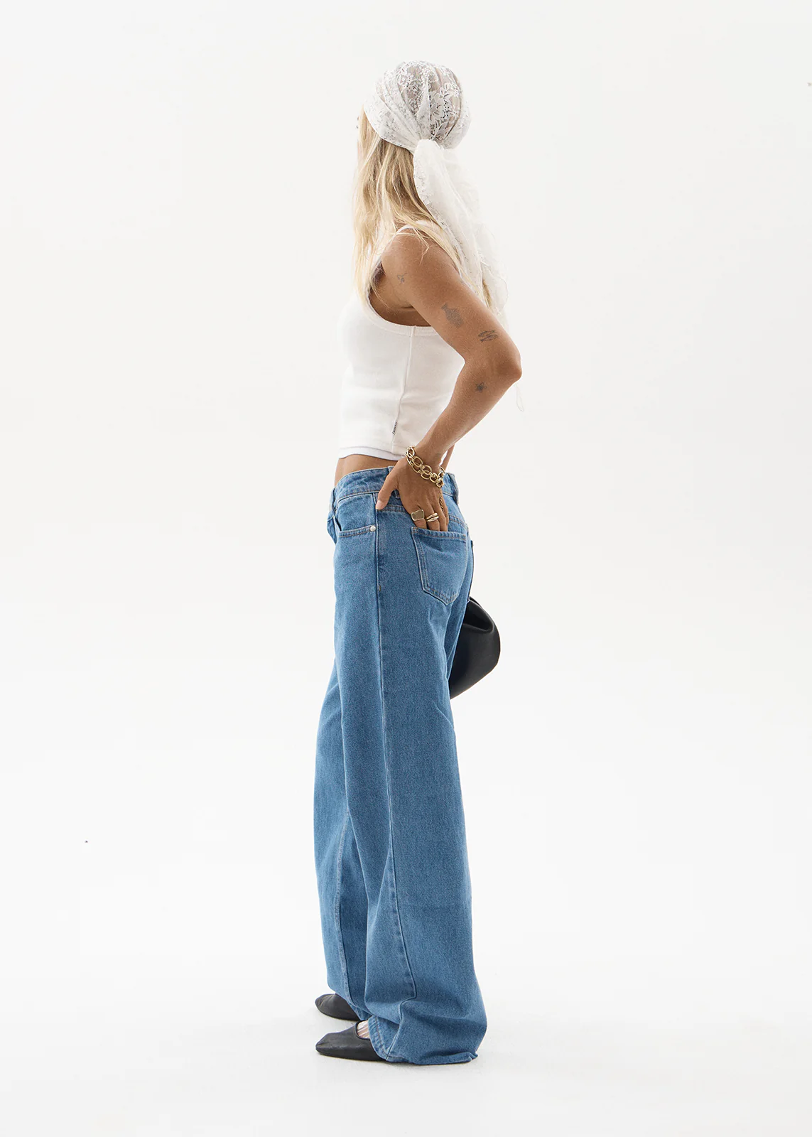 AFENDS Womens Alyra - Low Rise Wide Leg Jean - Authentic Blue