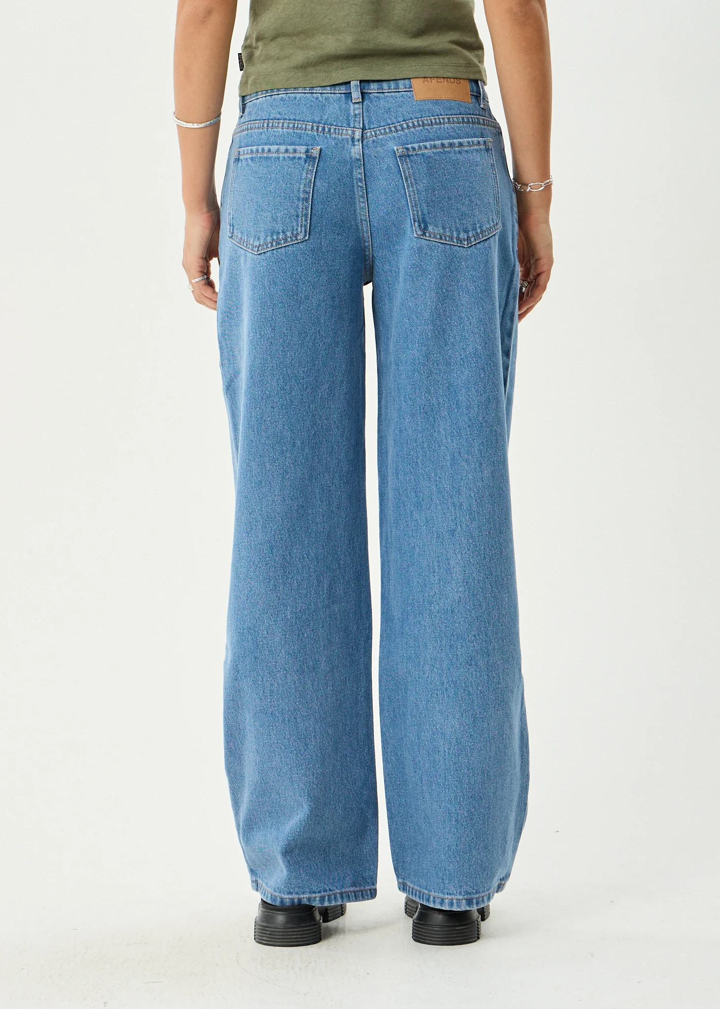 AFENDS Womens Alyra - Low Rise Wide Leg Jean - Worn Blue