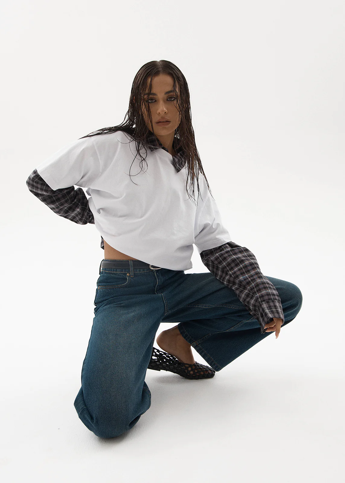AFENDS Womens Bella - Denim Wide Leg Baggy Jean - Authentic Blue