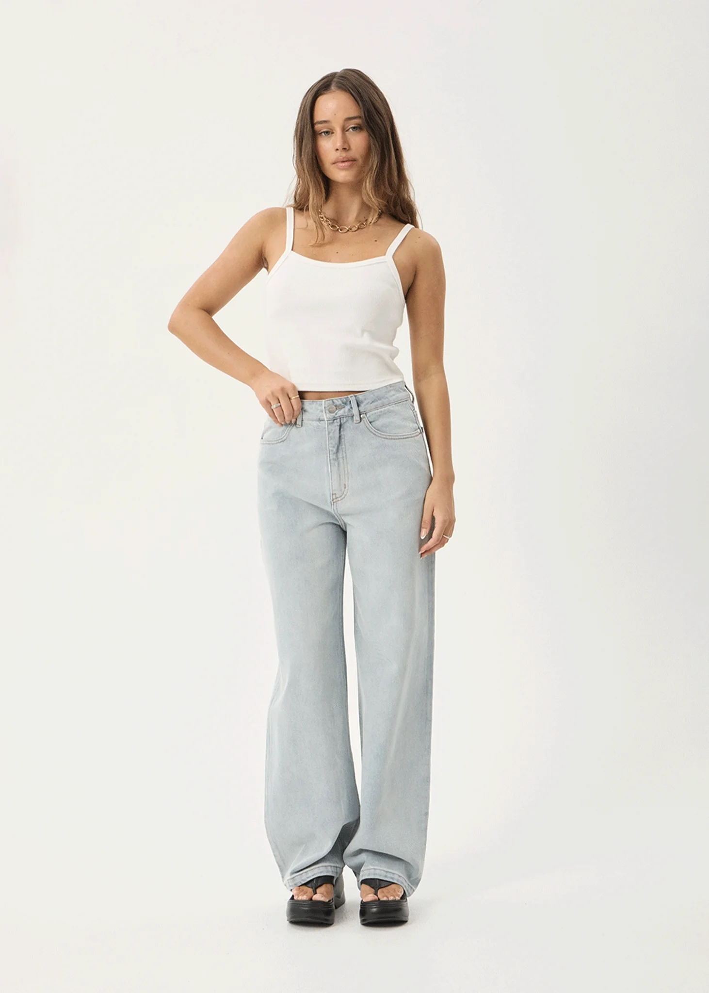 AFENDS Womens Bella - Denim Wide Leg Baggy Jean - Stone Blue