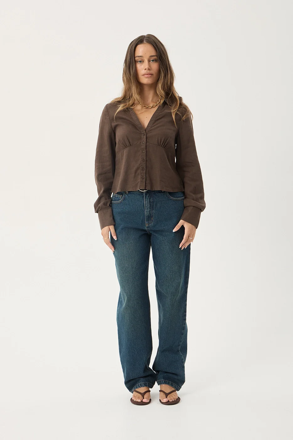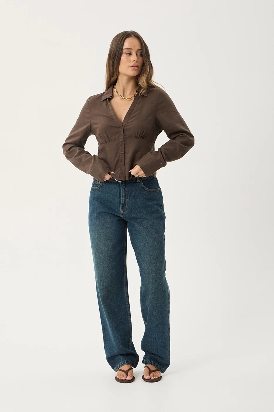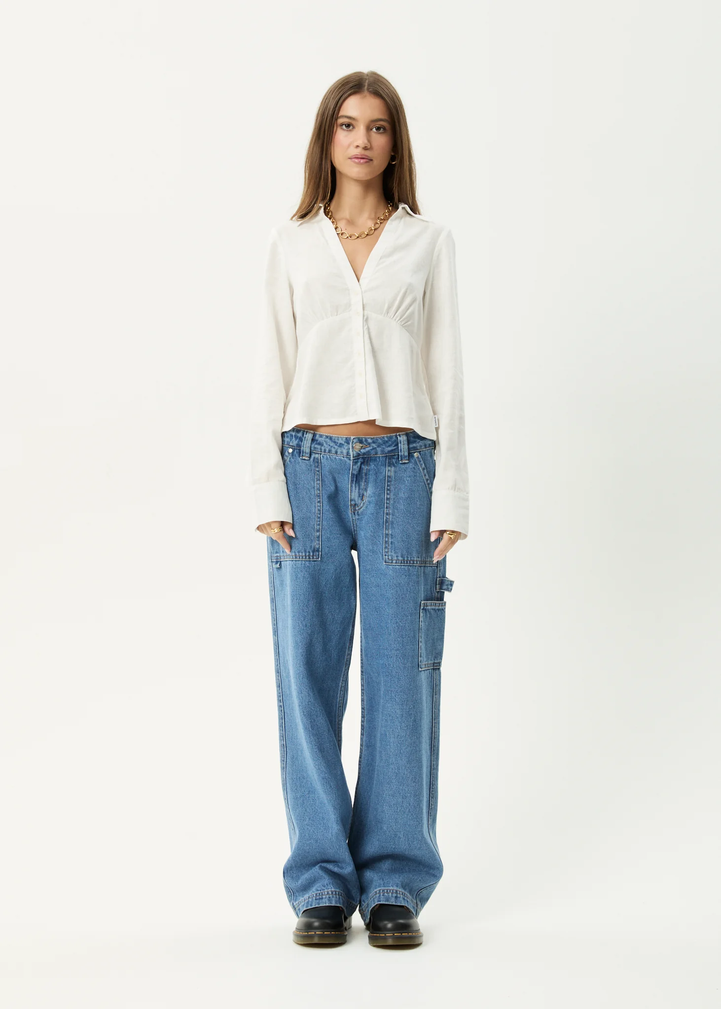 AFENDS Womens Bella - Denim Wide Leg Baggy Jean - Stone Blue